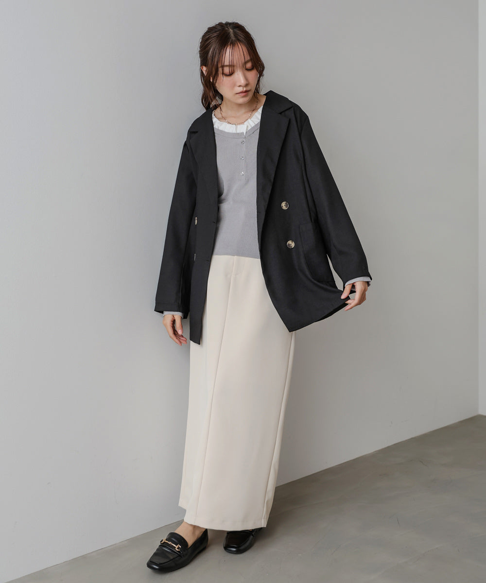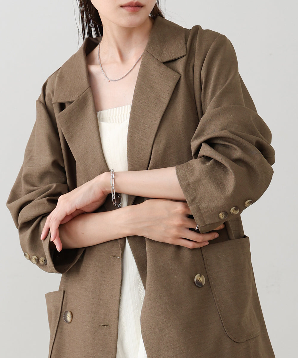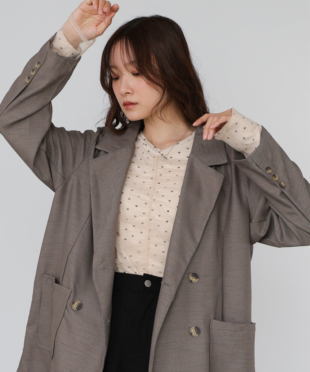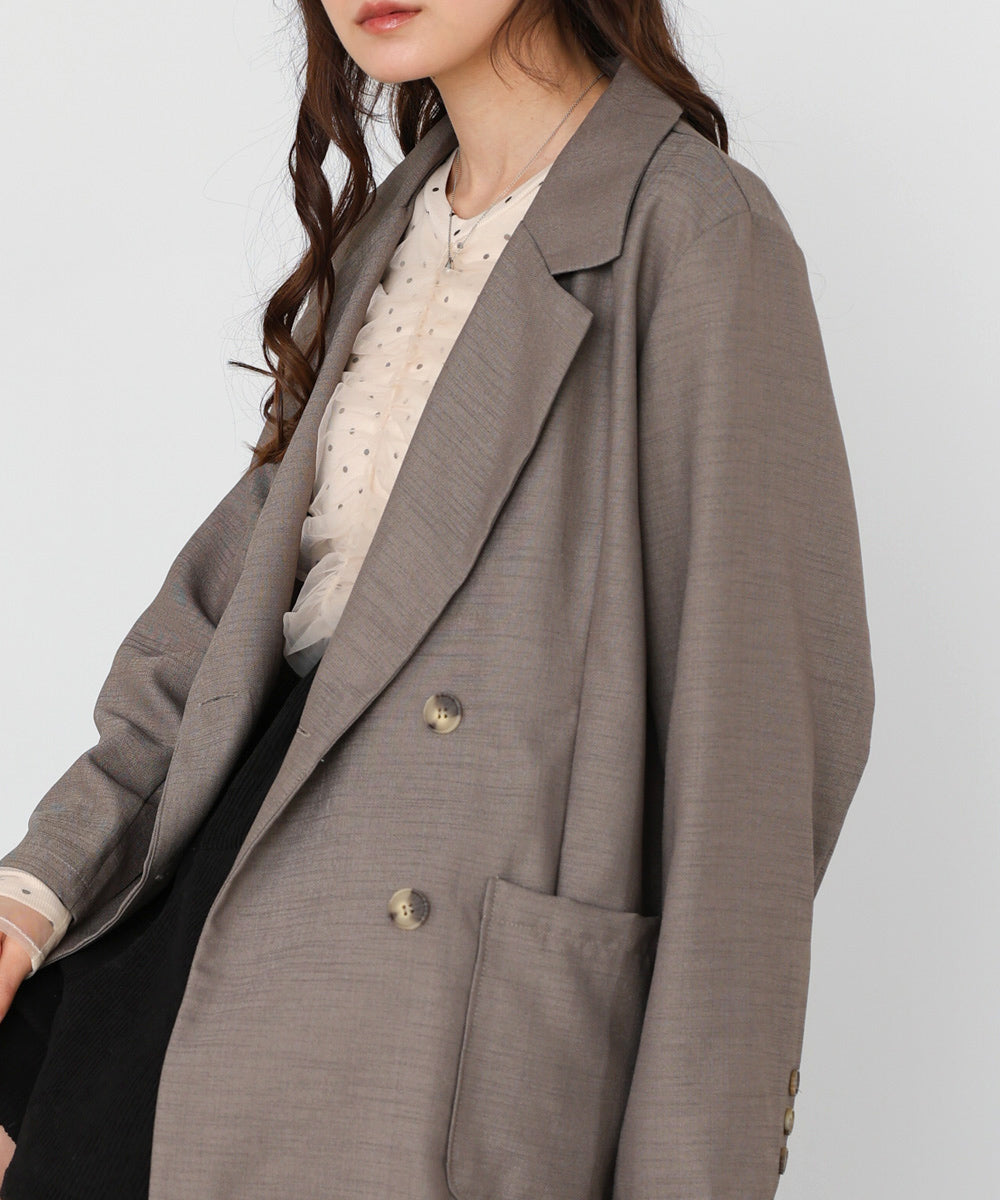バックデザインがポイントの秋ジャケットが登場しました!バックに入った大胆なスリットにリボンがあしらわれています♪重たすぎずな質感なのでワンピースに羽織として、デニムとチュニックなどのレイヤードとして秋シーズン大活躍なジャケットです!流行りのリボンにダブルボタンでトレンドライクなジャケットに仕上がっています!