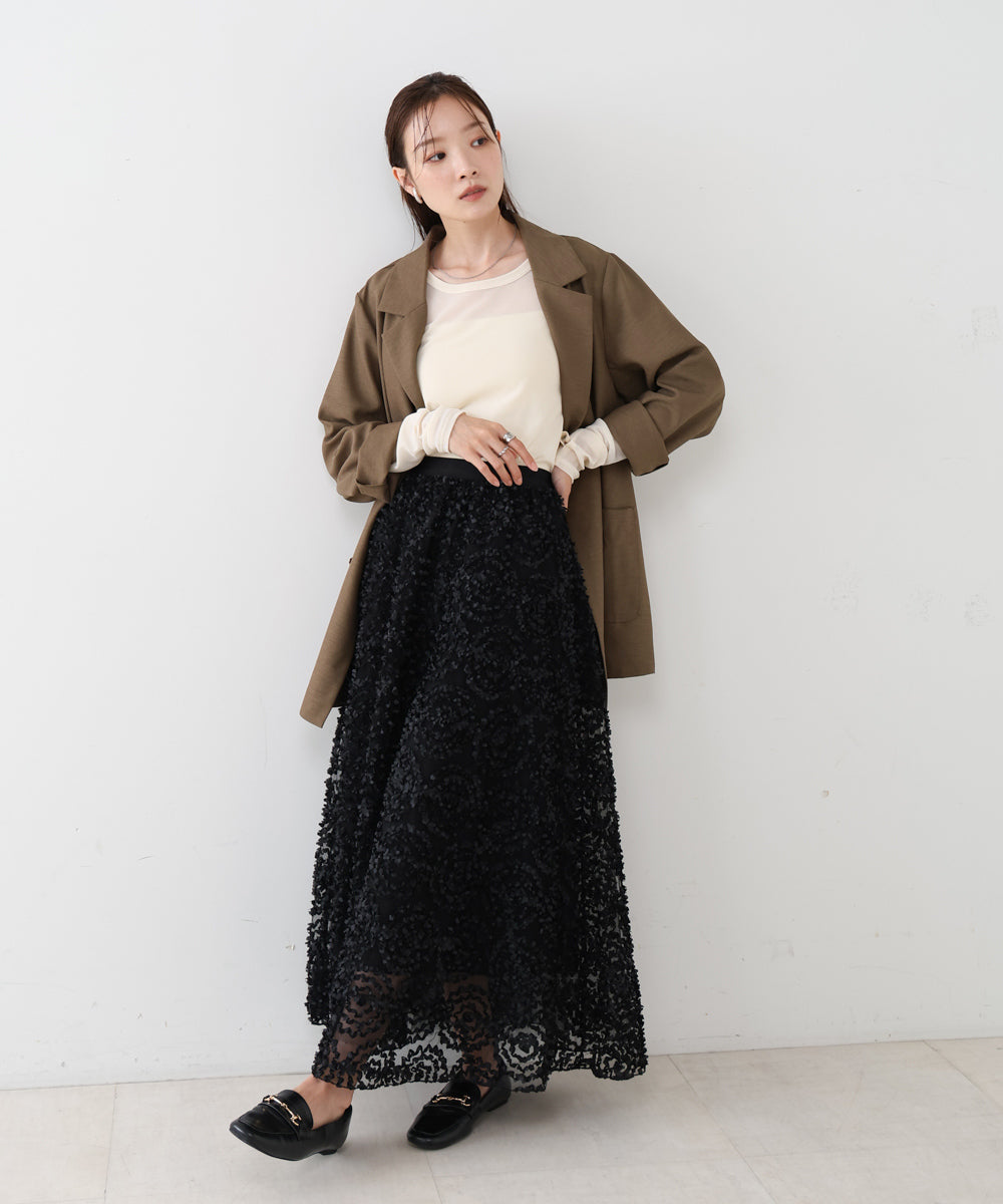 【選べるネック】チュールレイヤードリブニット