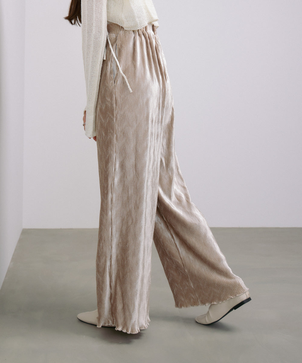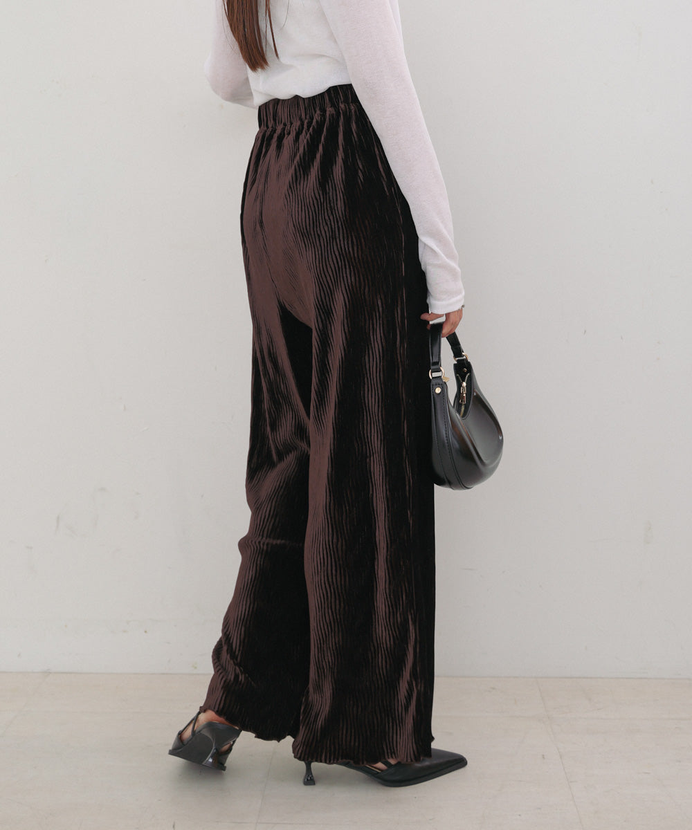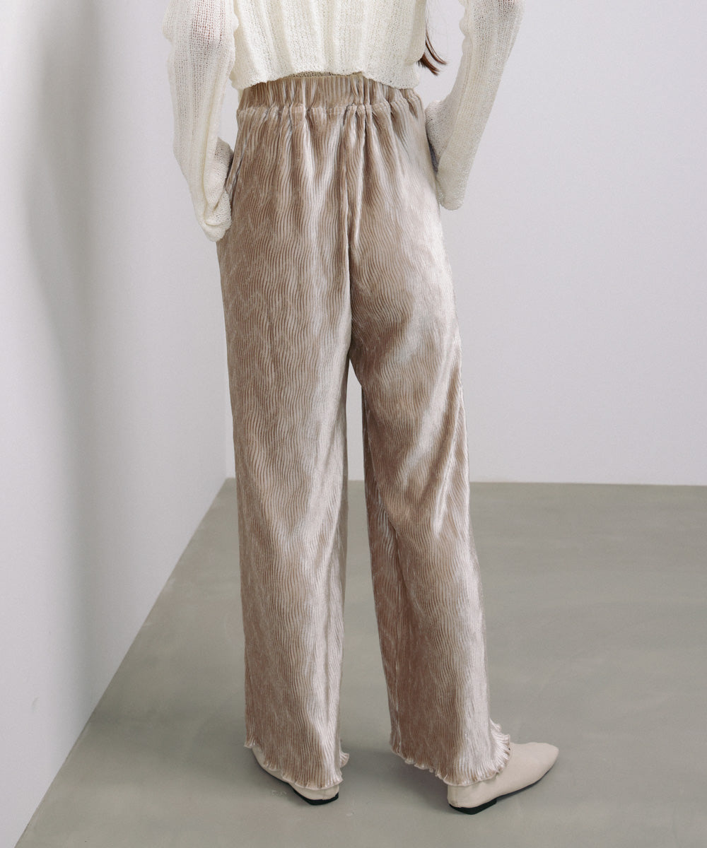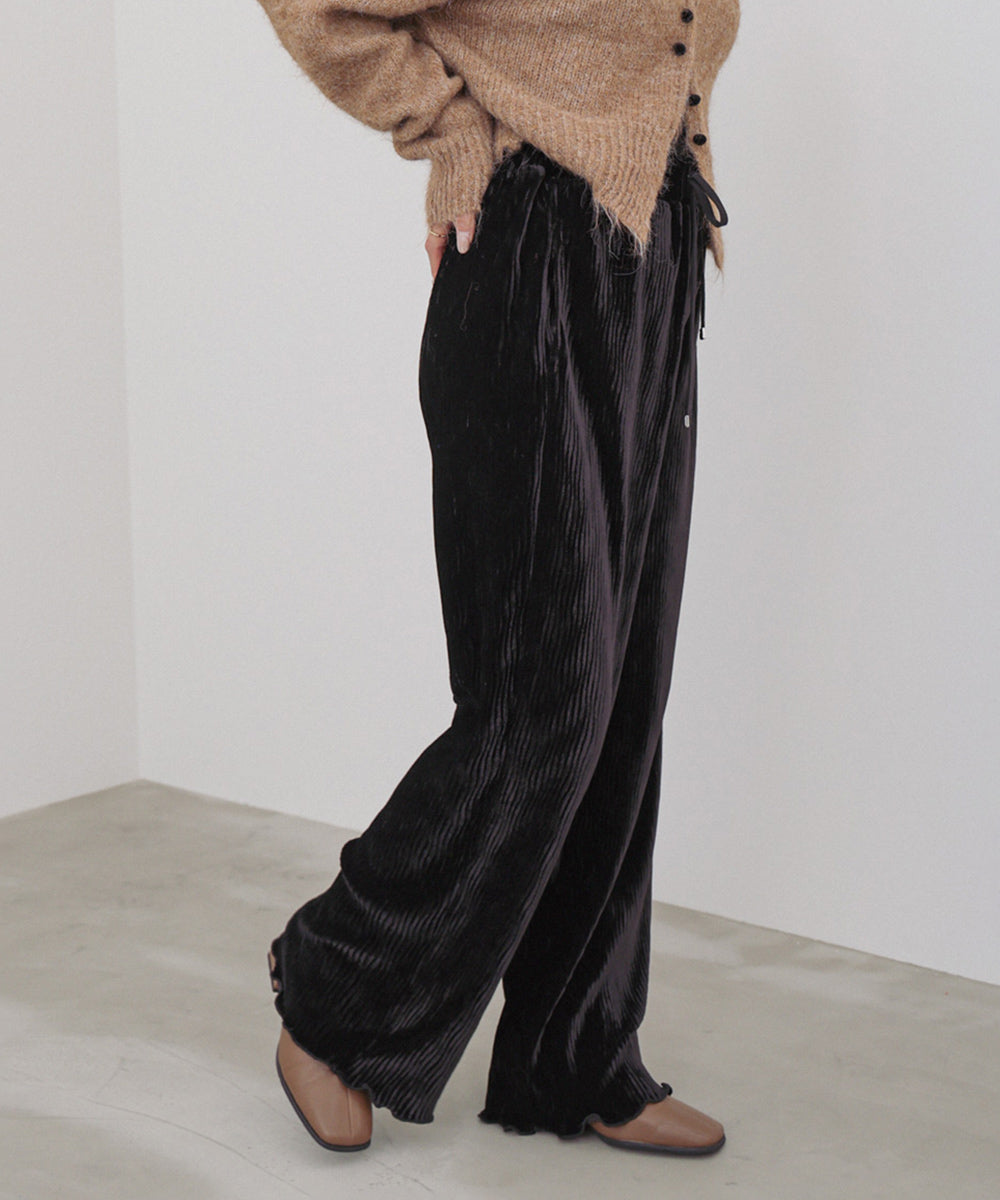 【S・Mサイズ展開】ベロアウェーブプリーツイージーパンツ