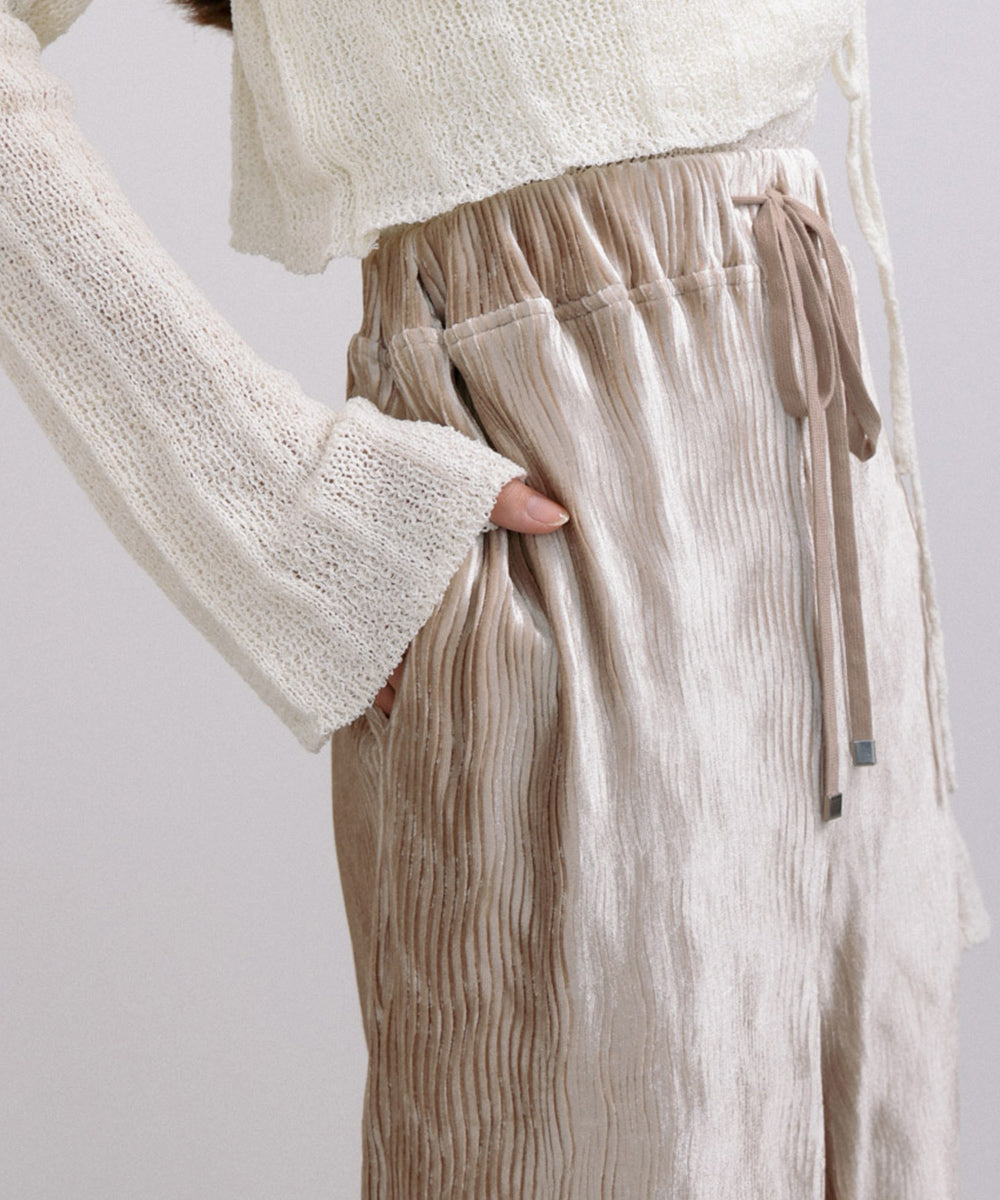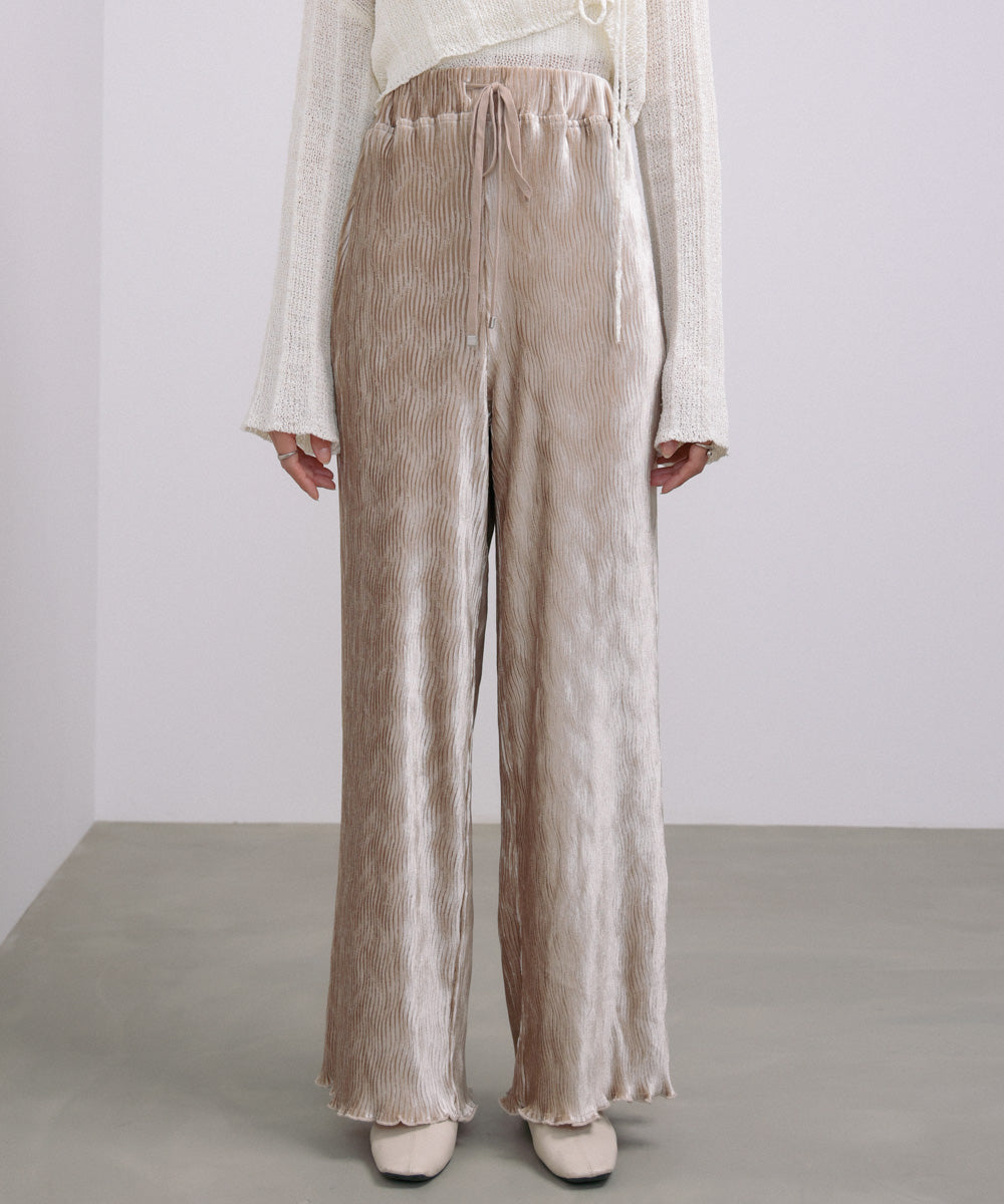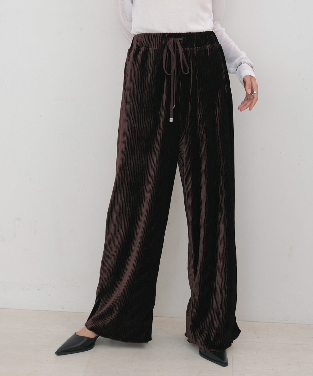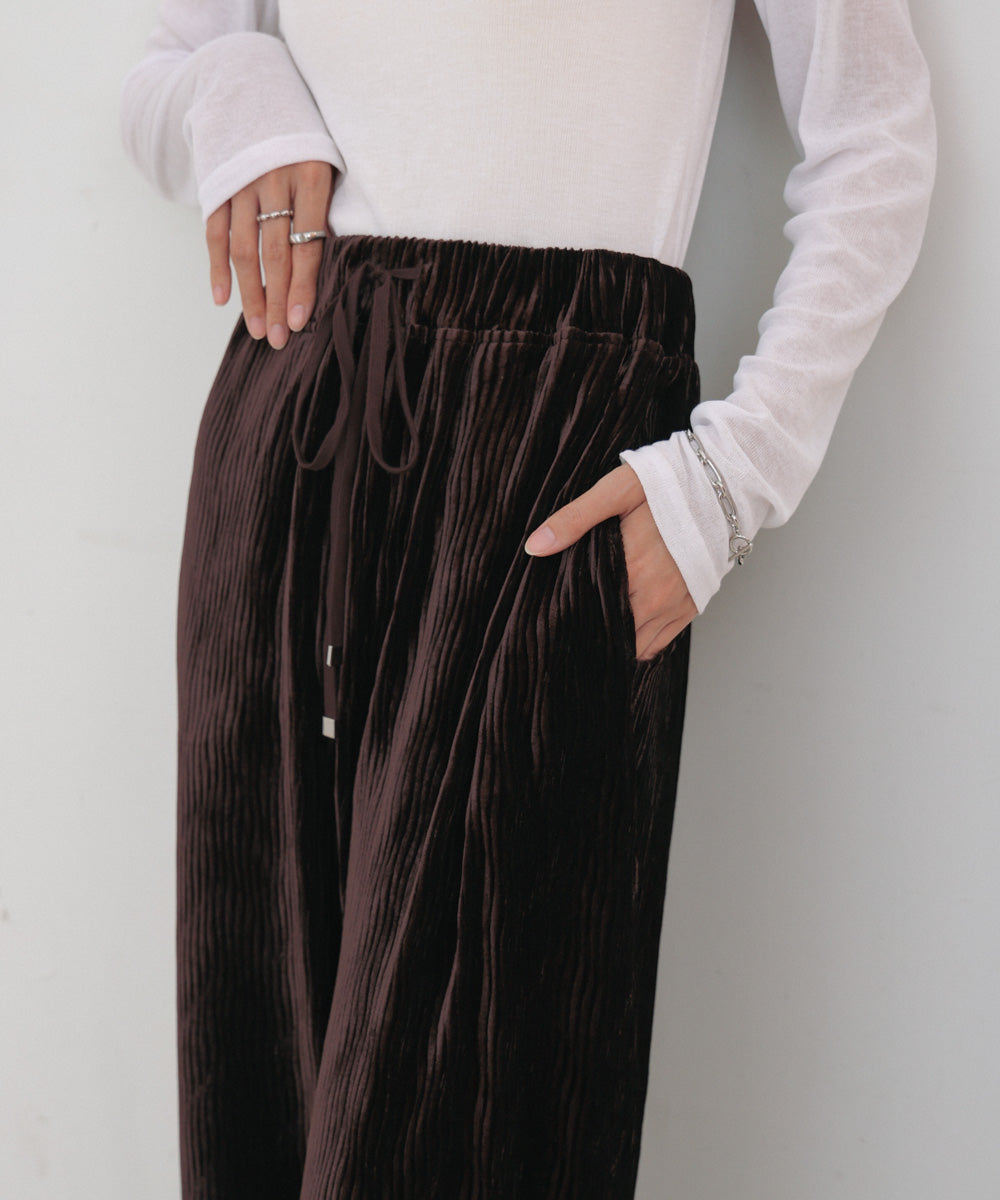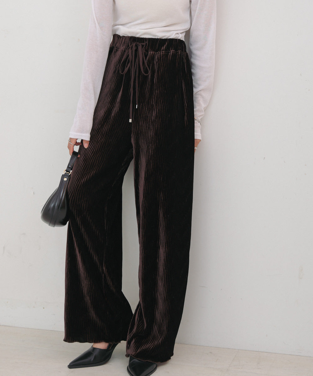 【S・Mサイズ展開】ベロアウェーブプリーツイージーパンツ