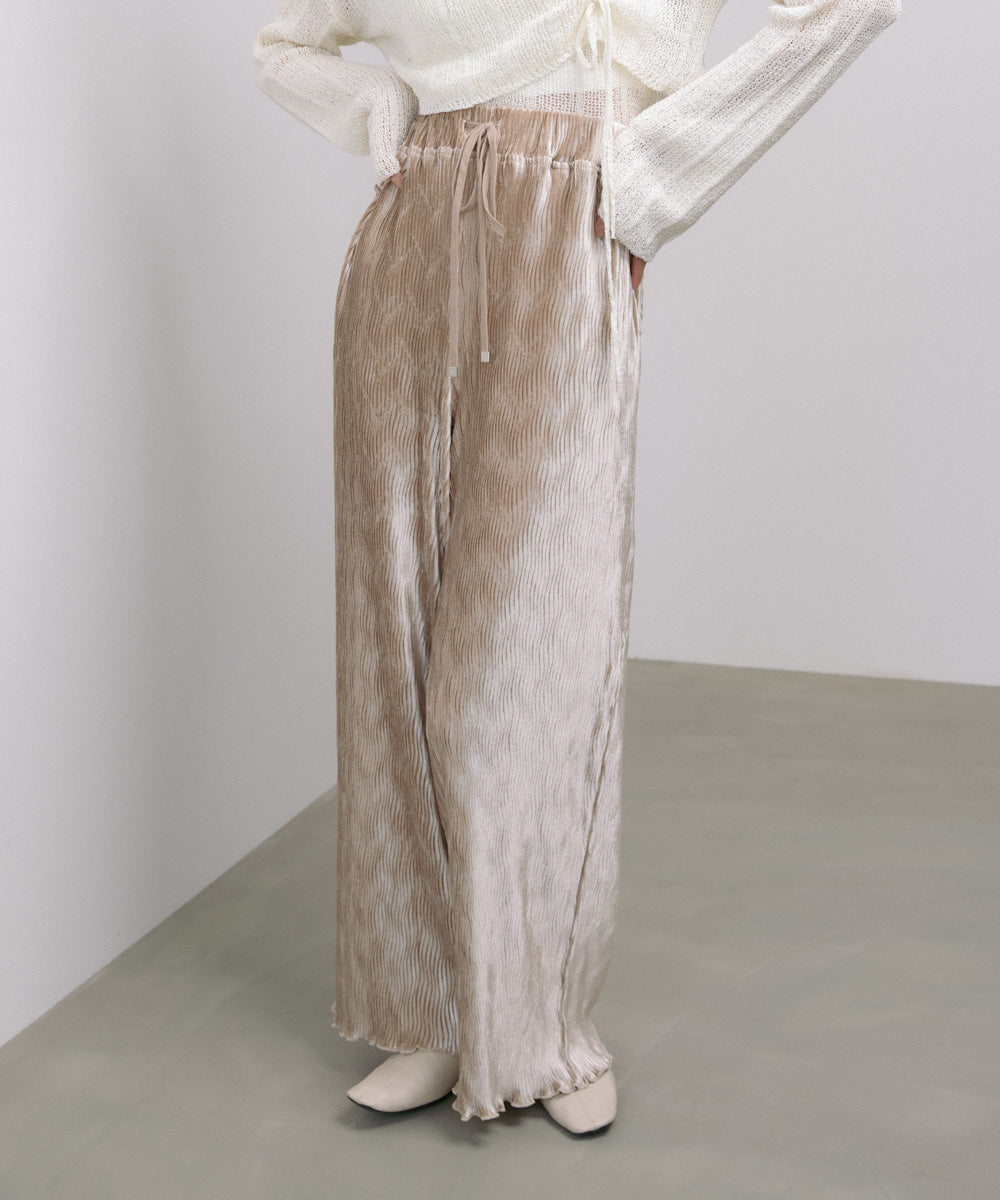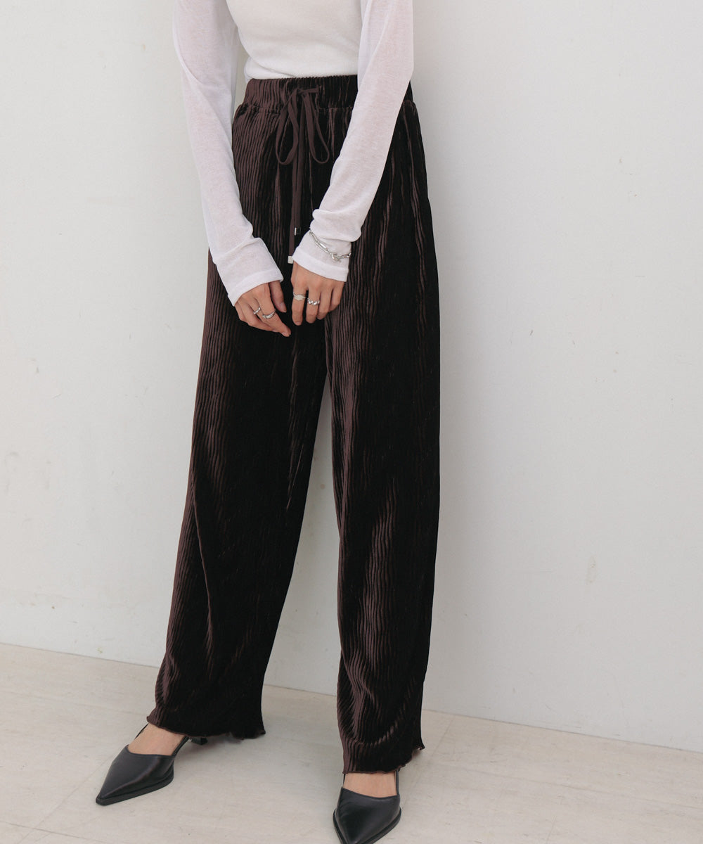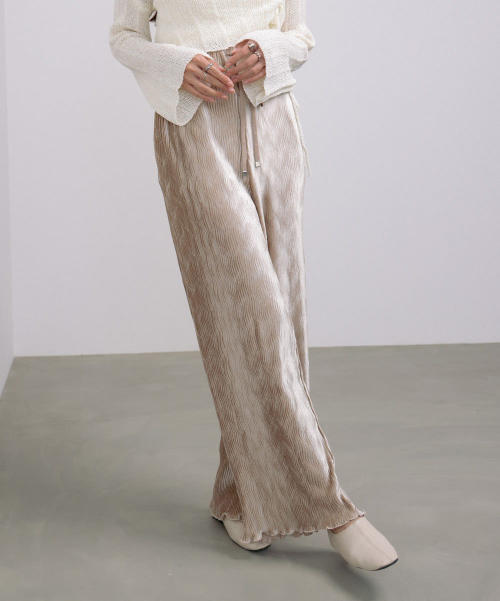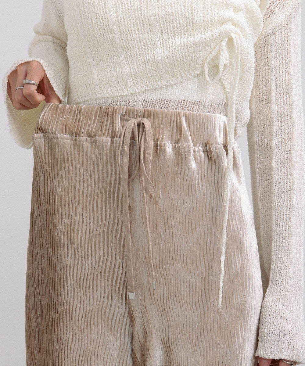 【S・Mサイズ展開】ベロアウェーブプリーツイージーパンツ