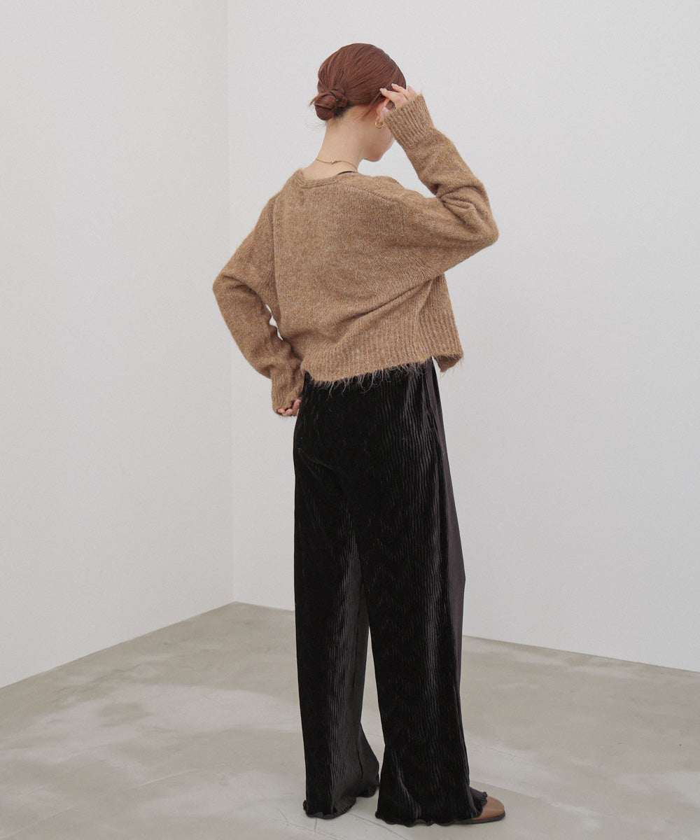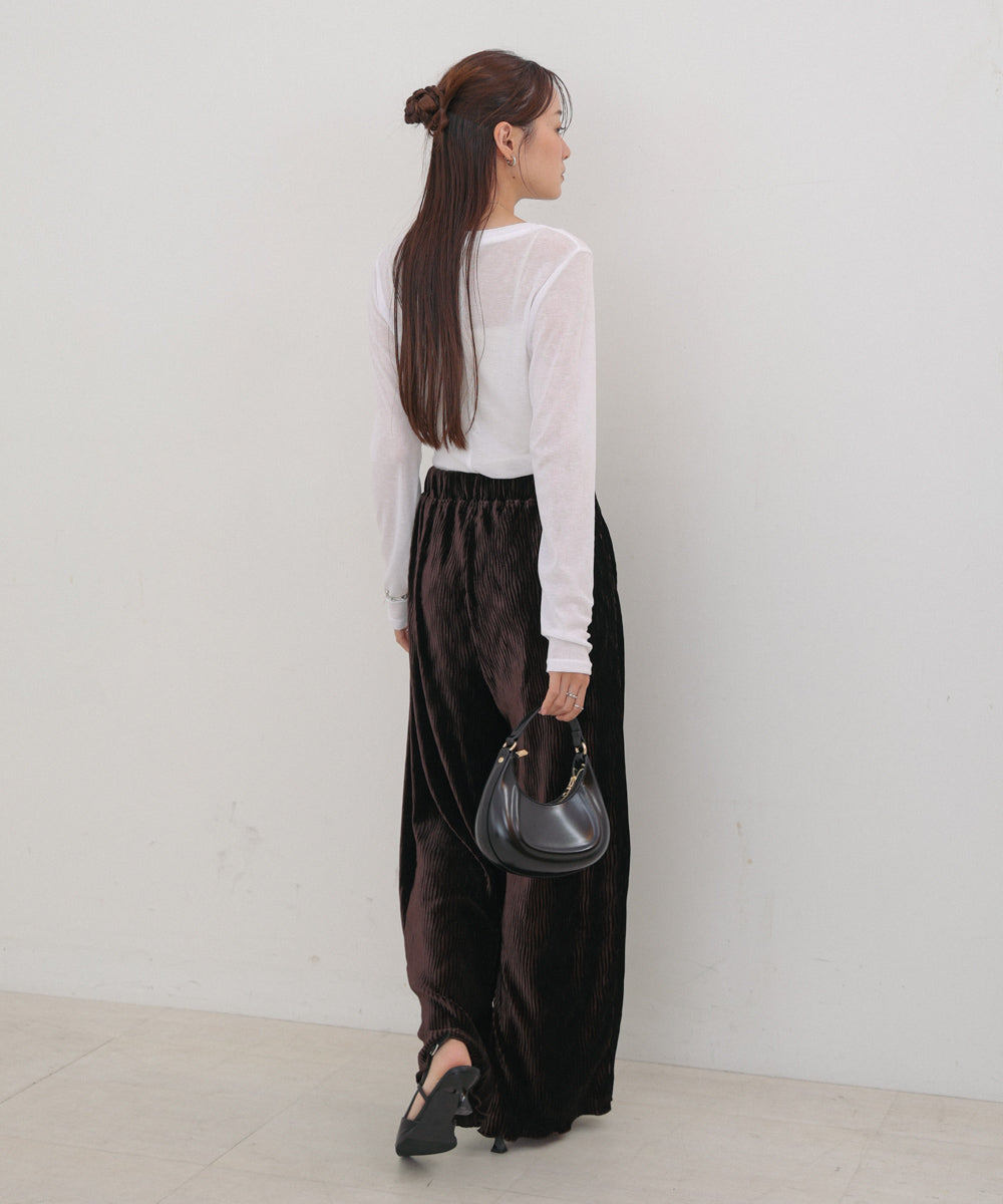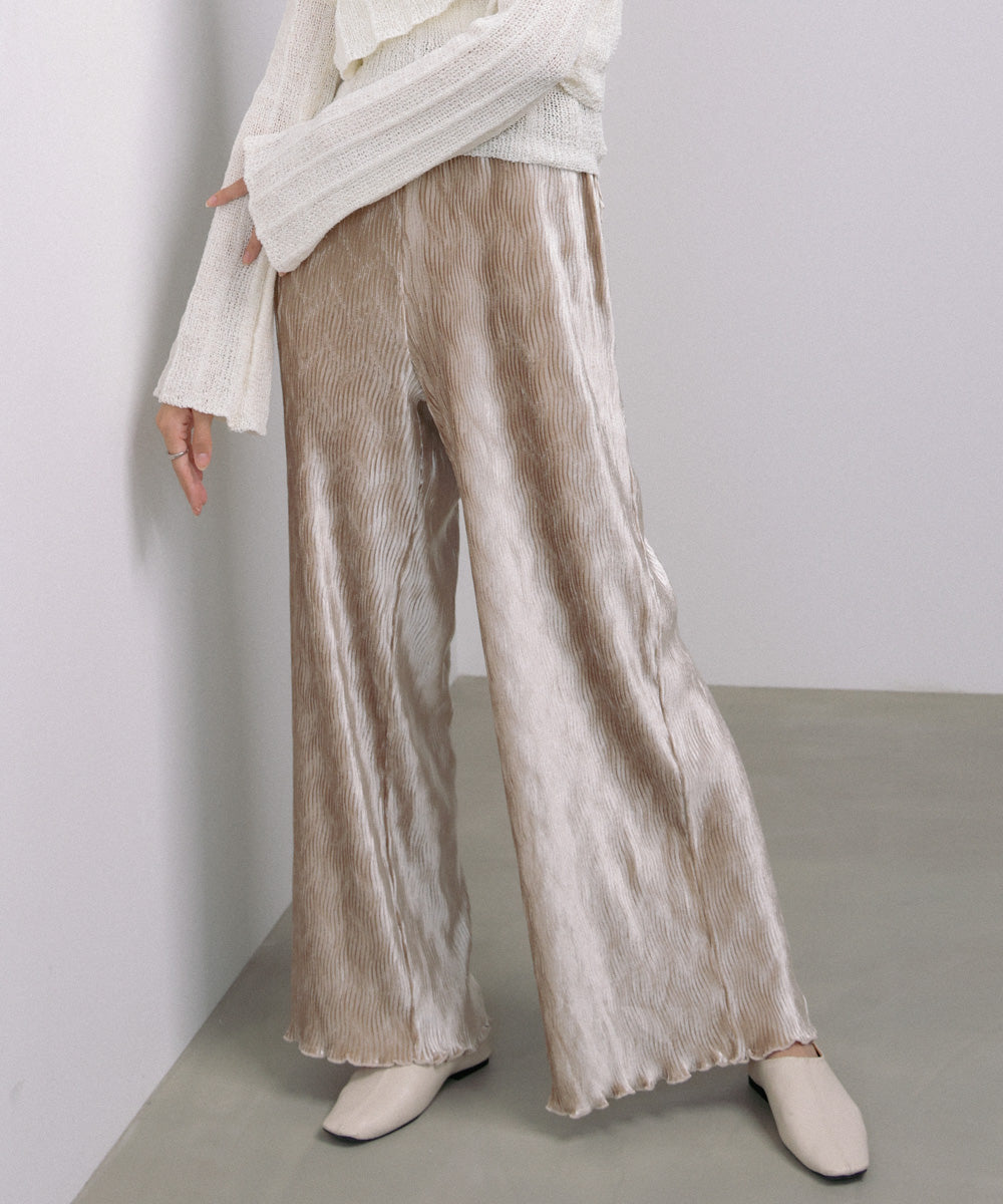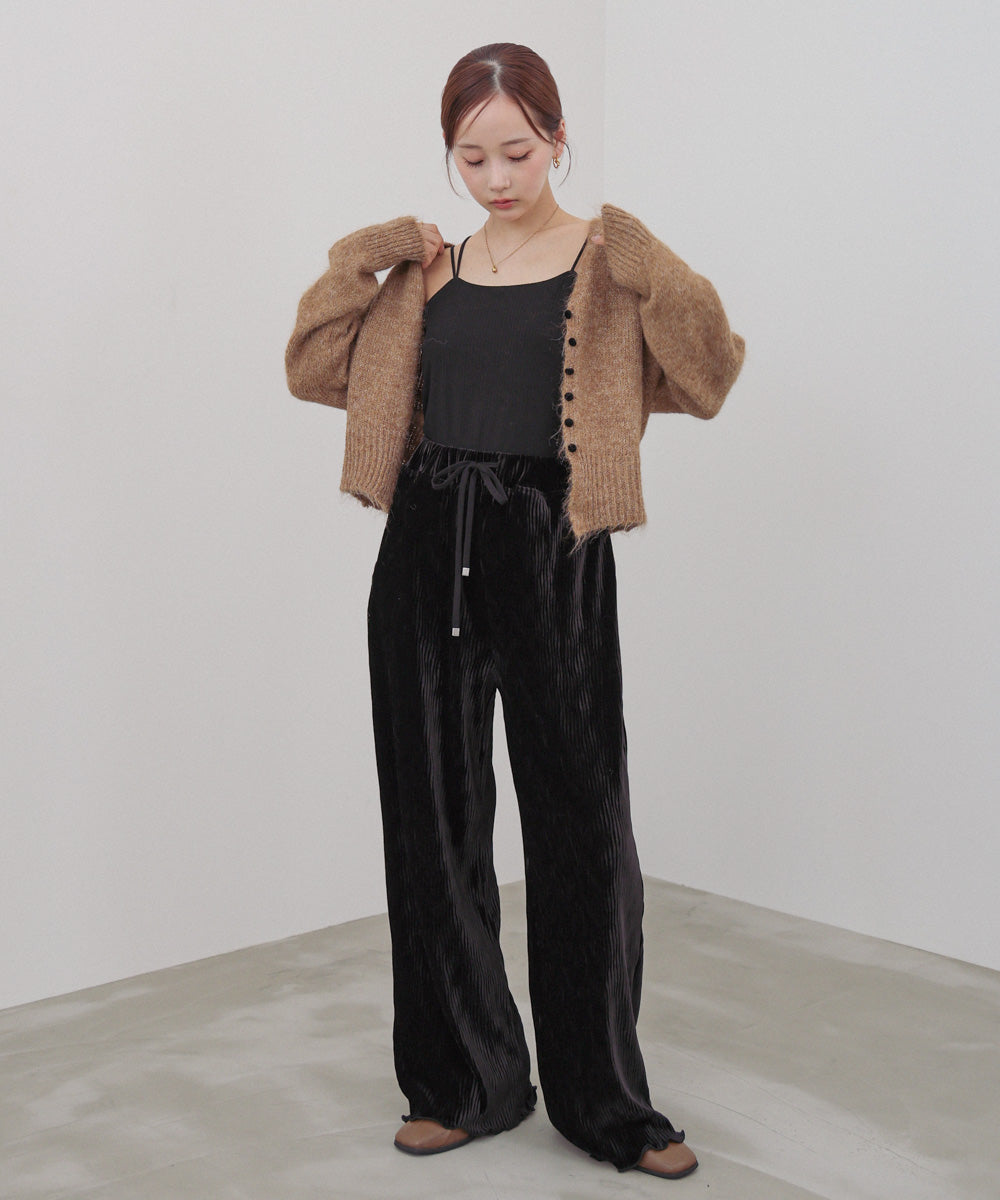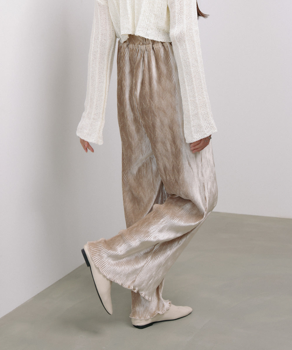 【S・Mサイズ展開】ベロアウェーブプリーツイージーパンツ