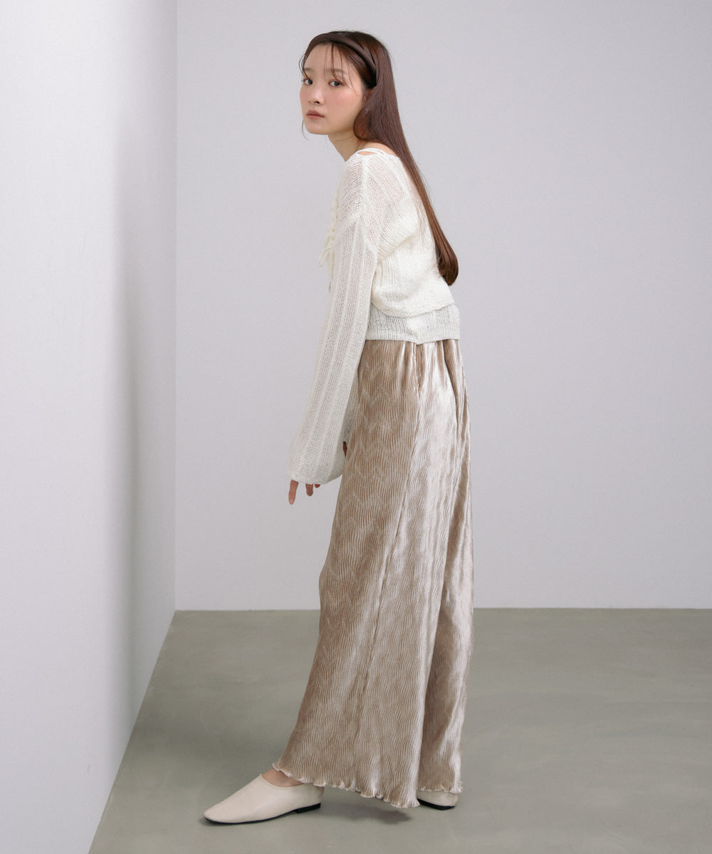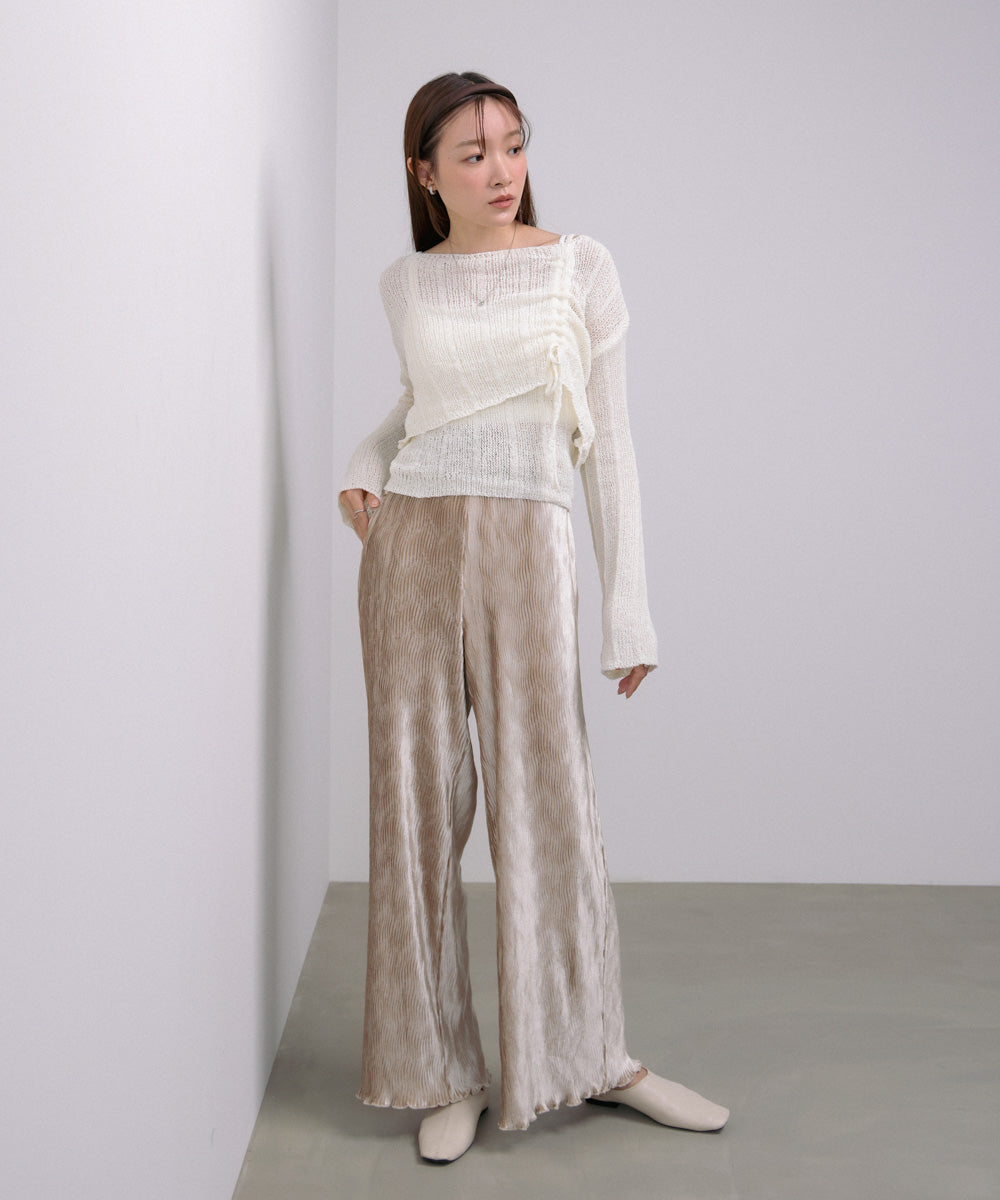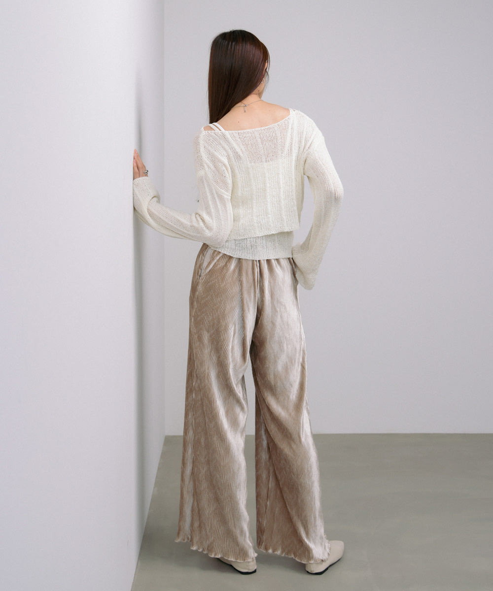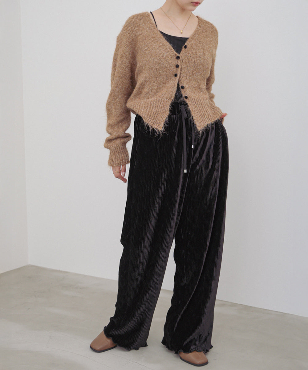 【S・Mサイズ展開】ベロアウェーブプリーツイージーパンツ