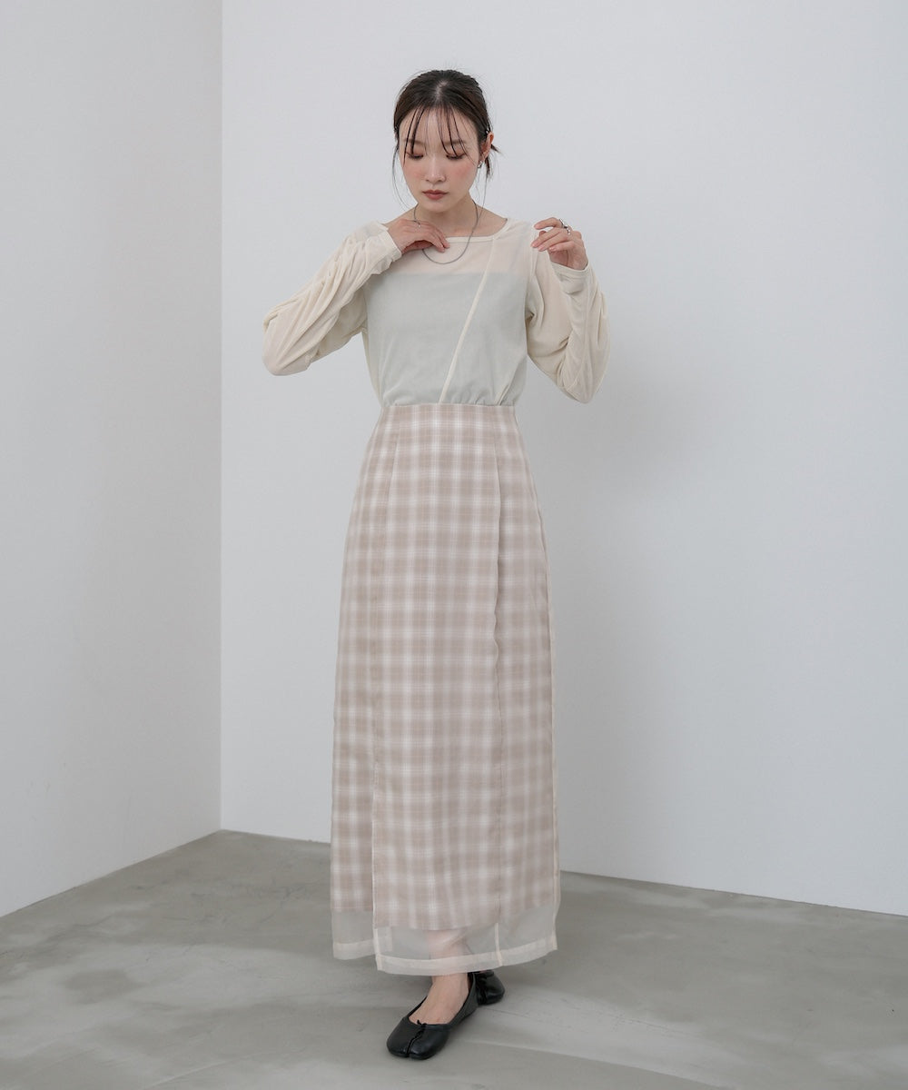 【選べるネック】チュールレイヤードリブニット