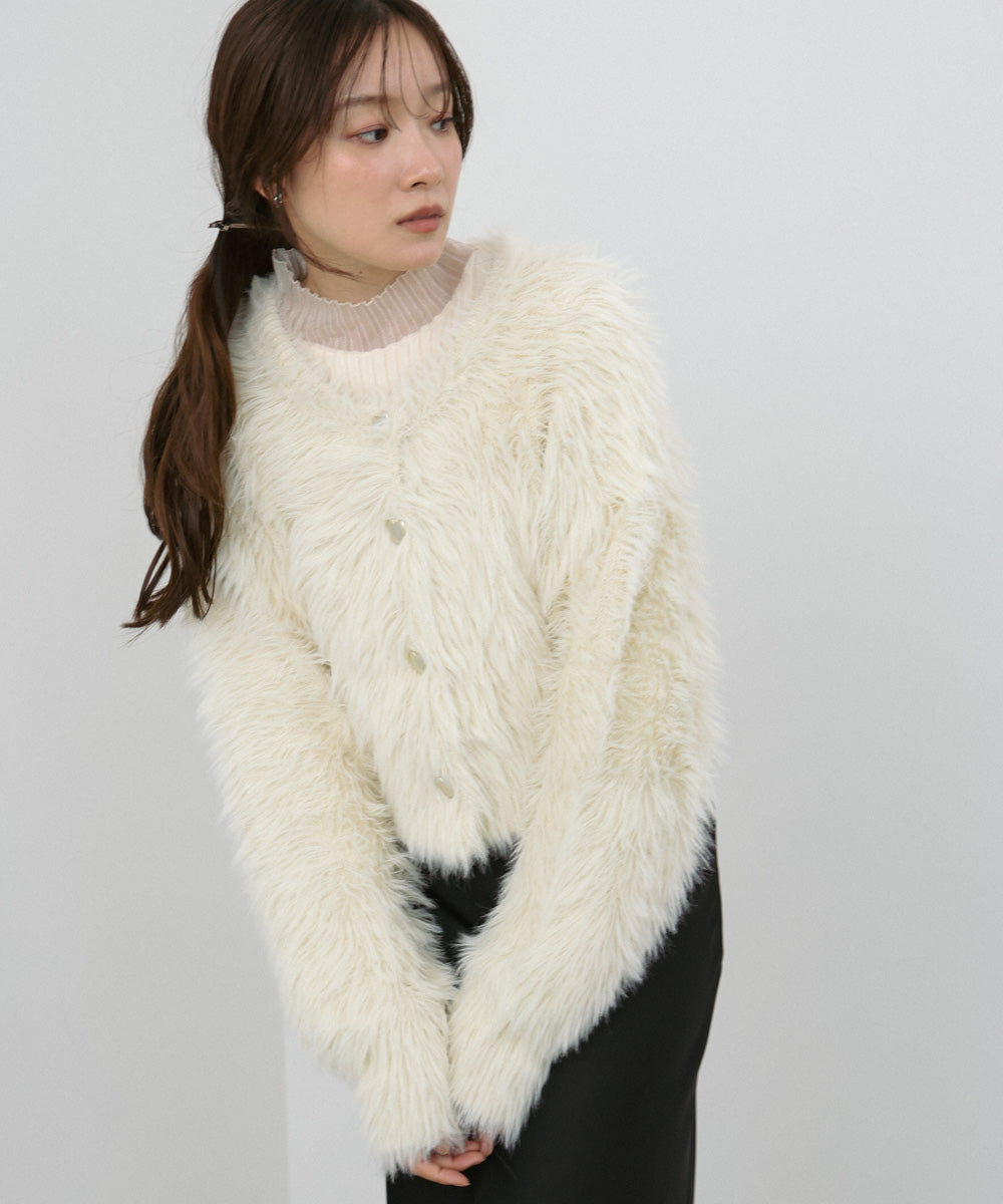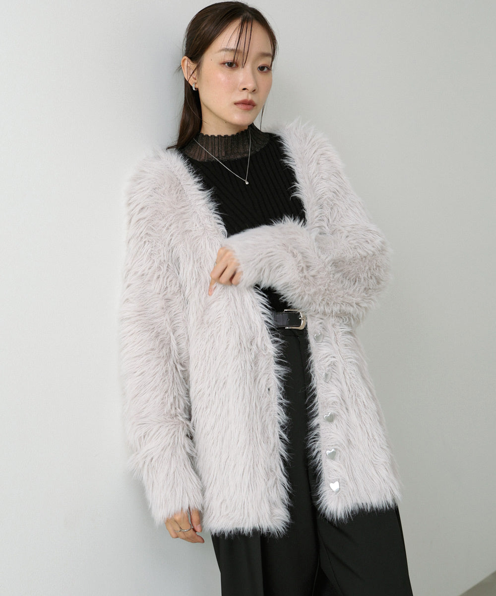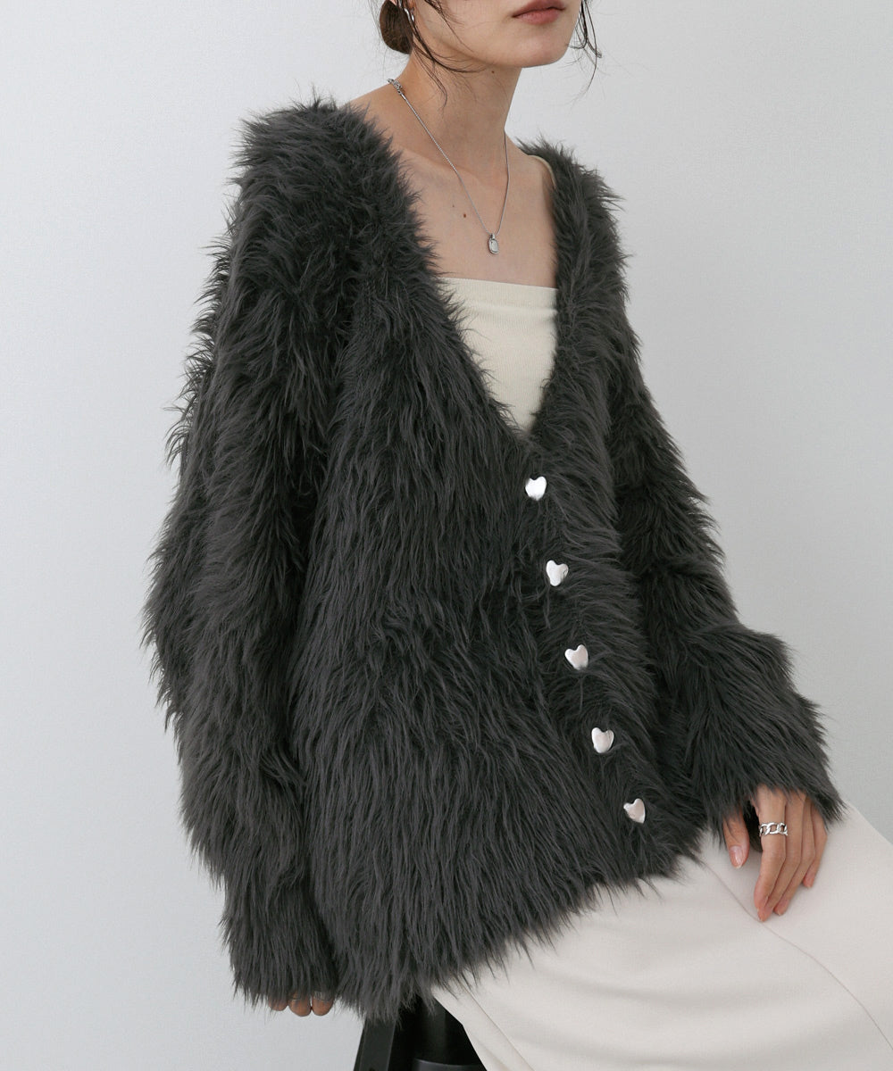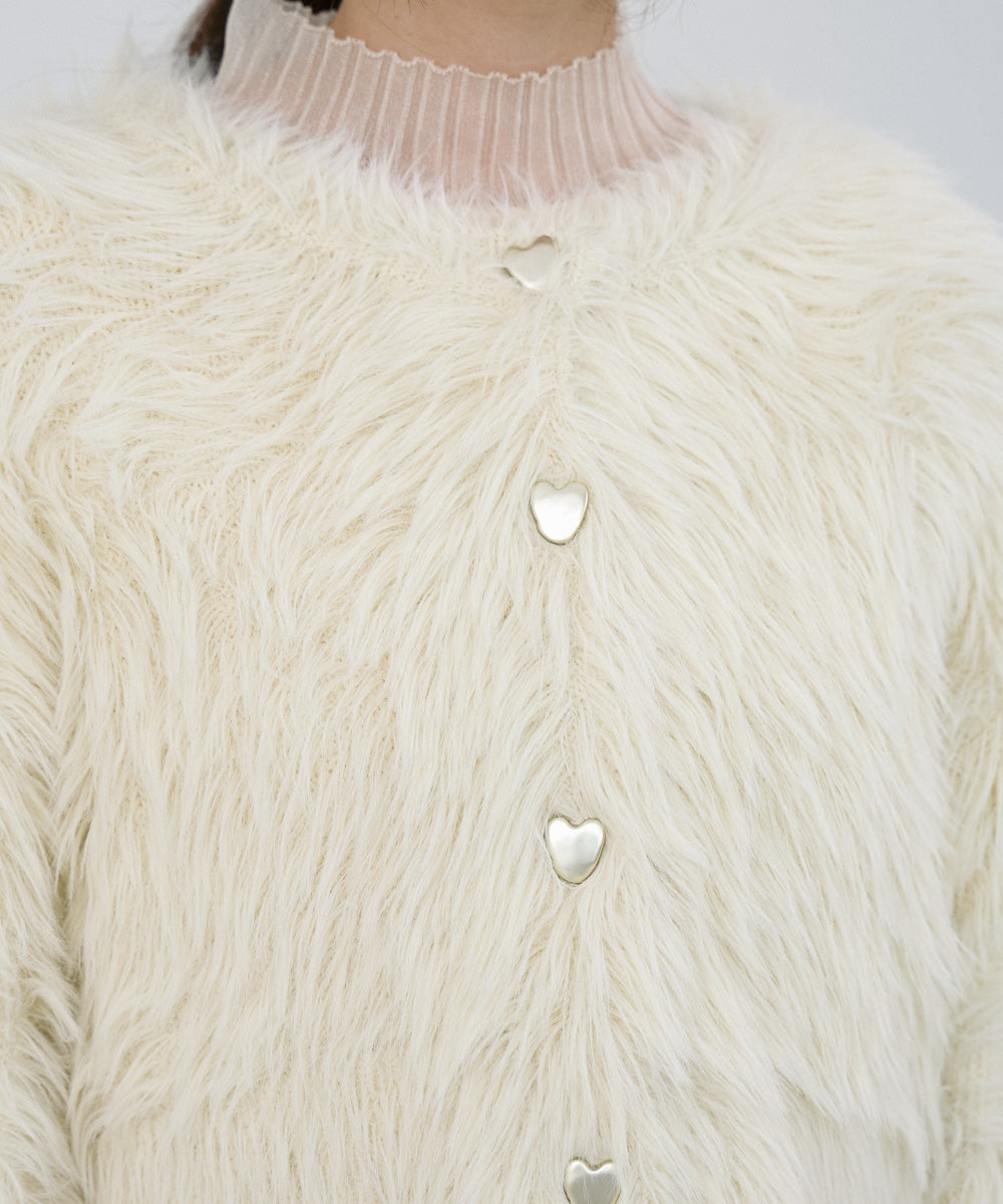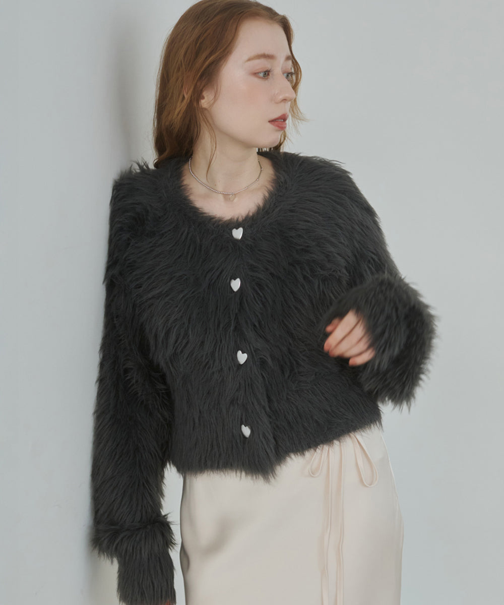 【選べる着丈】前後2WAYハートボタンシャギーニットカーディガン