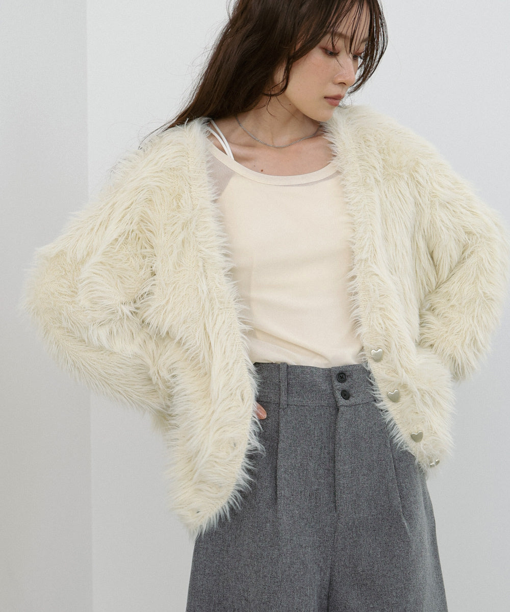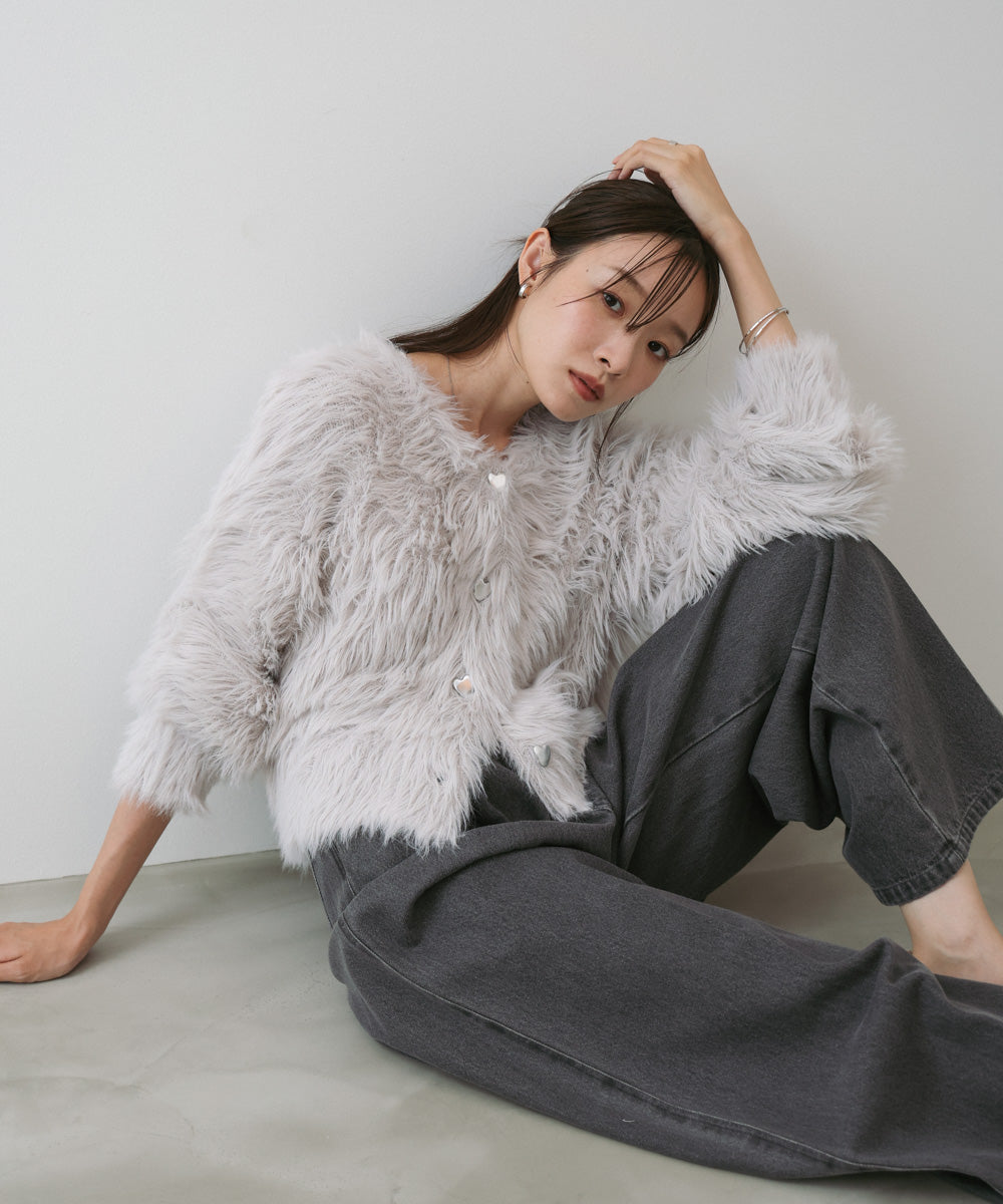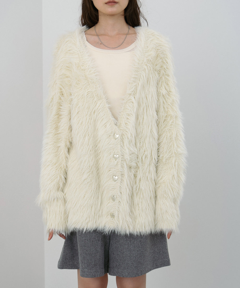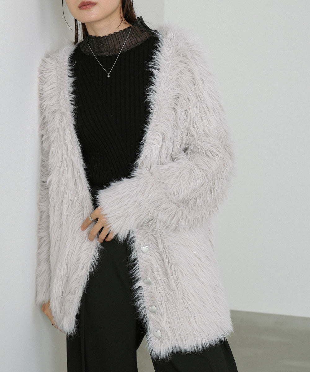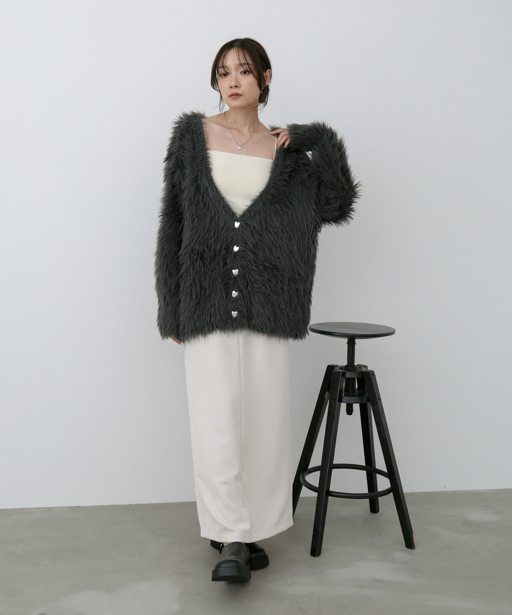 【選べる着丈】前後2WAYハートボタンシャギーニットカーディガン