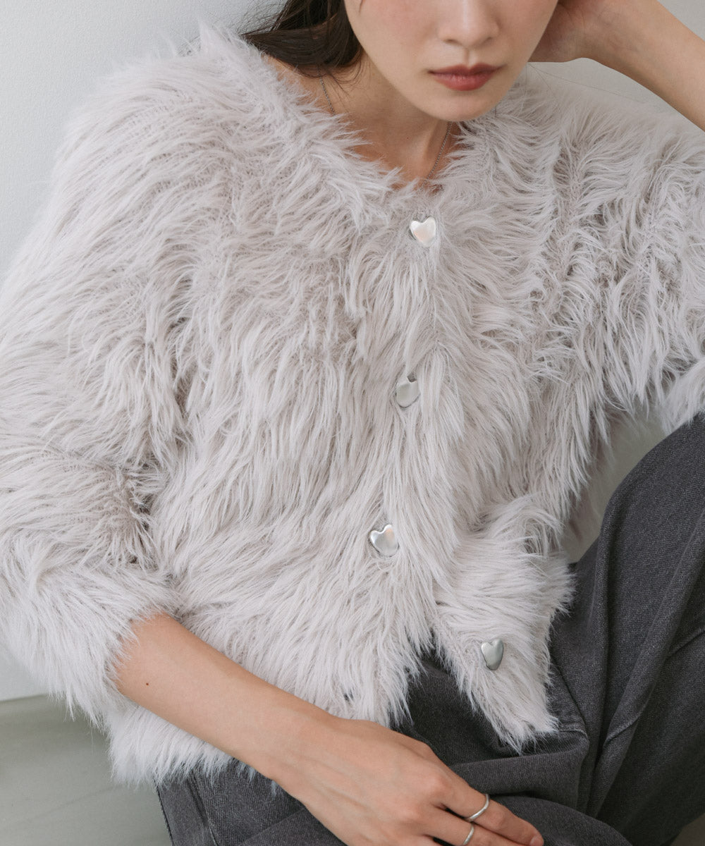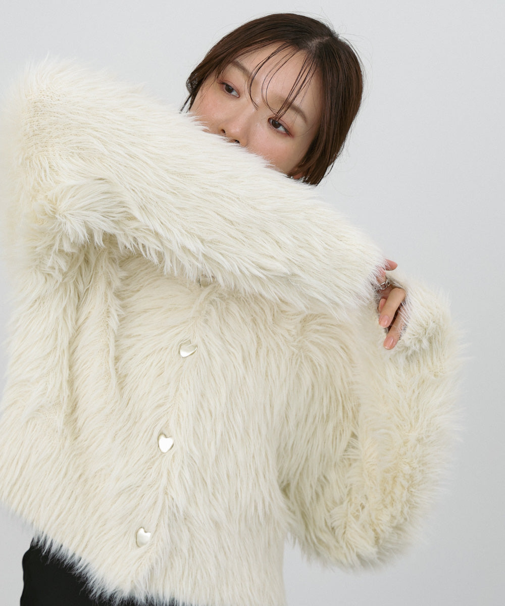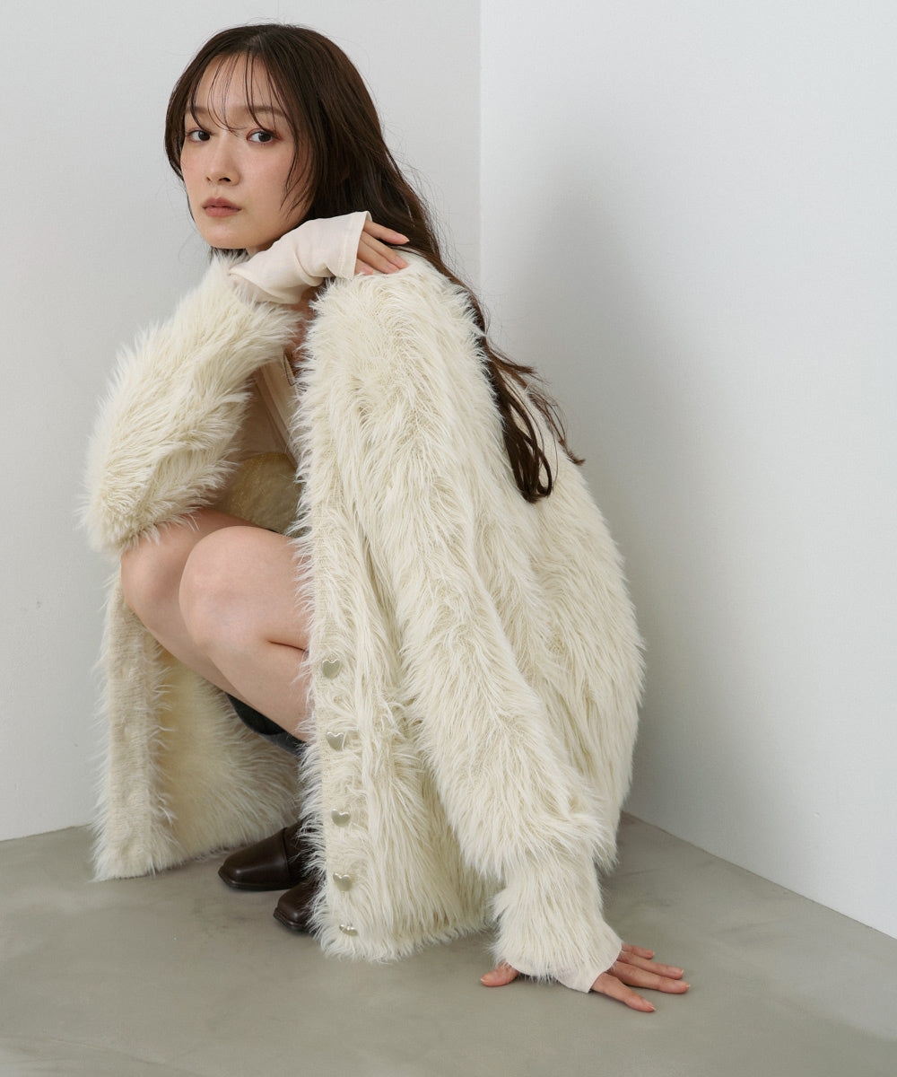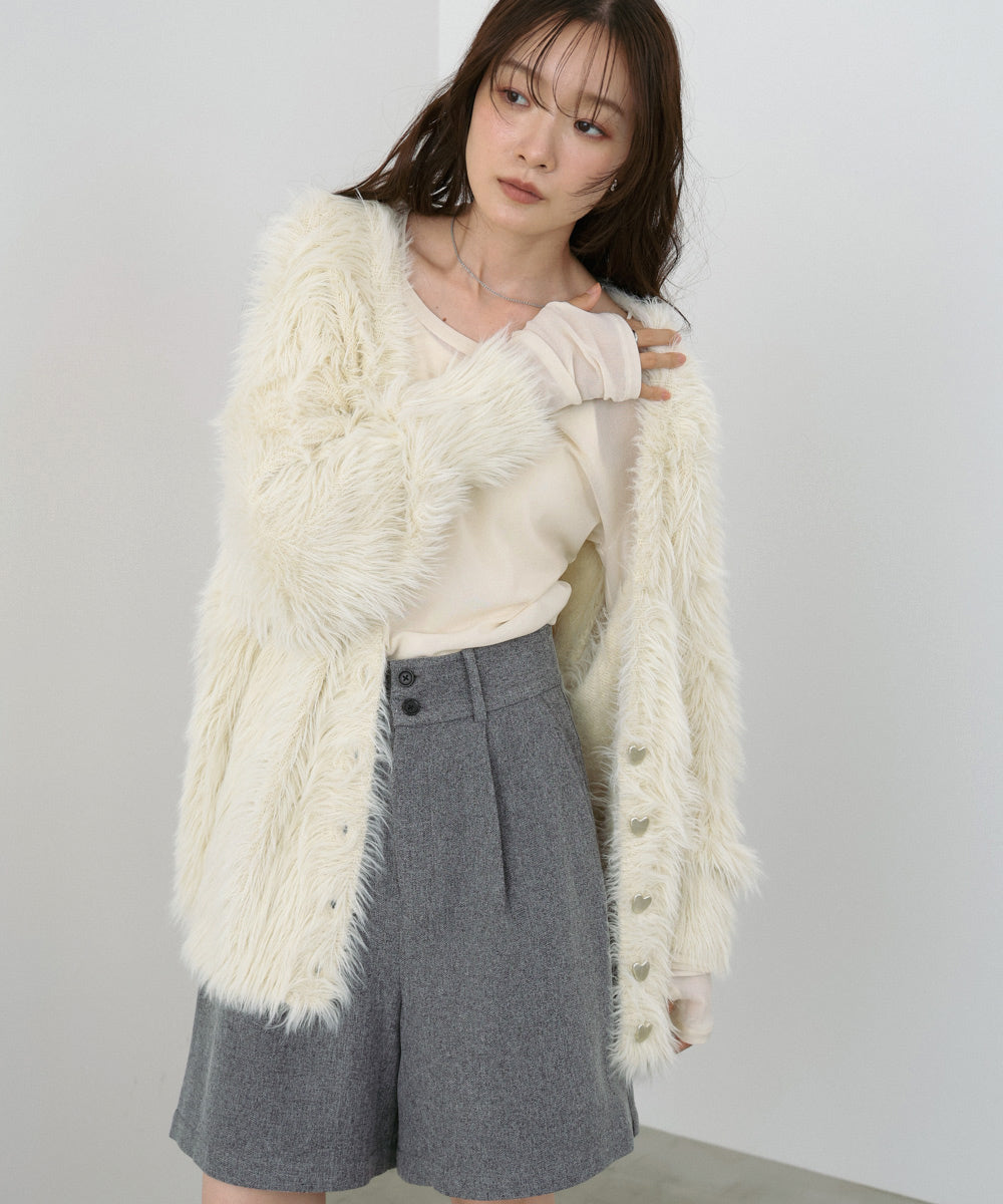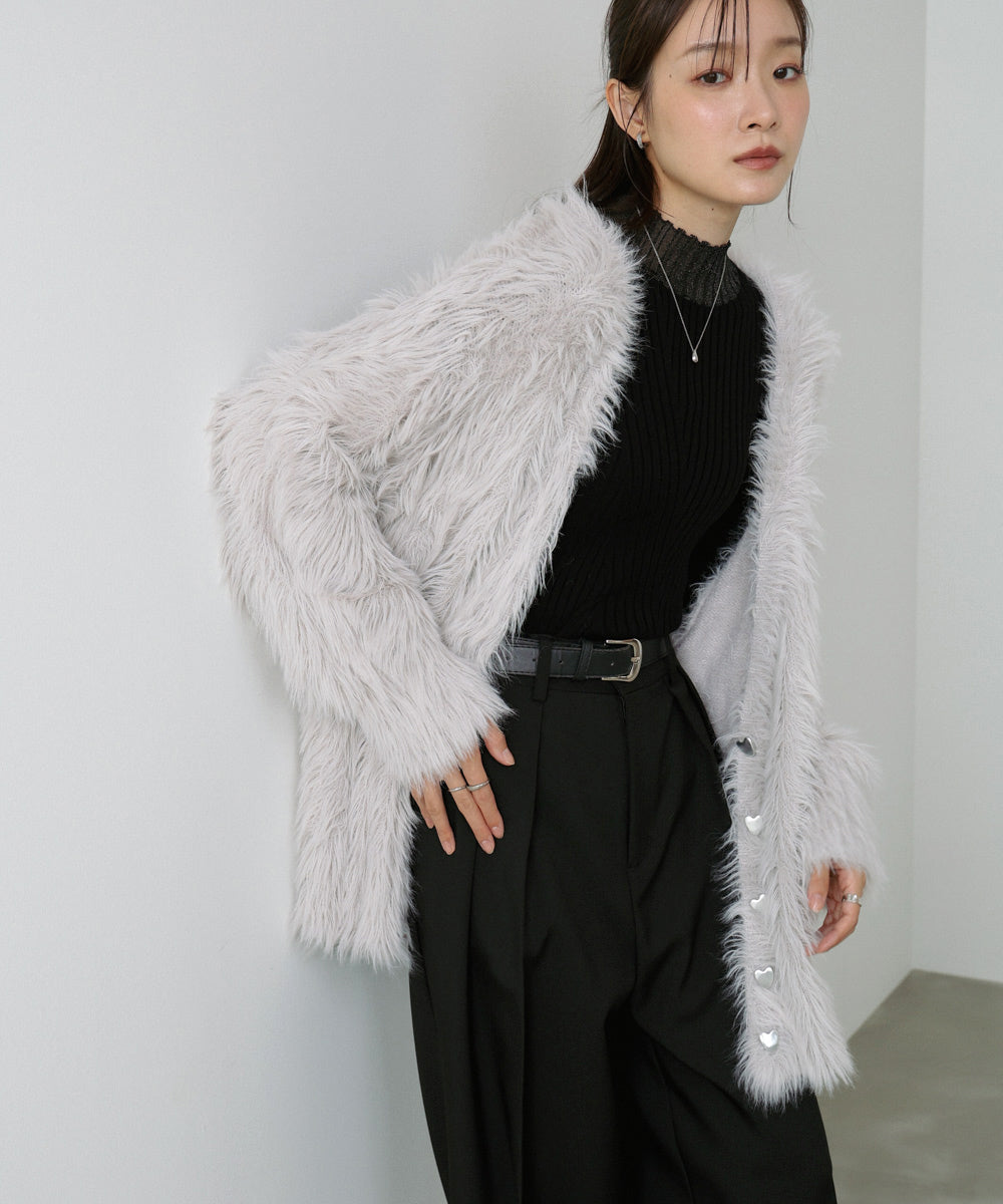【選べる着丈】前後2WAYハートボタンシャギーニットカーディガン