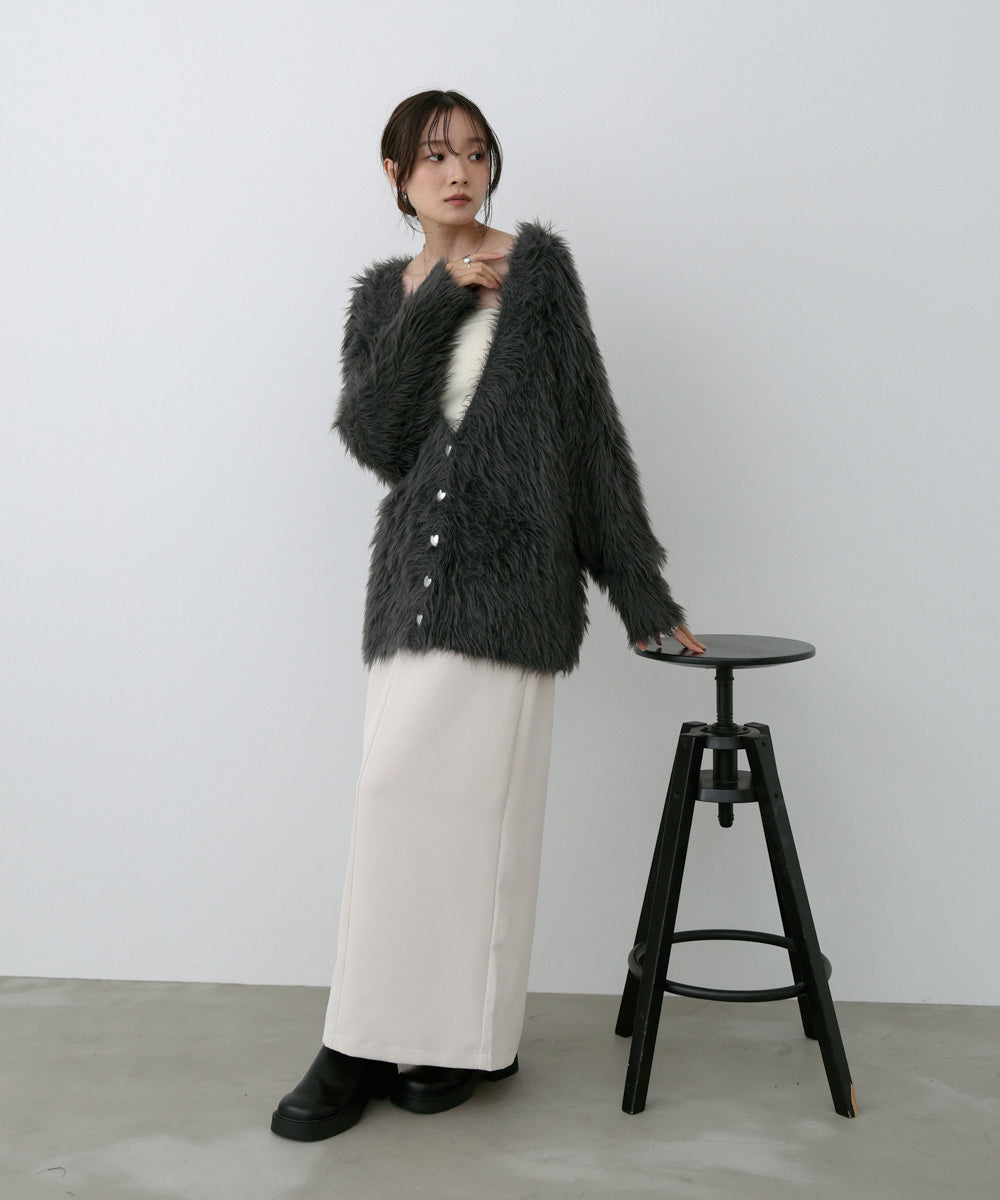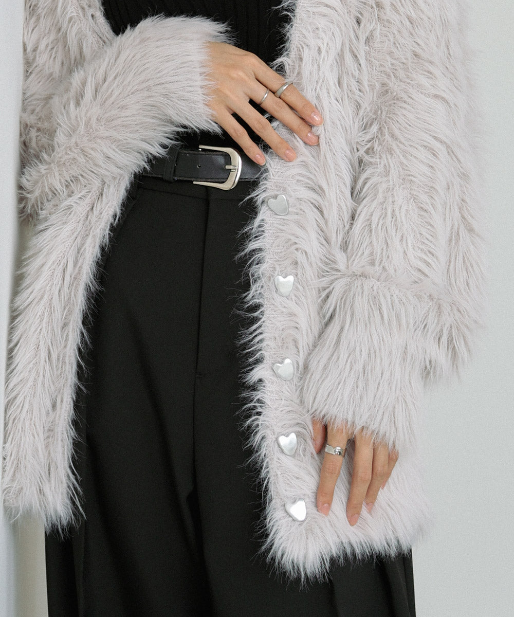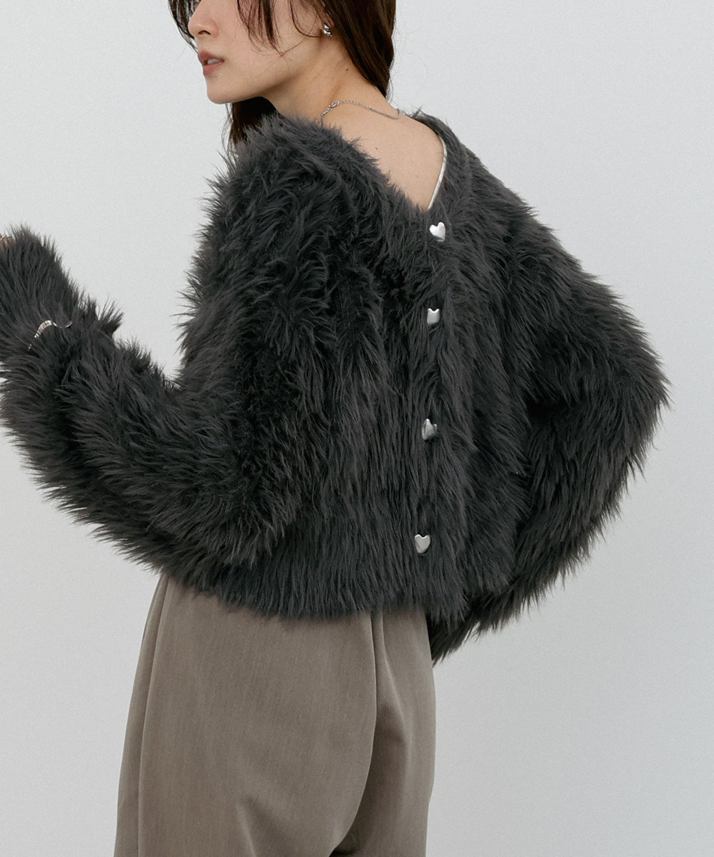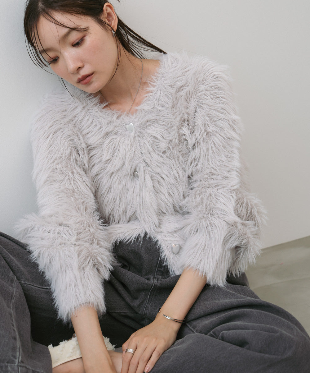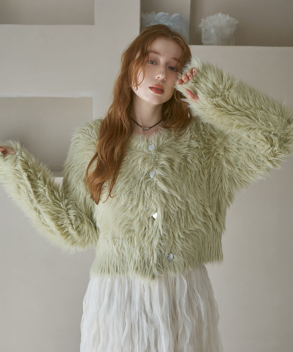 【選べる着丈】前後2WAYハートボタンシャギーニットカーディガン