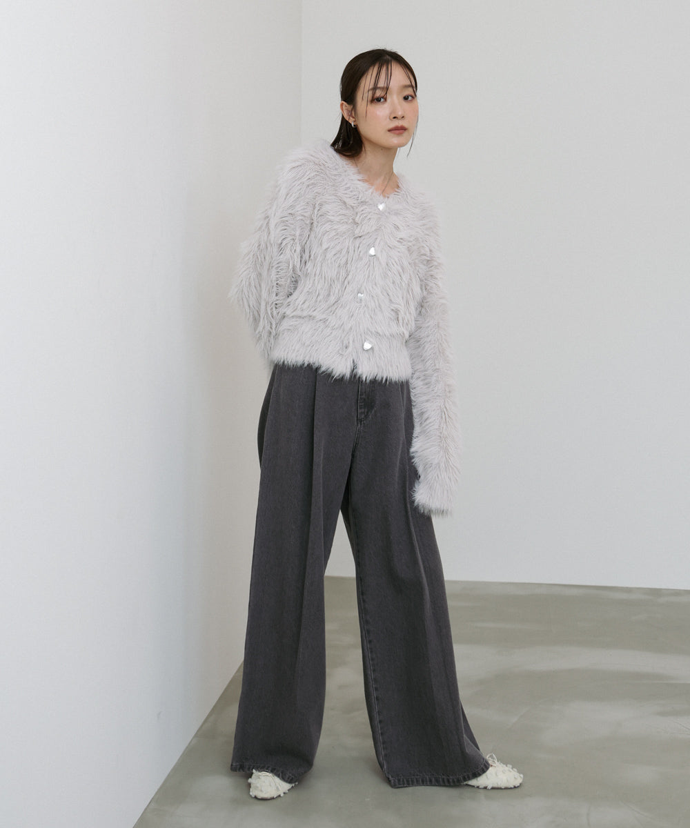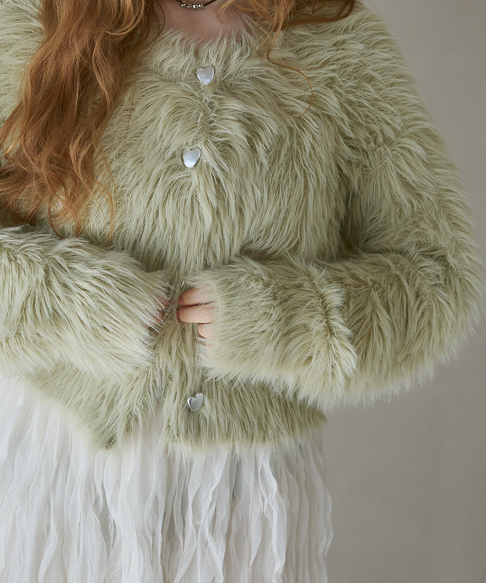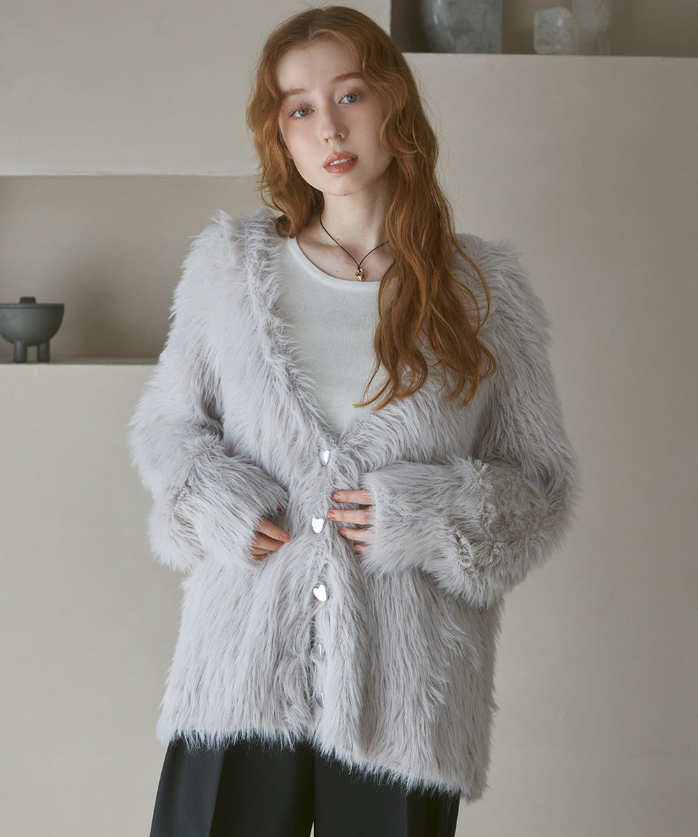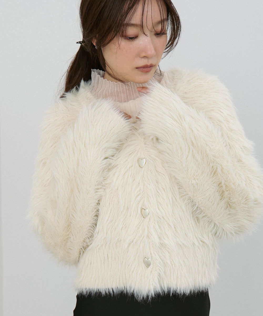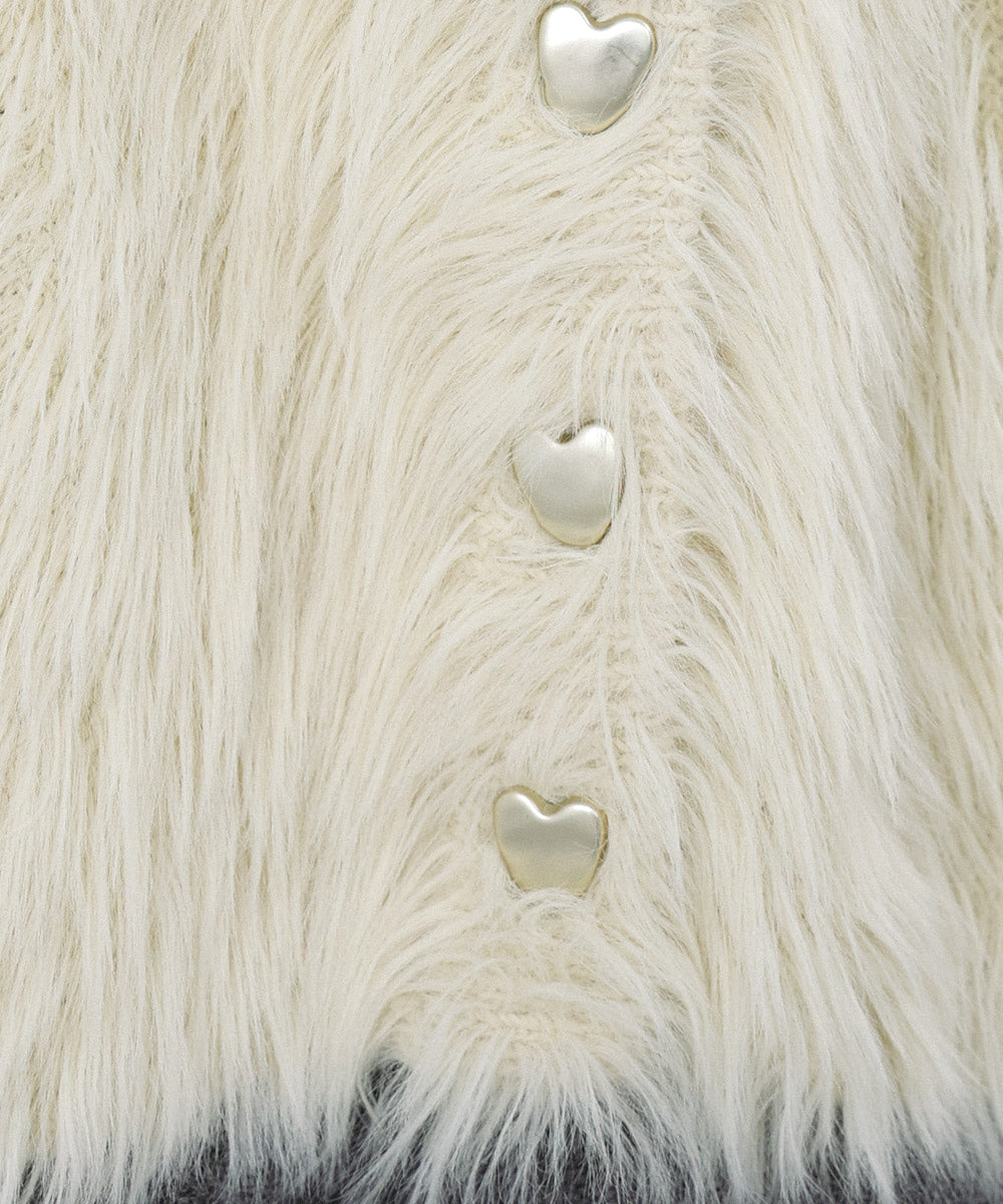 【選べる着丈】前後2WAYハートボタンシャギーニットカーディガン
