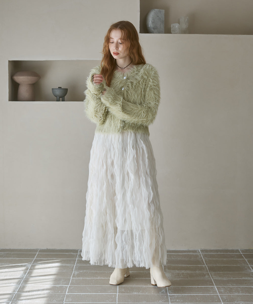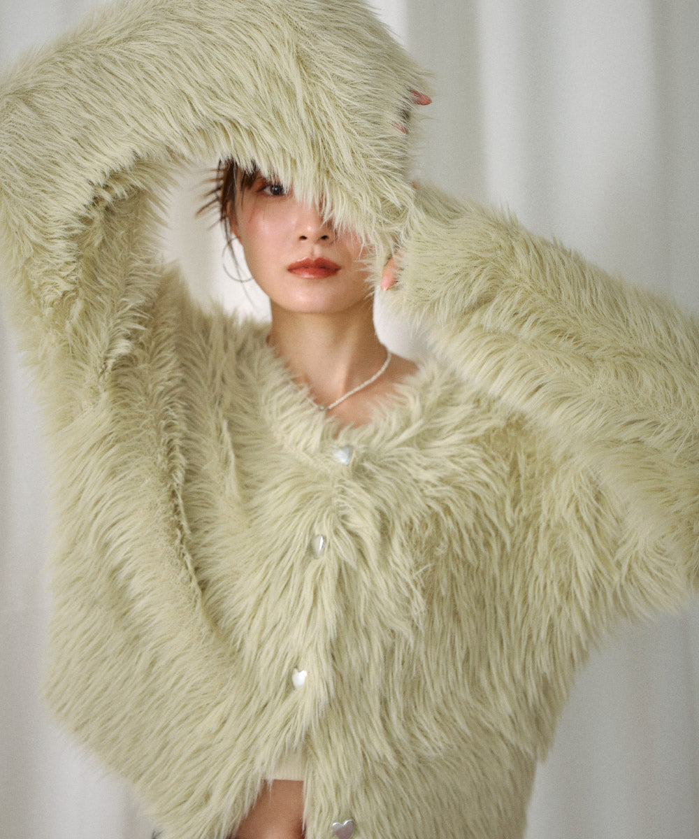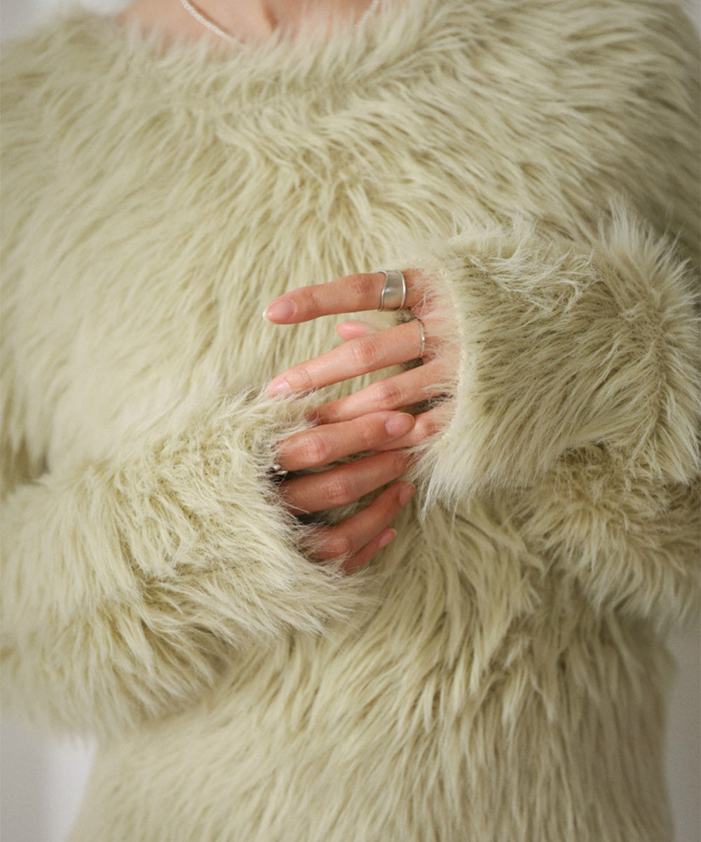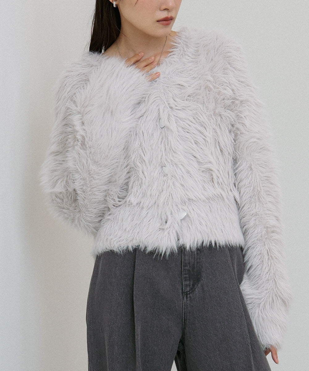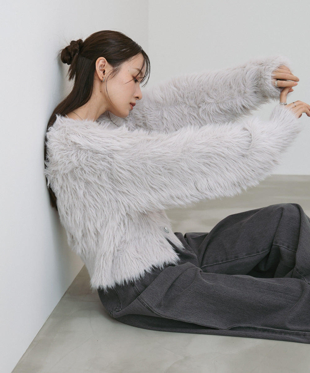 ふわっと柔らかく、高級感のある着心地のいいシャギーカーディガンです。