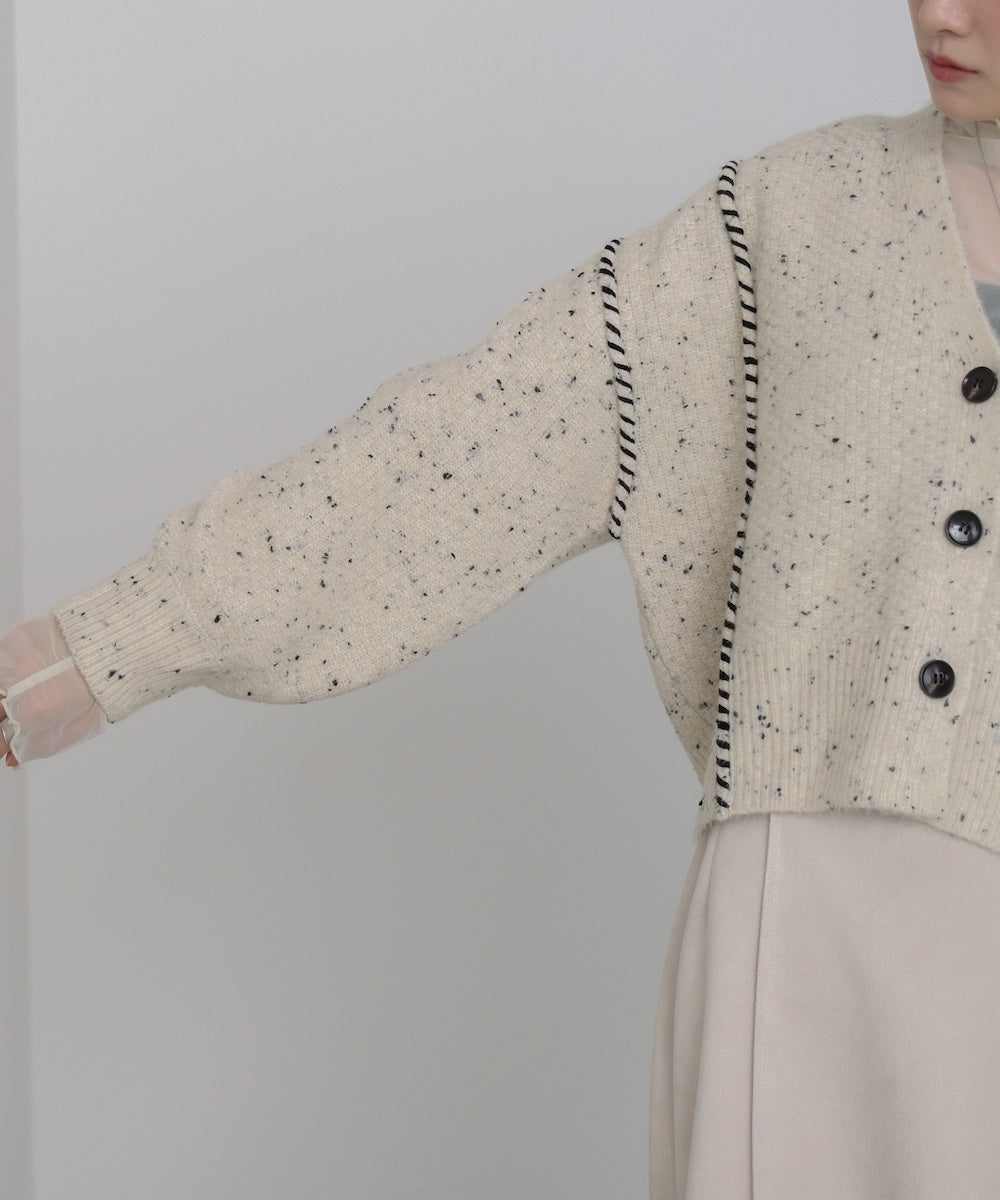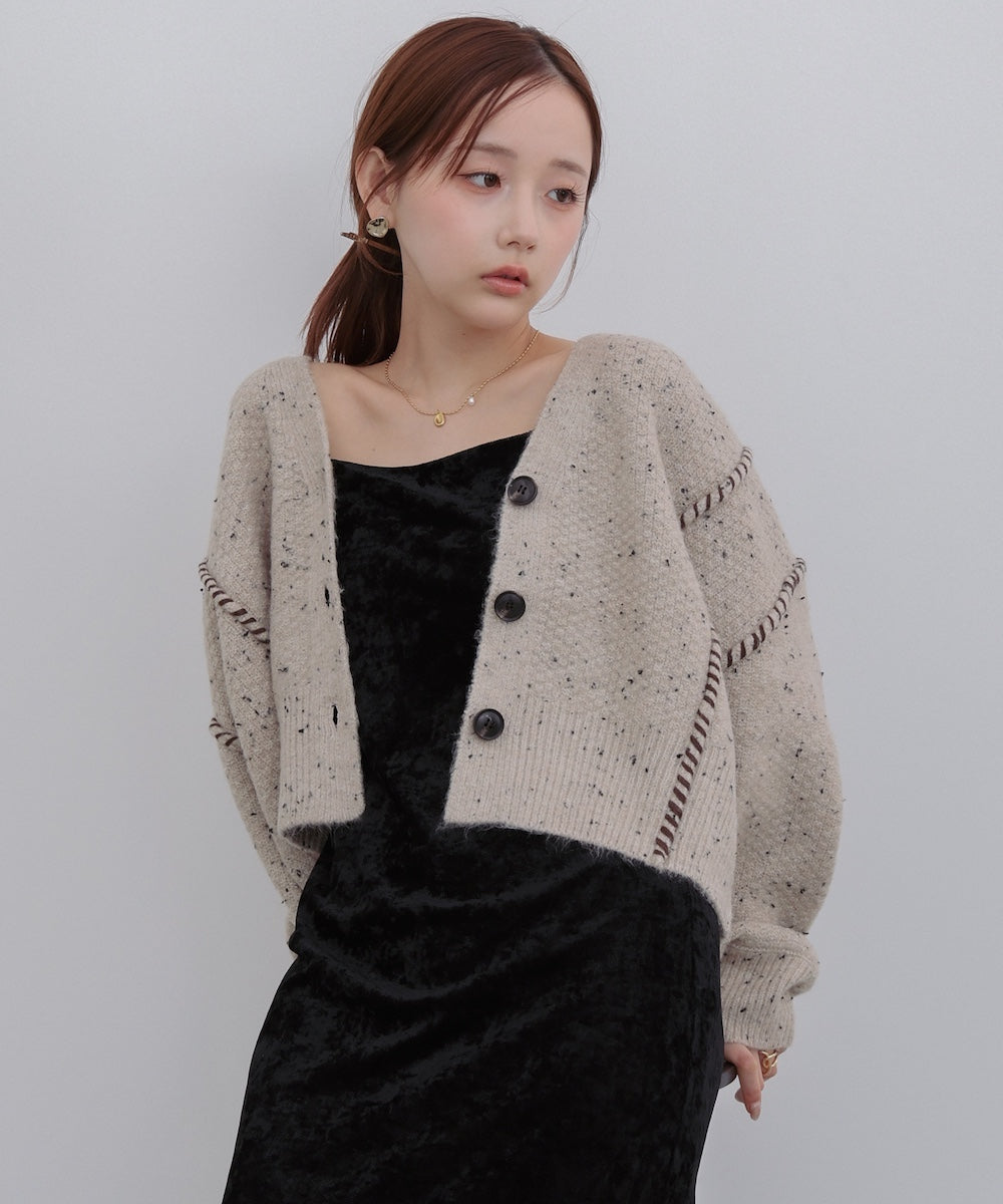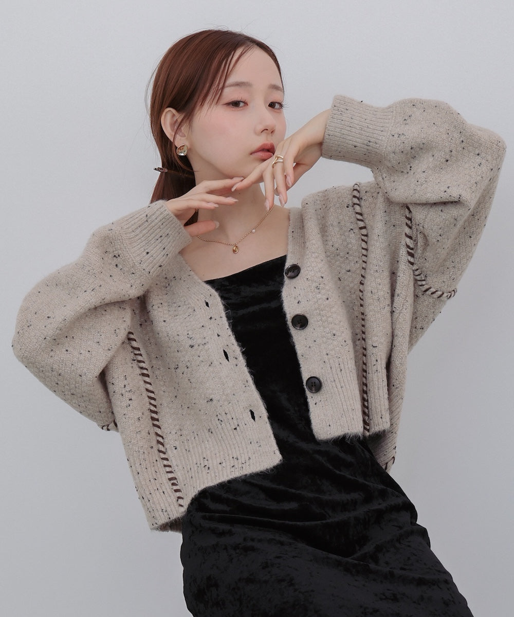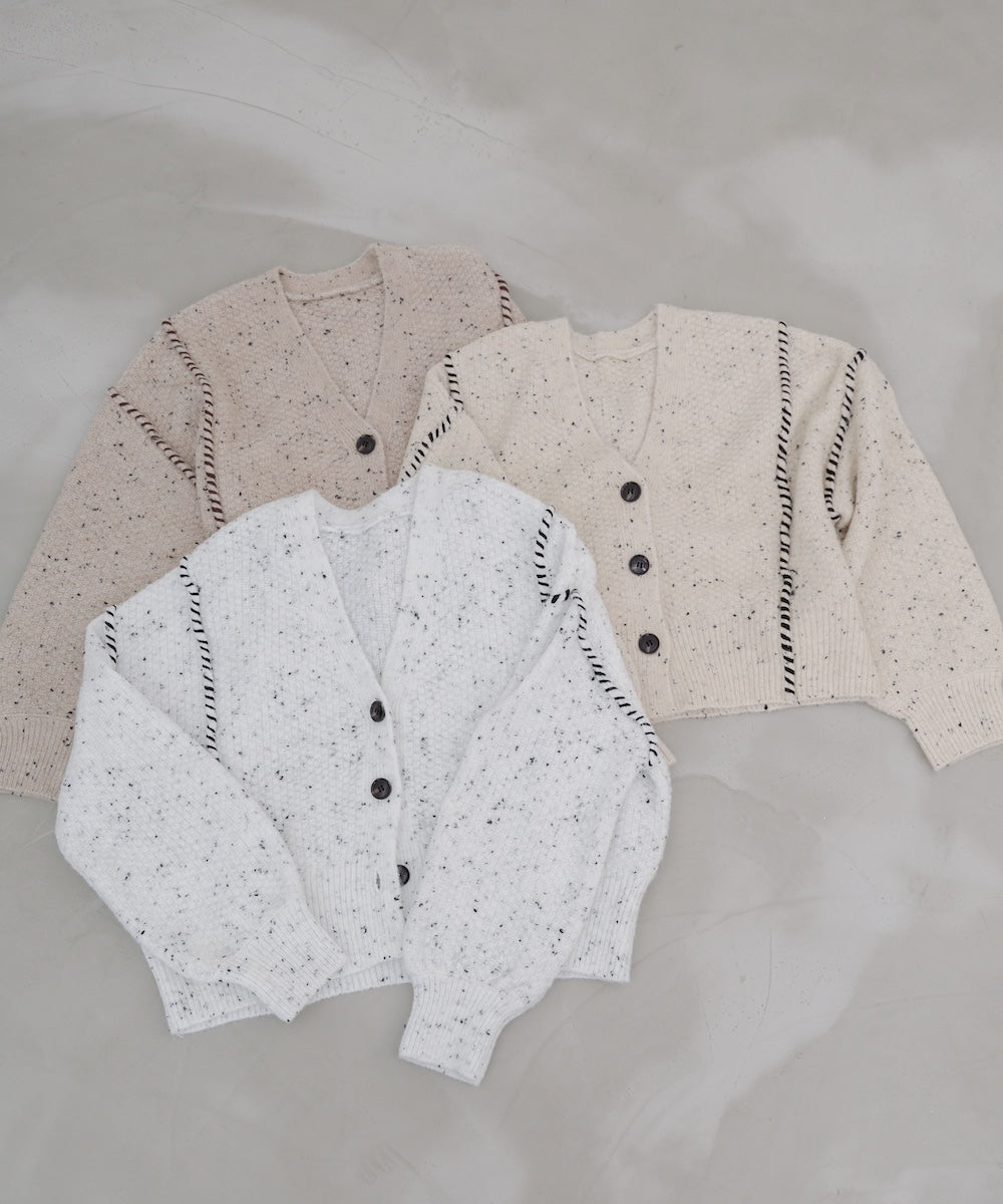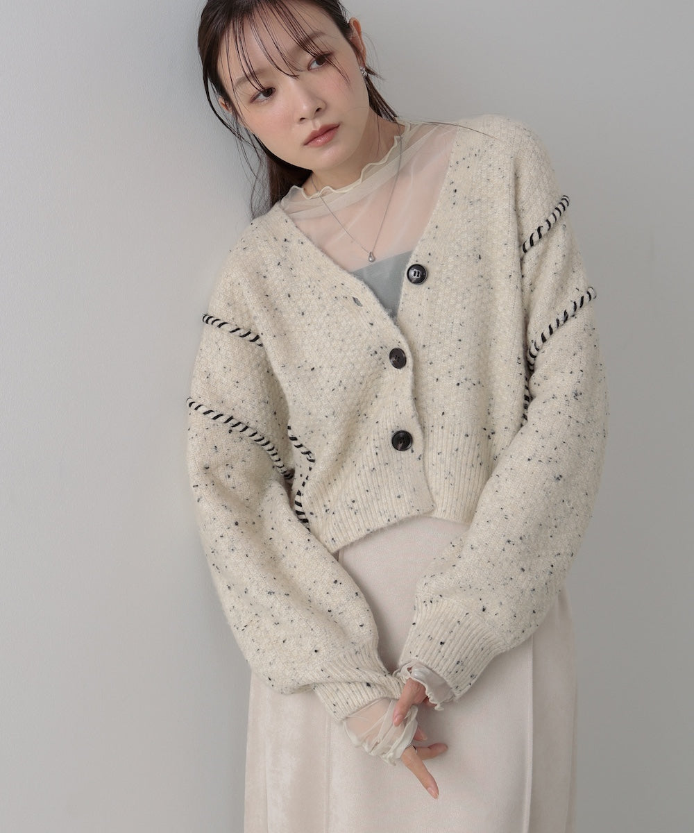 チョコチップ風ネップ ショート丈ニットカーディガン