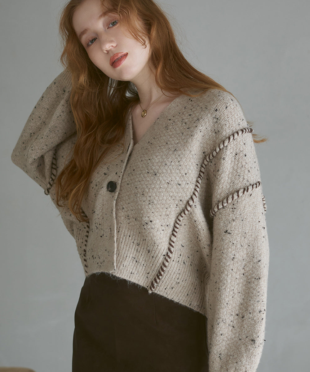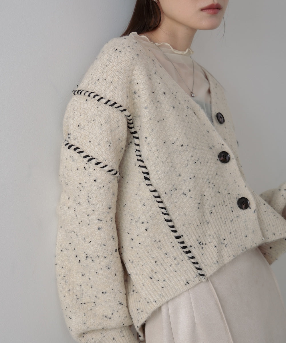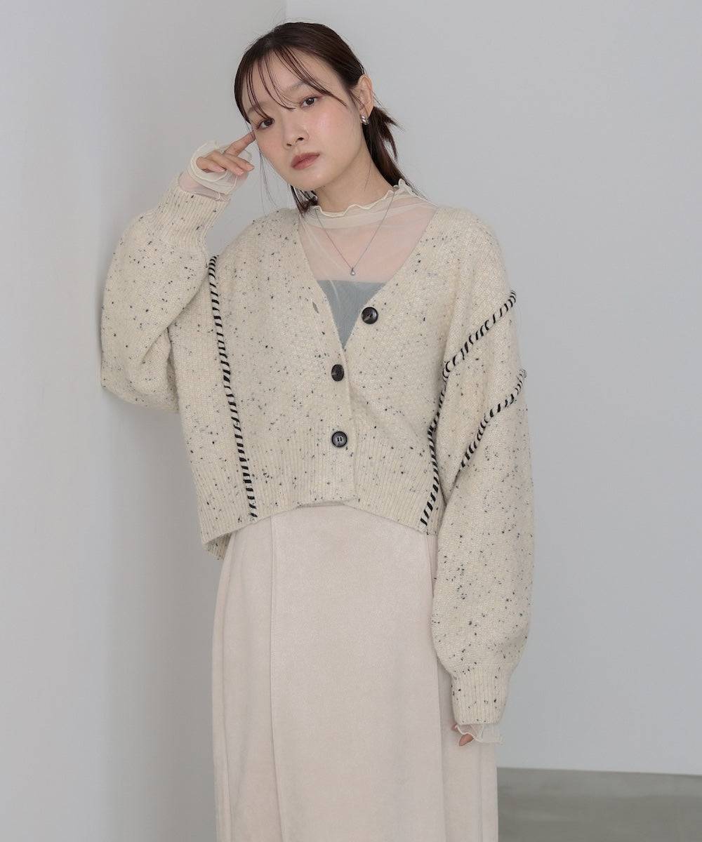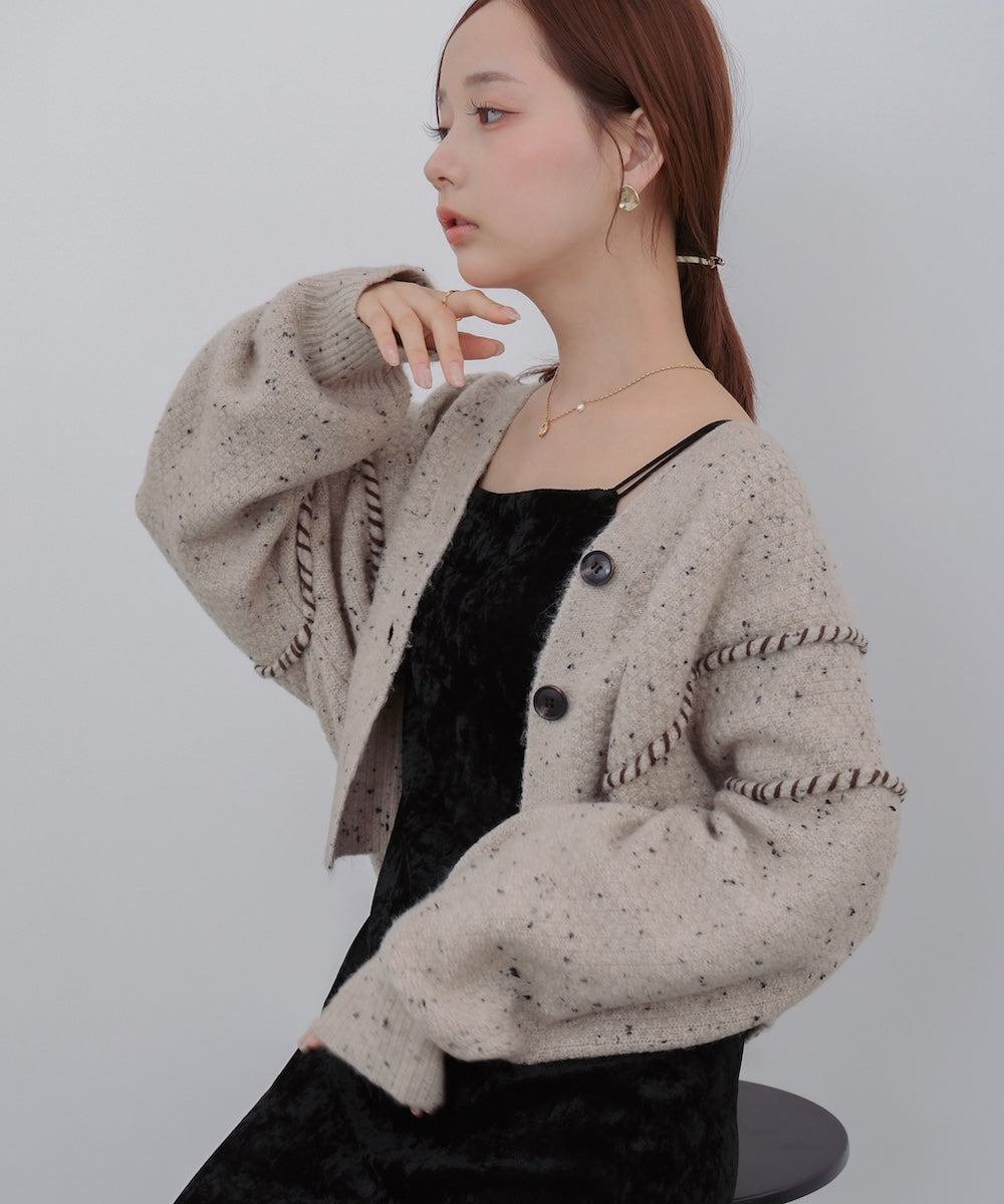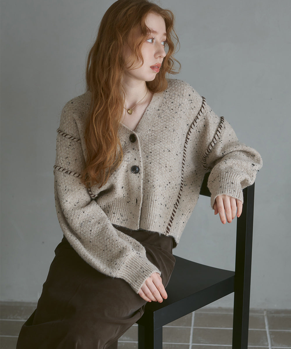チョコチップ風ネップ ショート丈ニットカーディガン