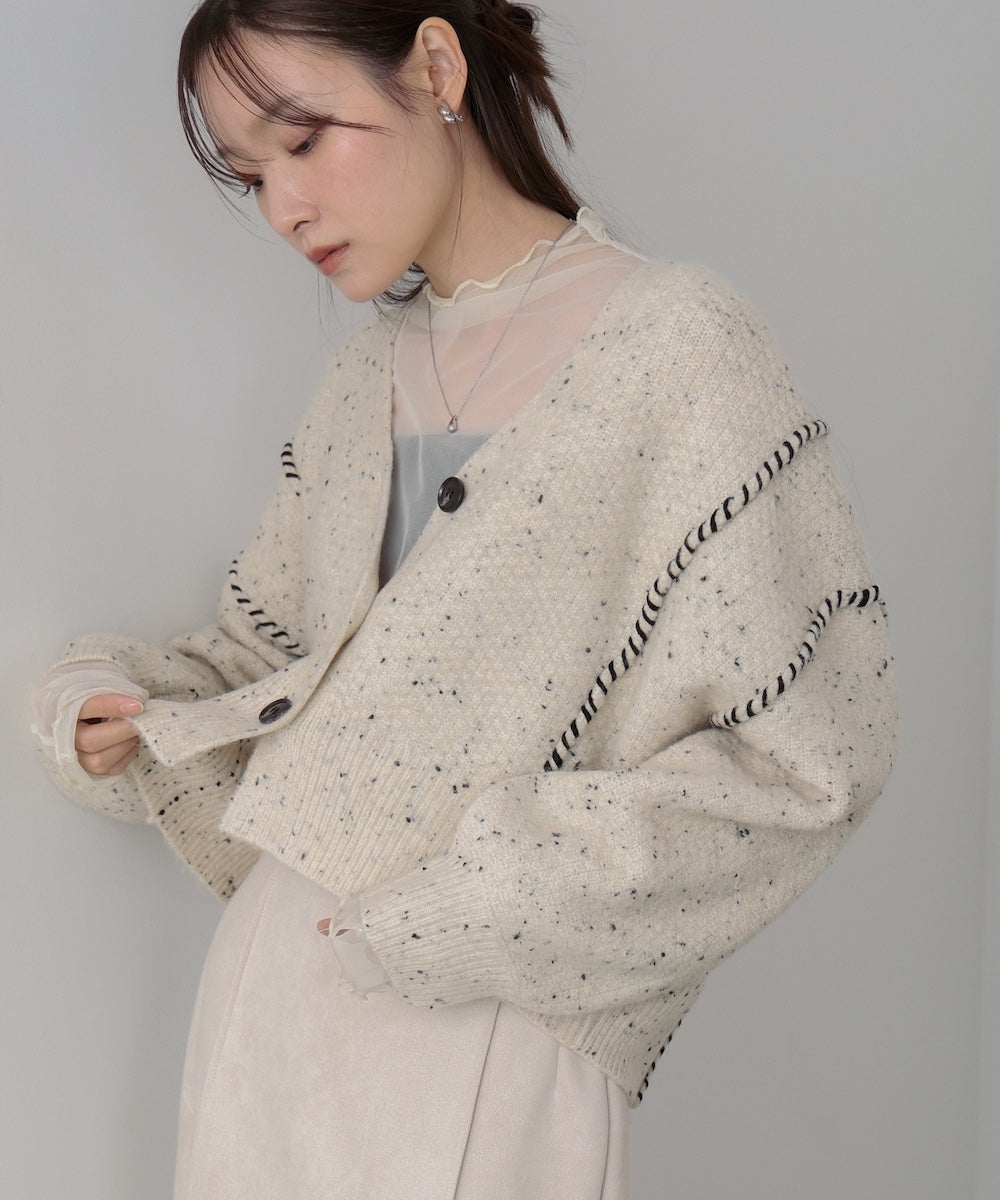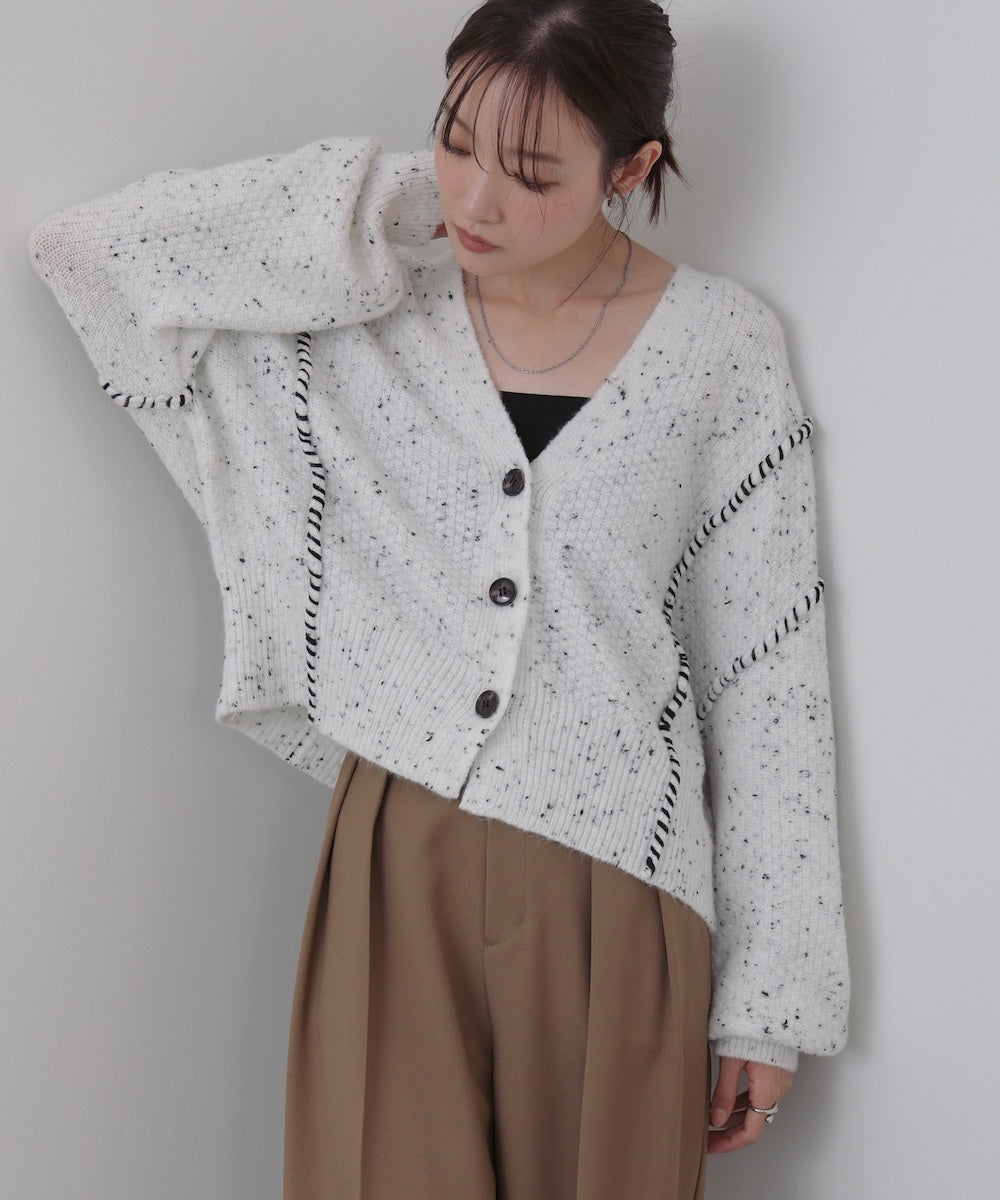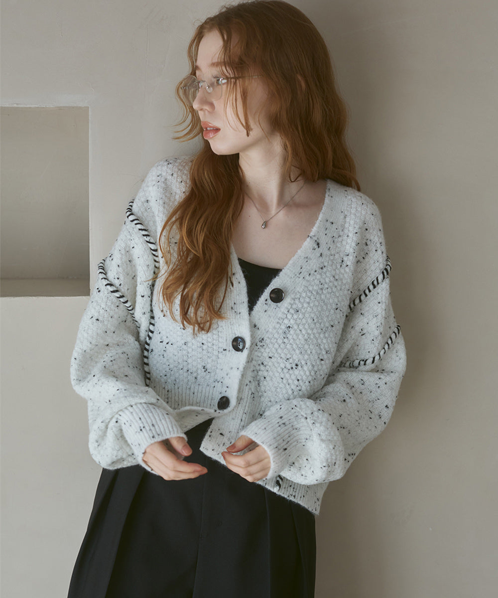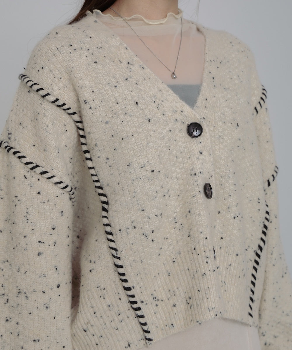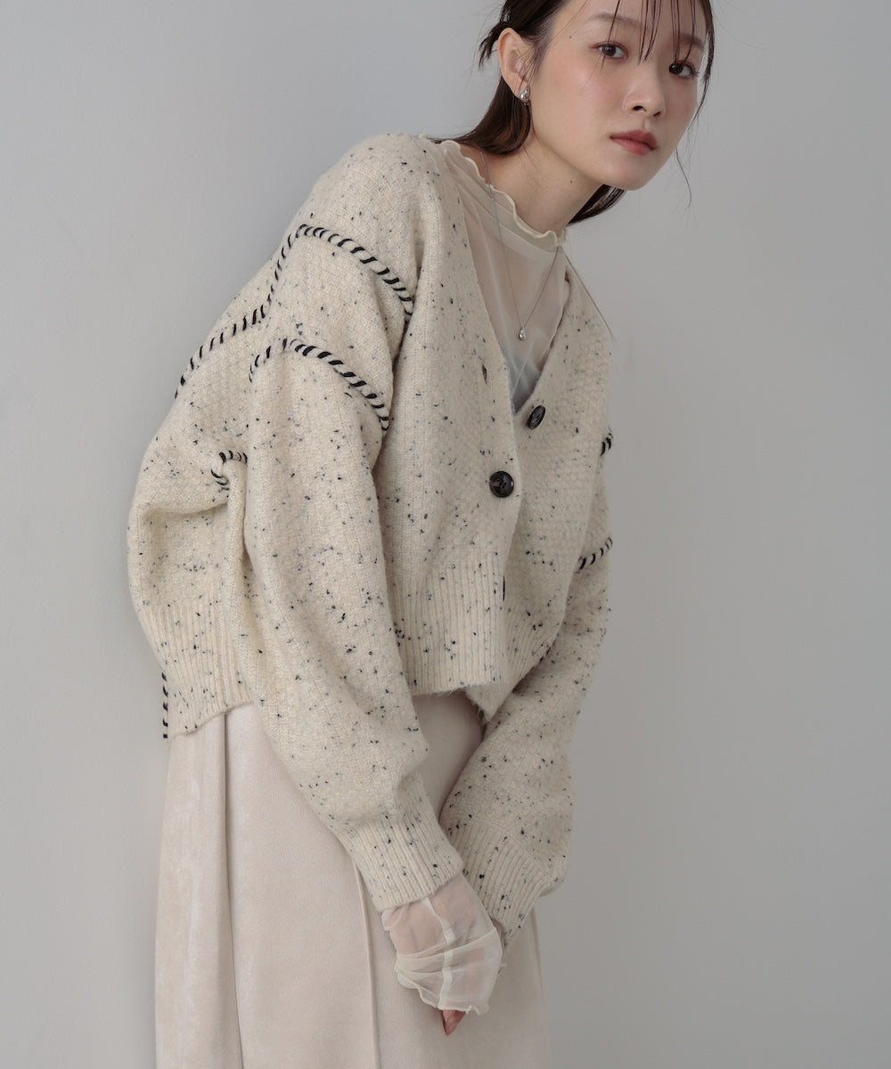チョコチップ風ネップ ショート丈ニットカーディガン