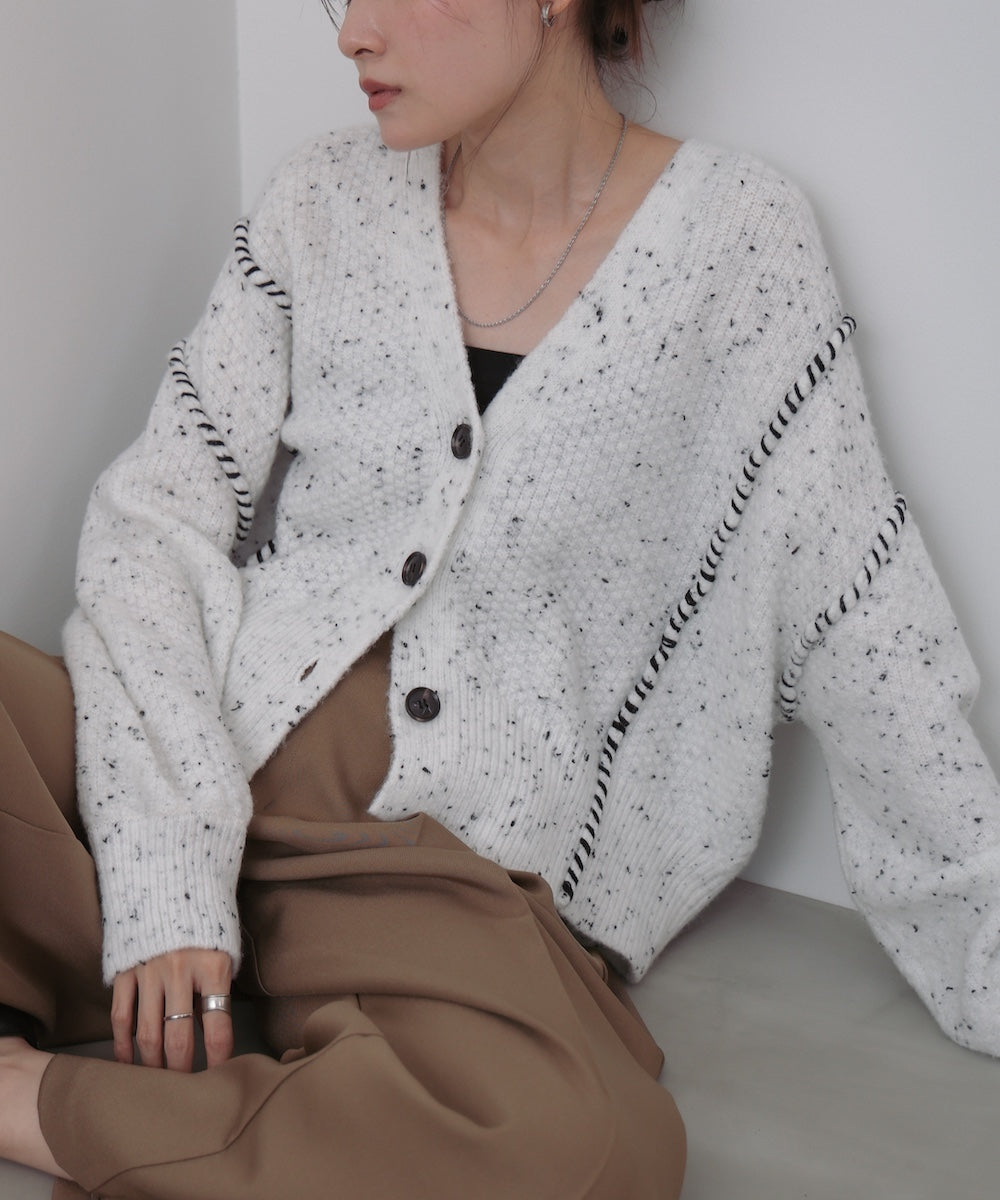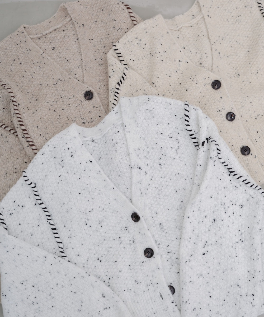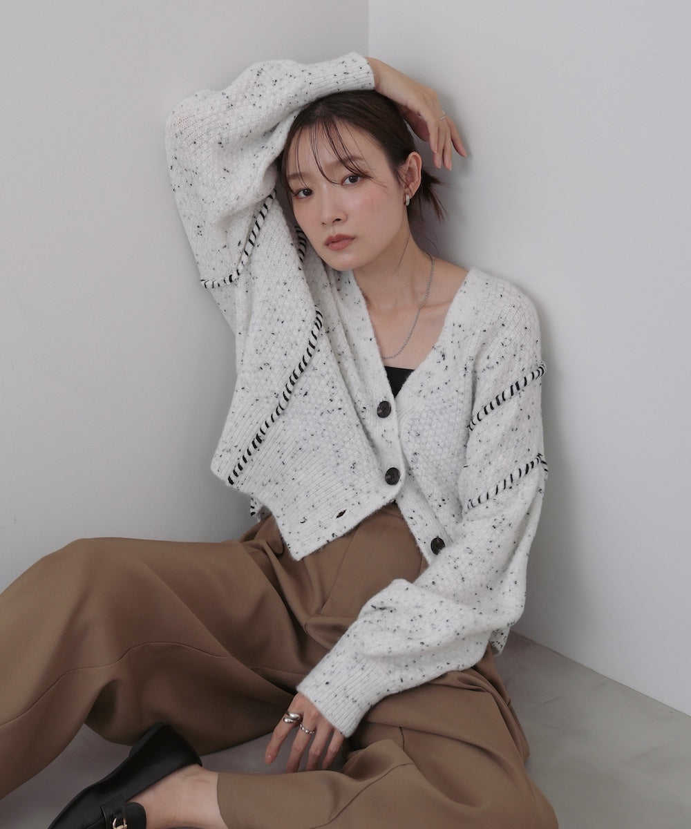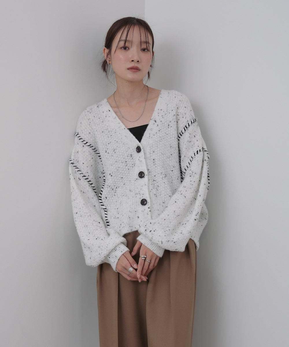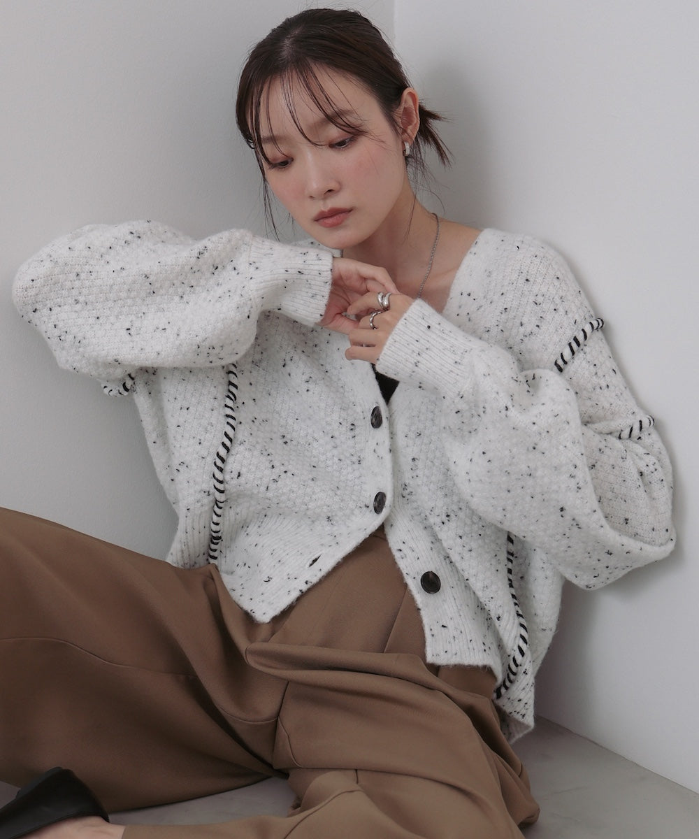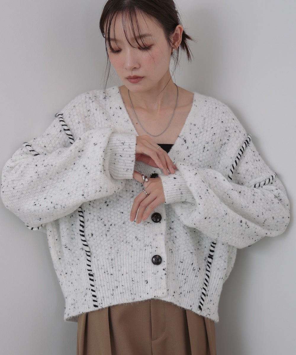 チョコチップ風ネップ ショート丈ニットカーディガン