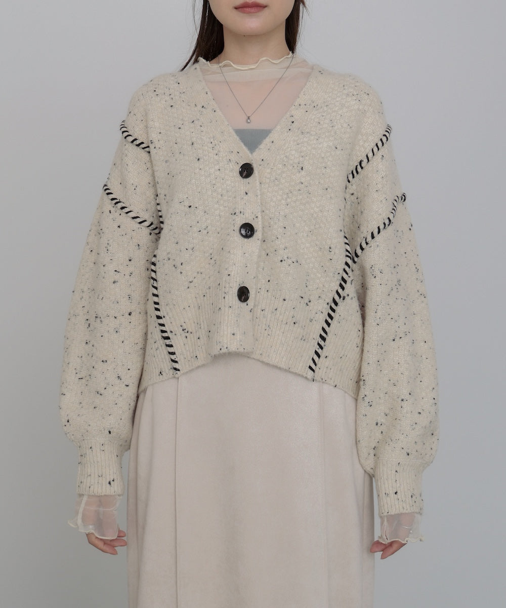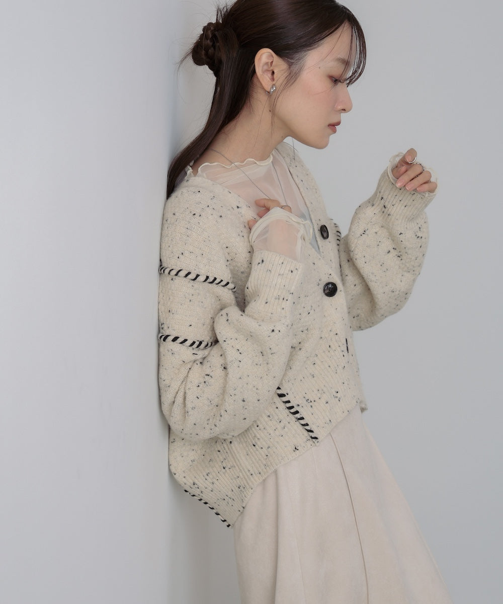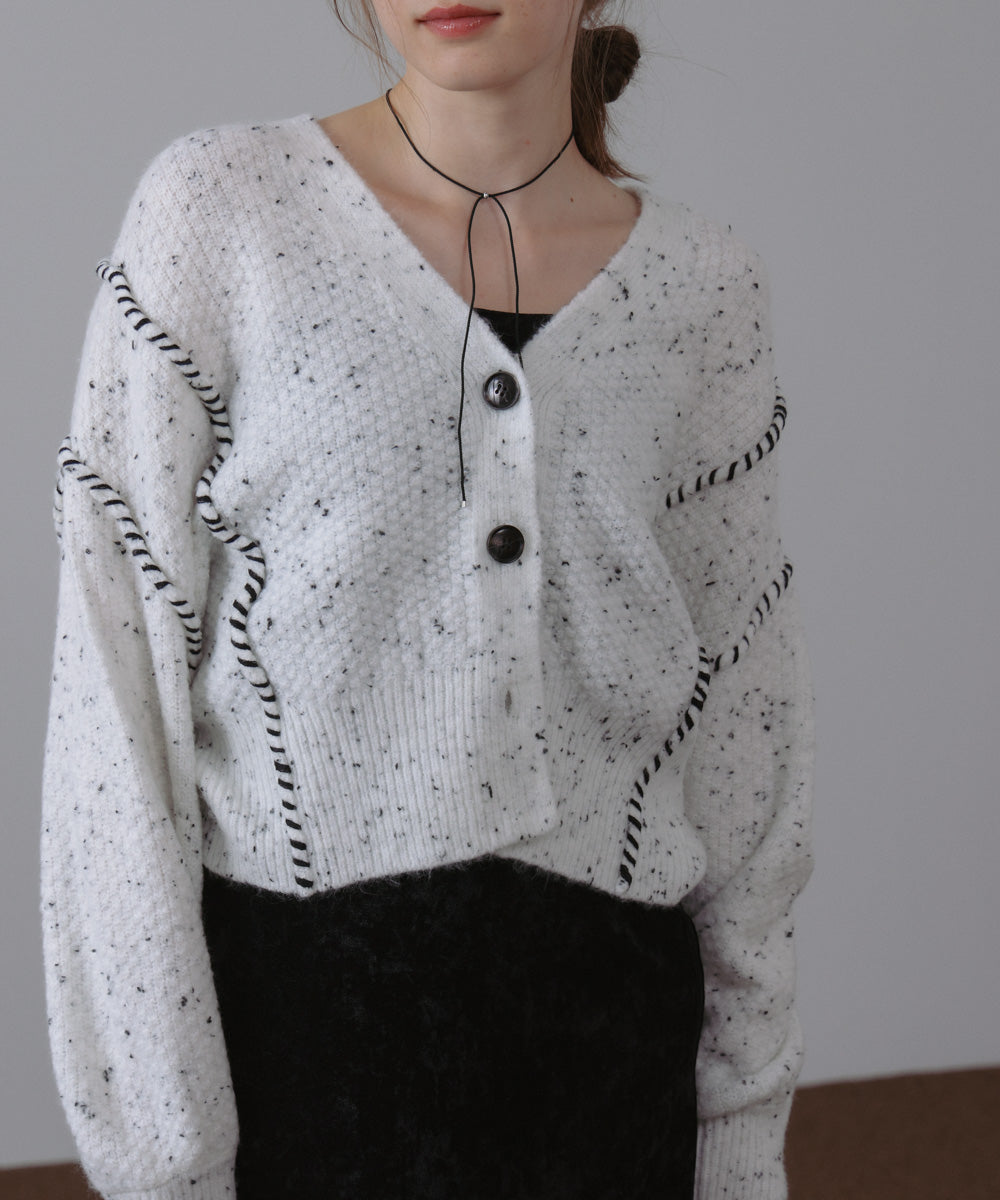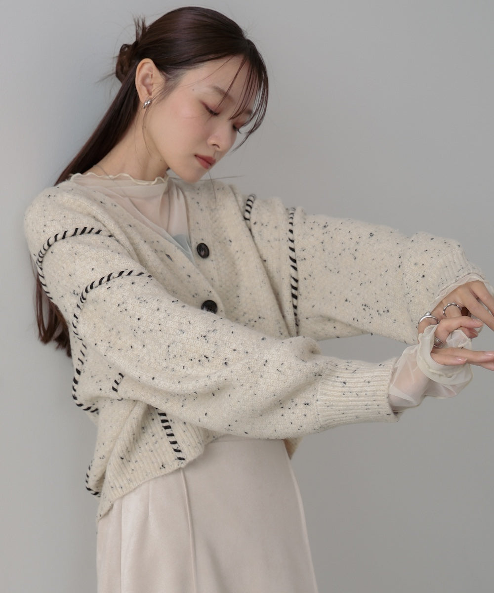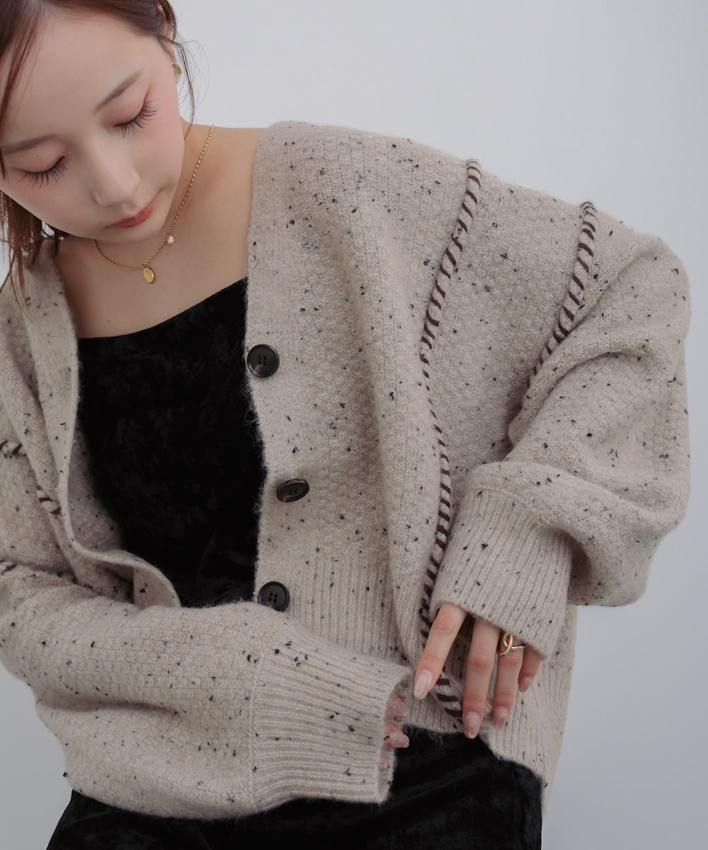 チョコチップ風ネップ ショート丈ニットカーディガン