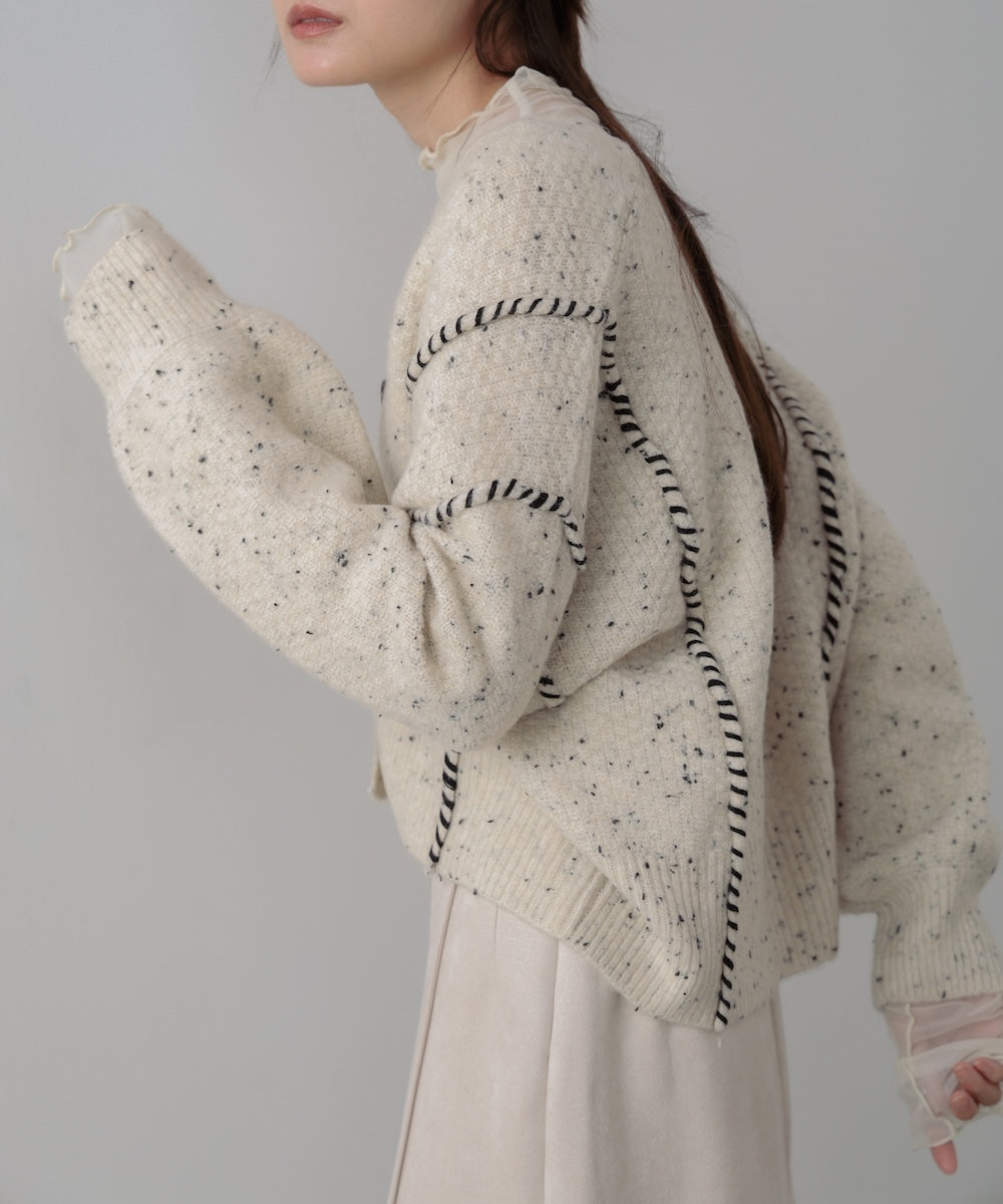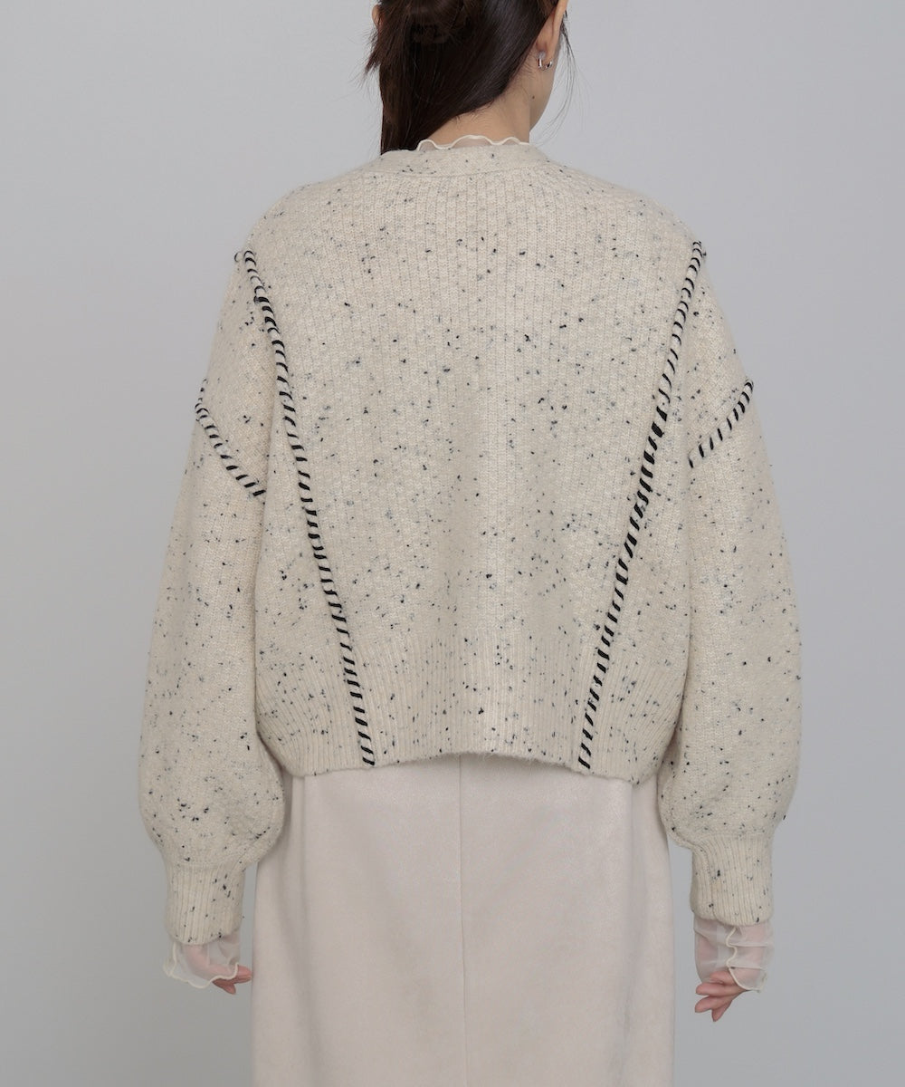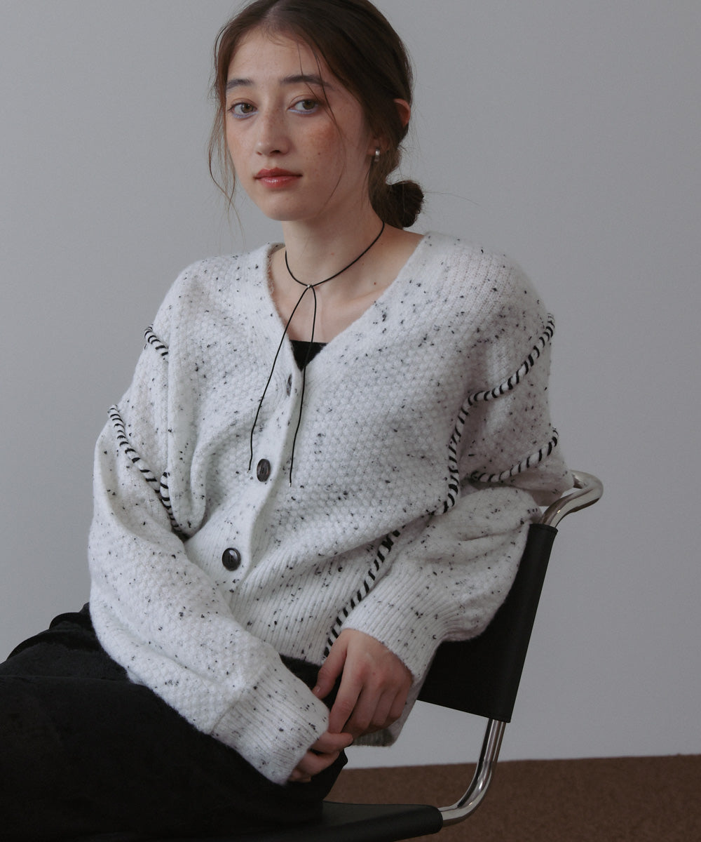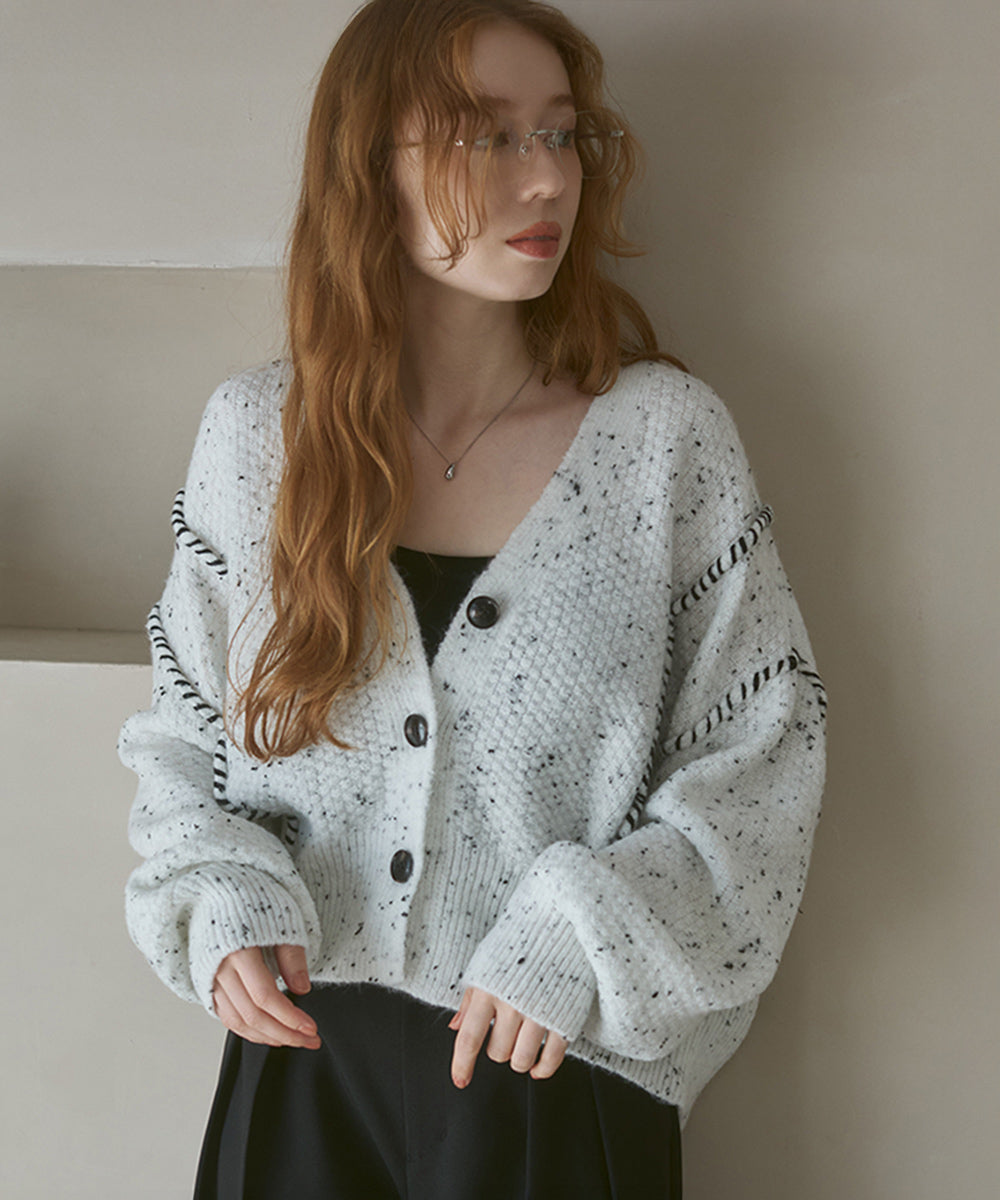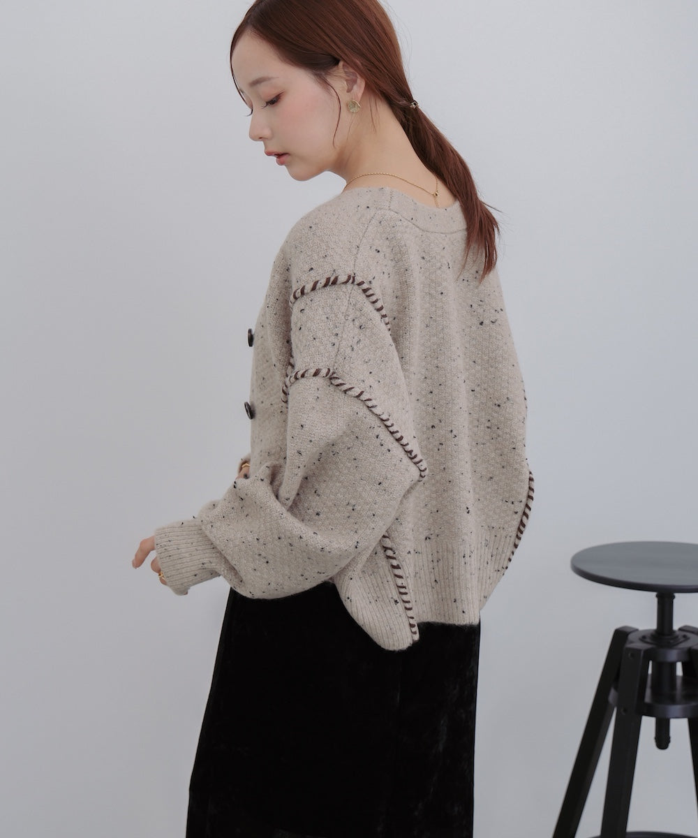 チョコチップ風ネップ ショート丈ニットカーディガン