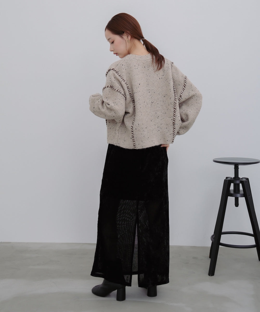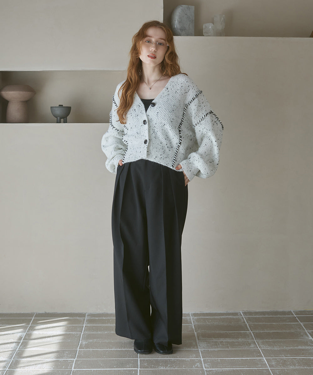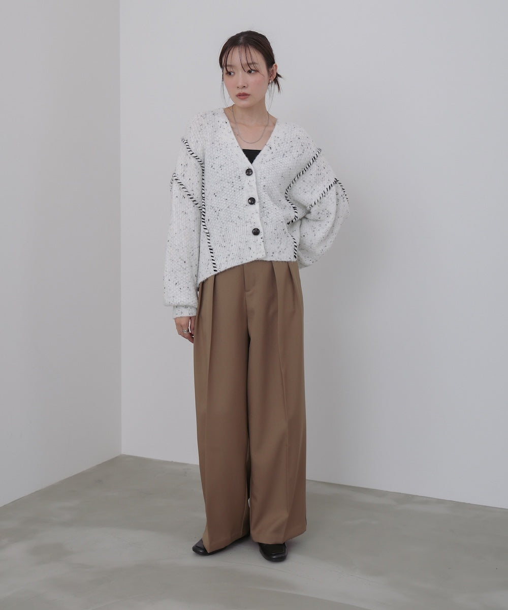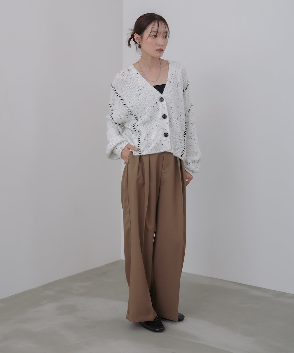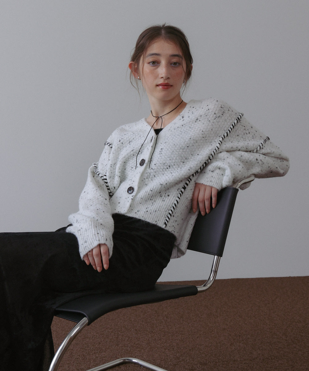 チョコチップ風ネップ ショート丈ニットカーディガン
