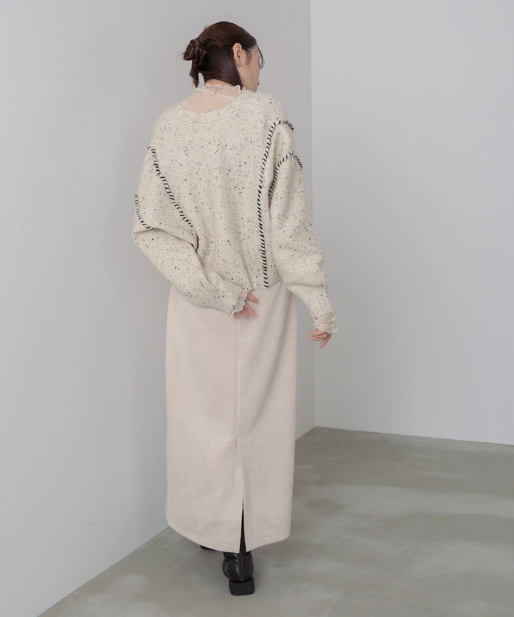 見た目にも暖かみのあるネップニットです。ポコポコした表面感が特徴的です。