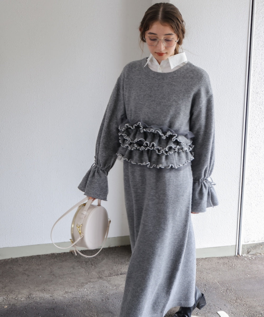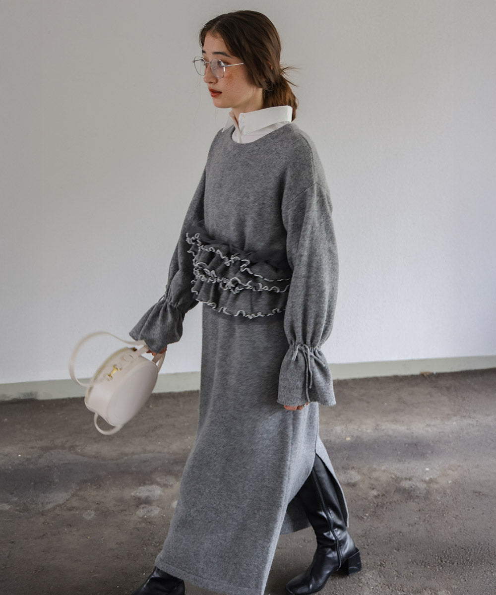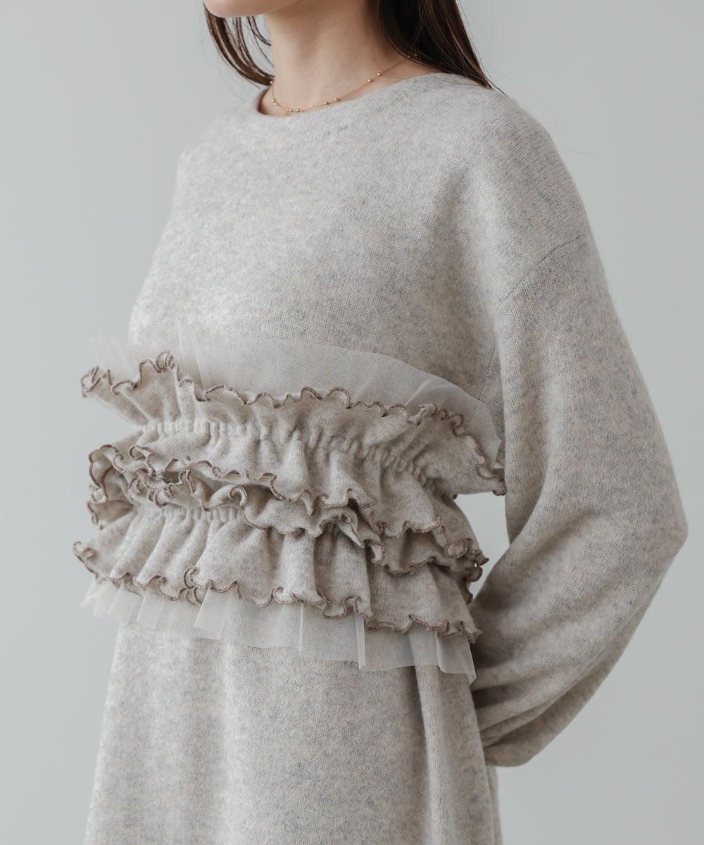 【S・M・Lサイズ】アシンメトリーフリルニットワンピース