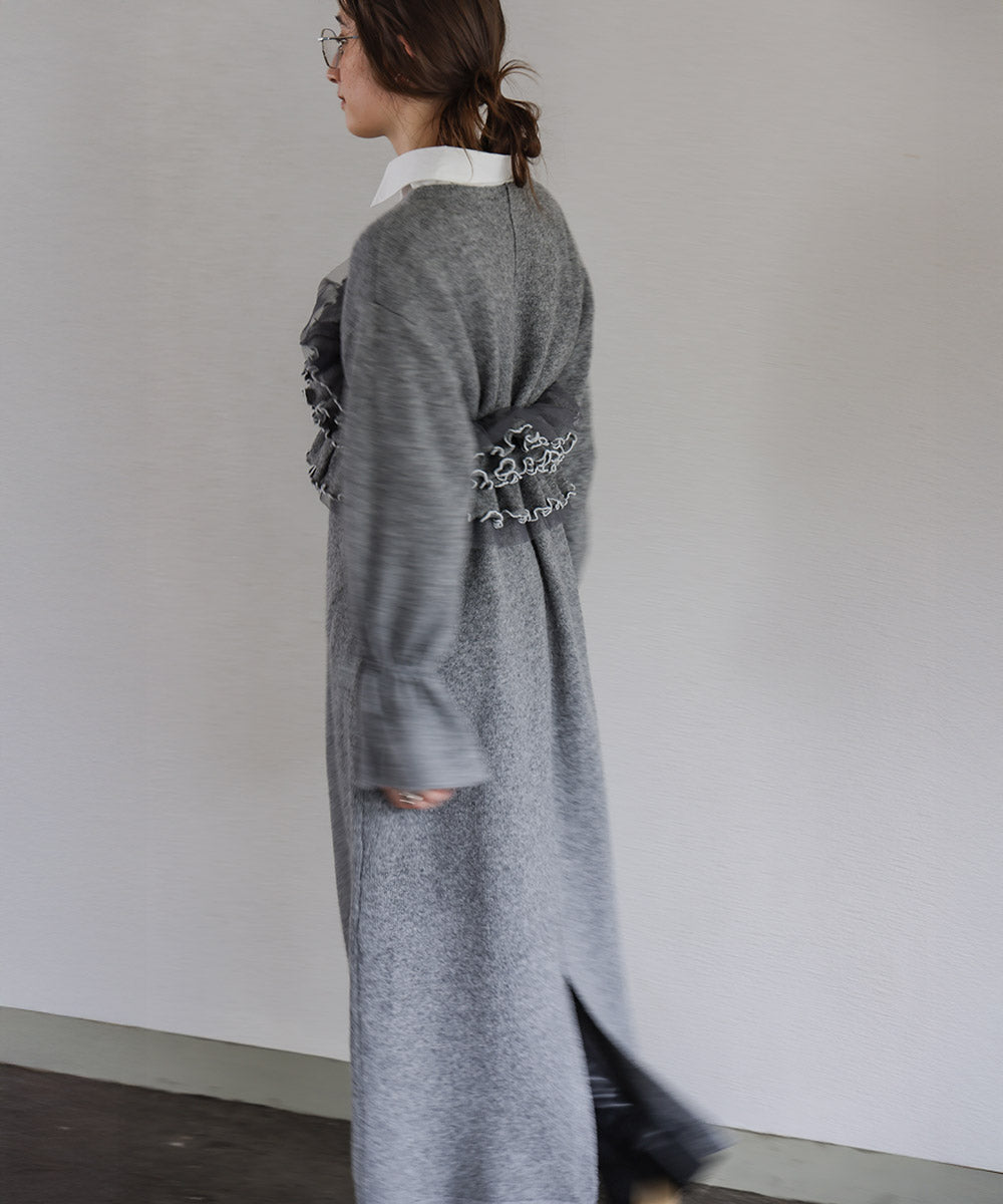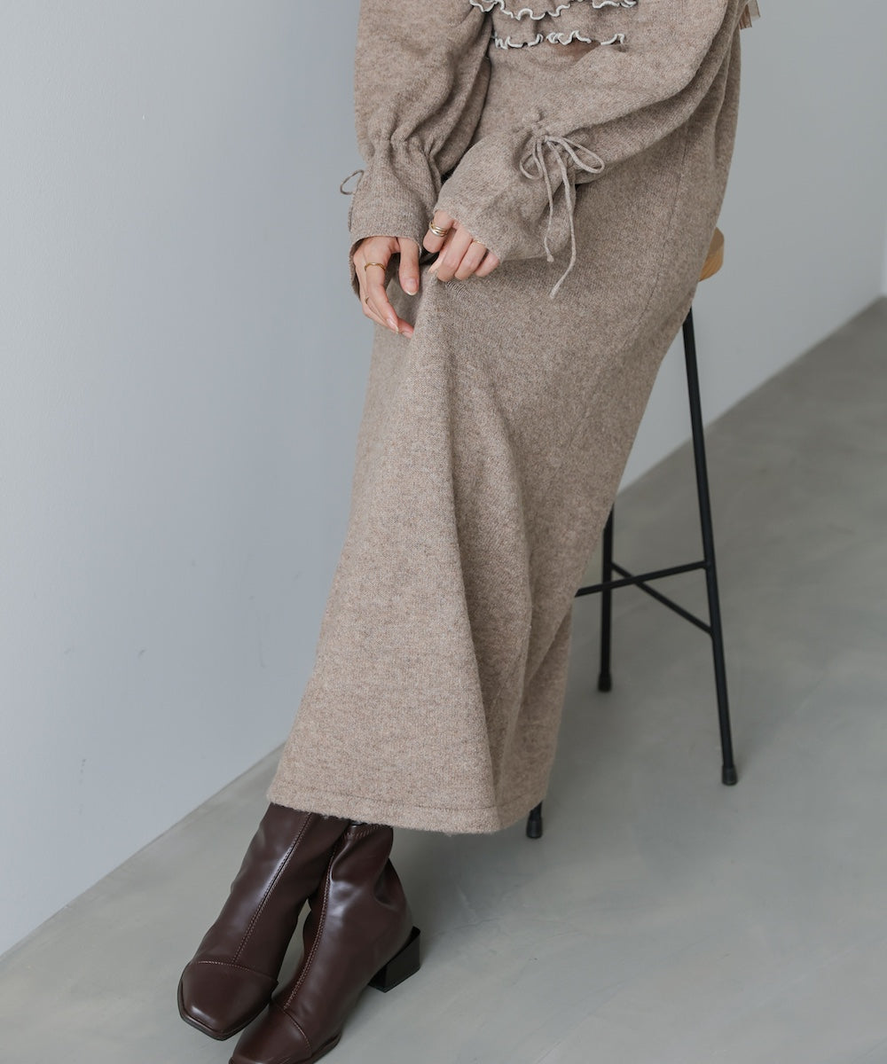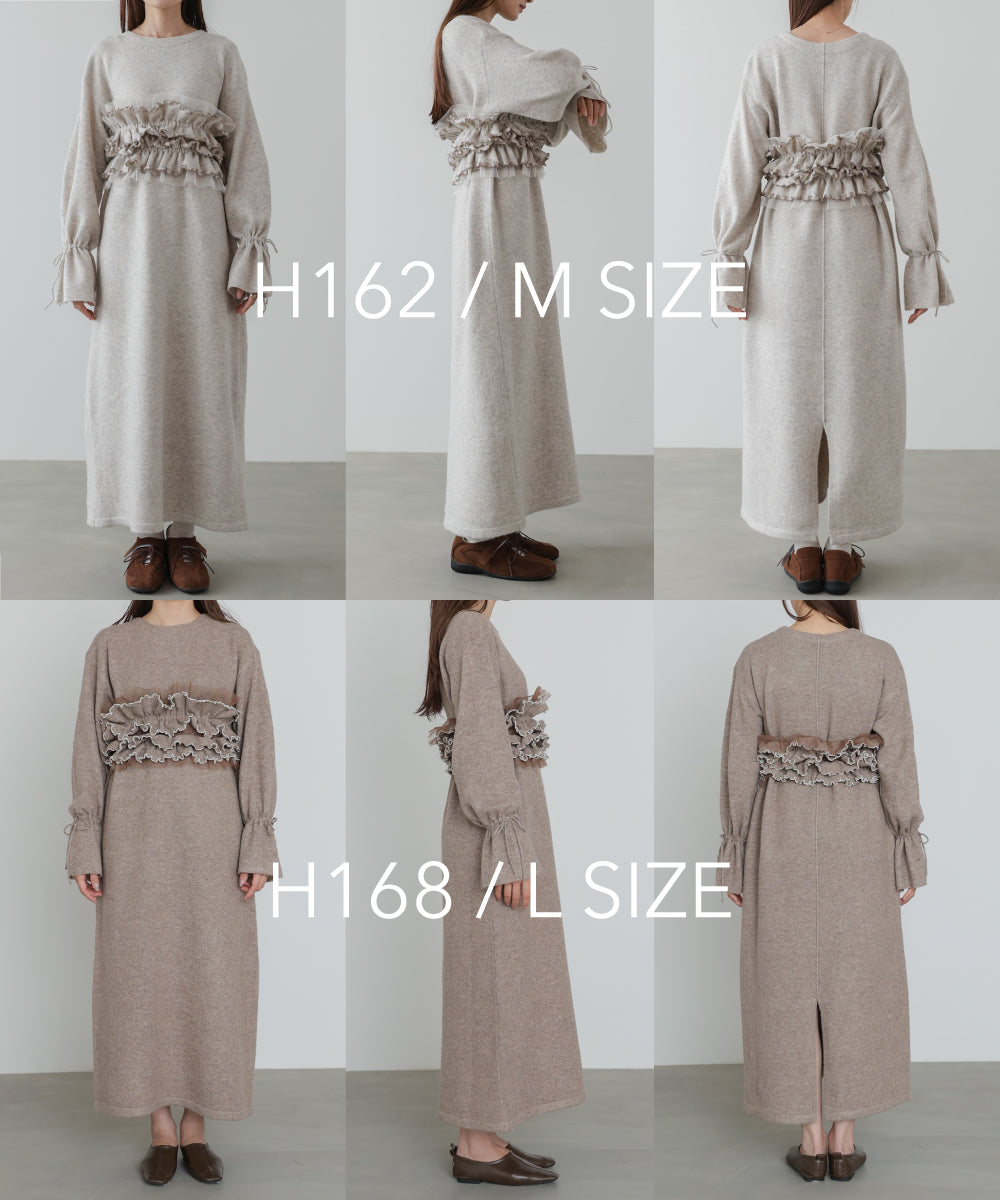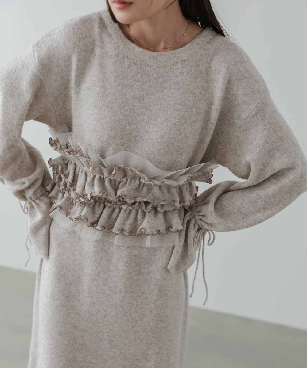 【S・M・Lサイズ】アシンメトリーフリルニットワンピース
