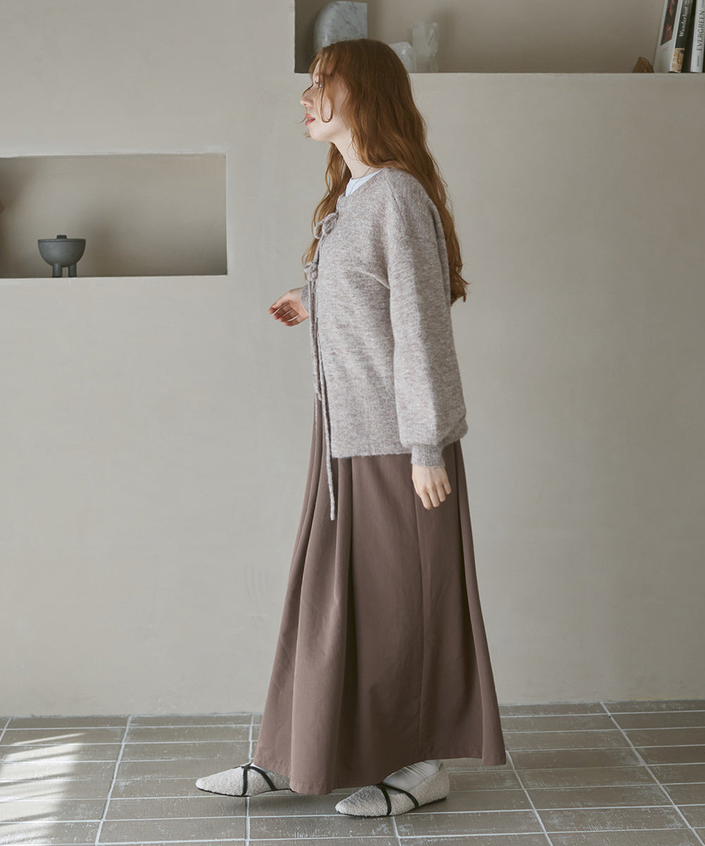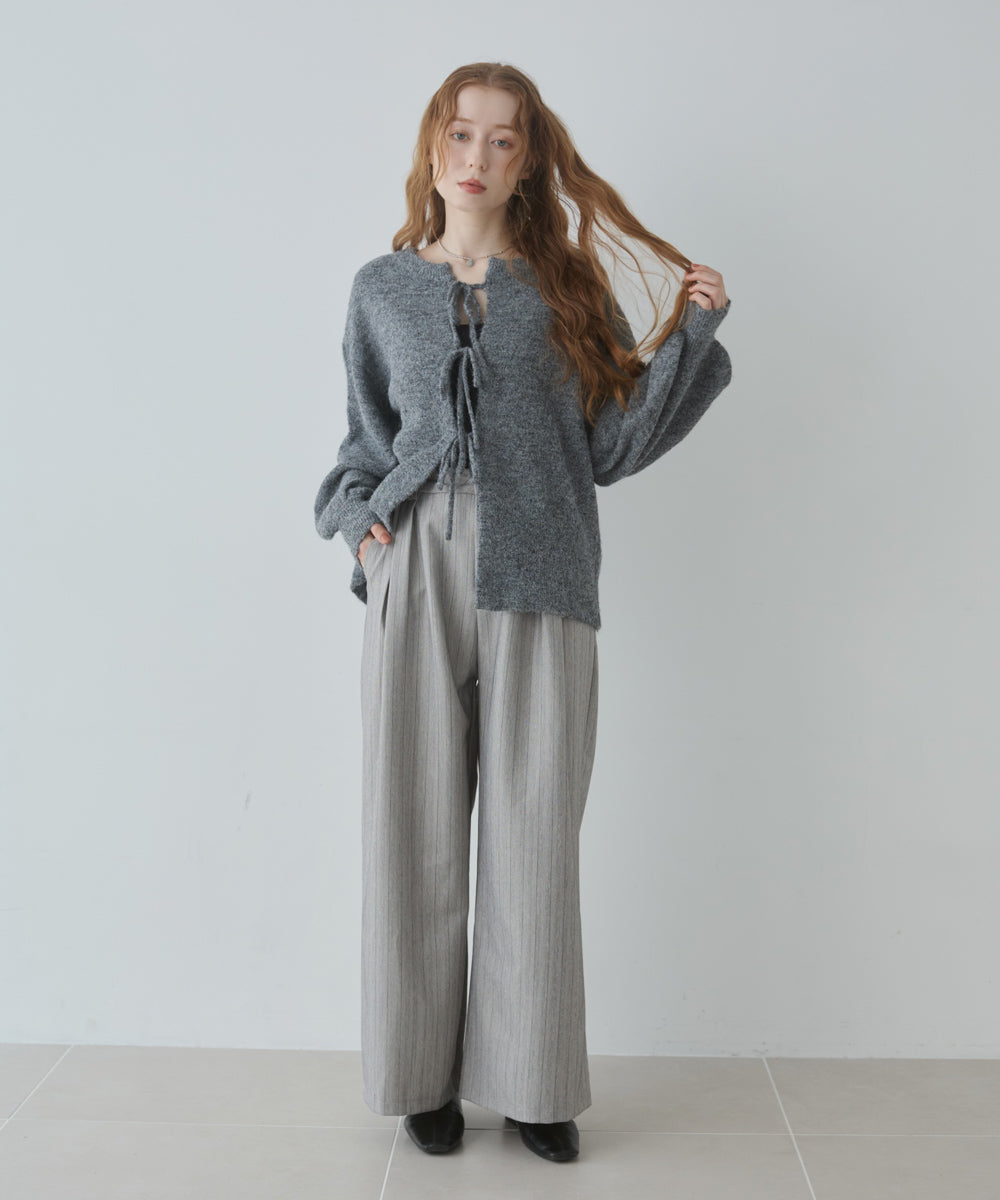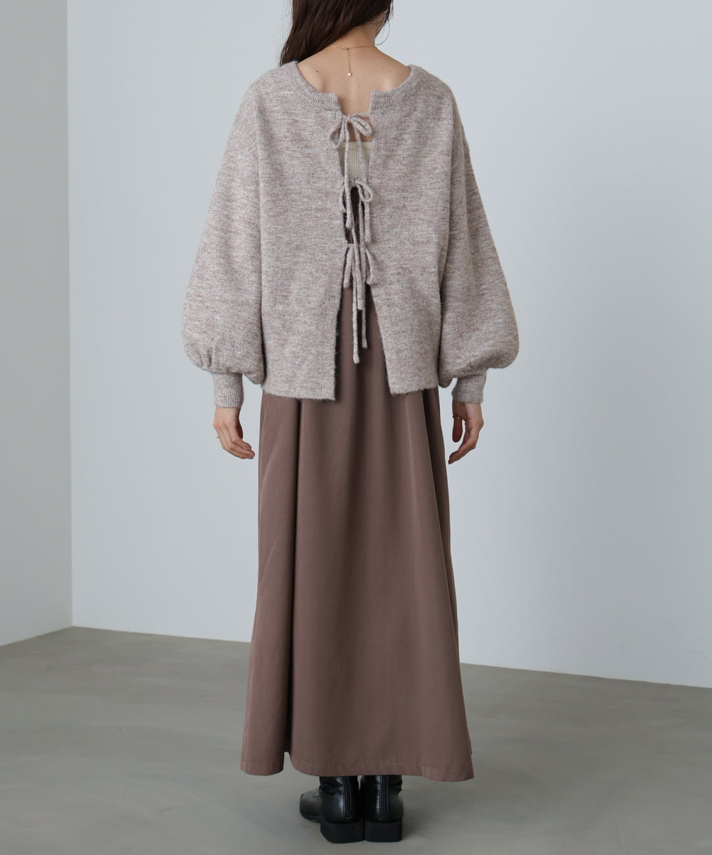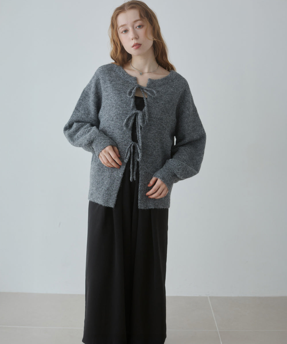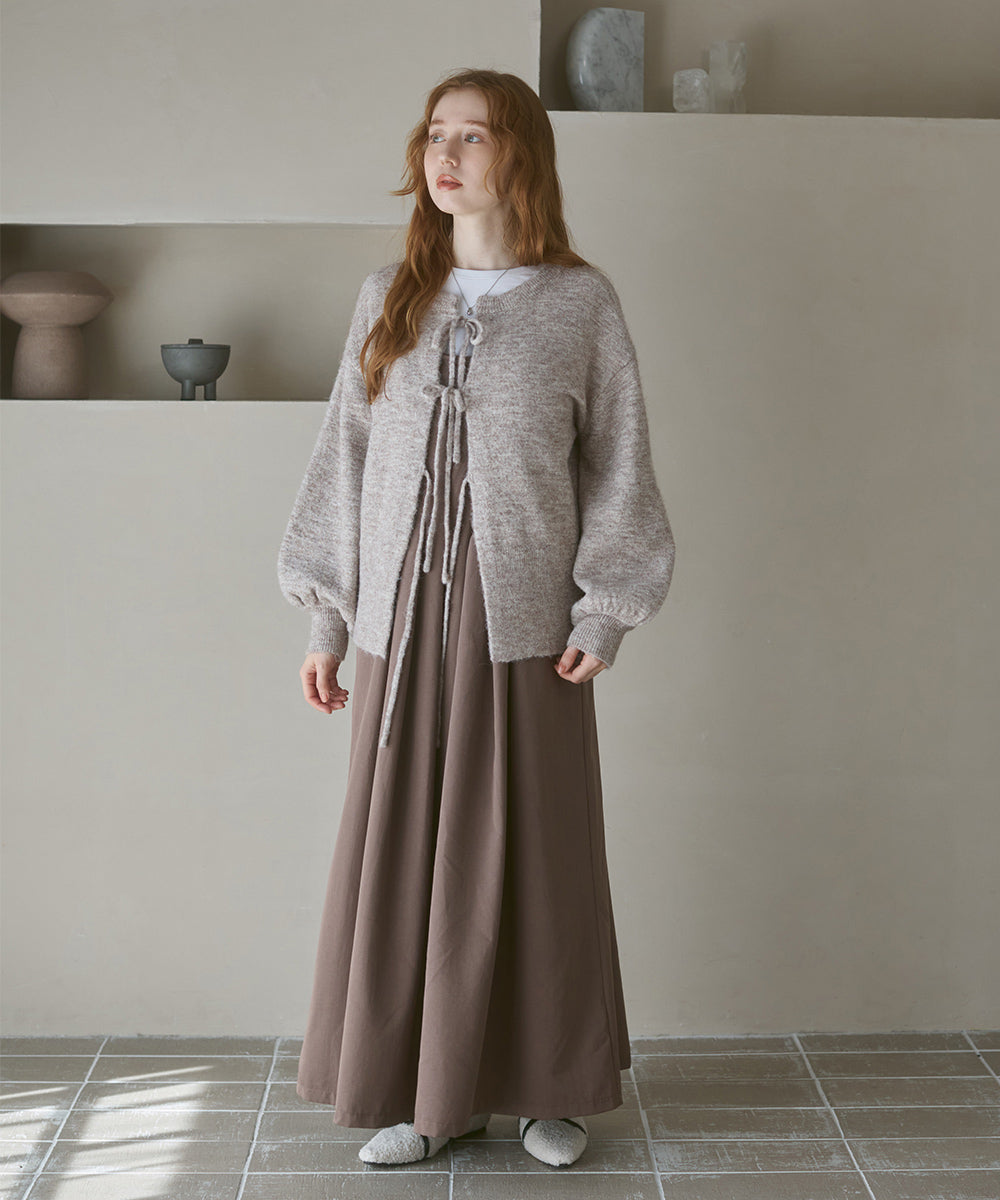 ニットトップスとキャミワンピがセットアイテムで登場しました!ニットトップスはトレンドのリボンがついていてカーディガンにもなる万能アイテムです。キャミワンピースはフレアタイプでしっかりと落ち感がありながらもきれいに広がるシルエットになっています。セットアイテムですが別々でもお使いいただけます♪
