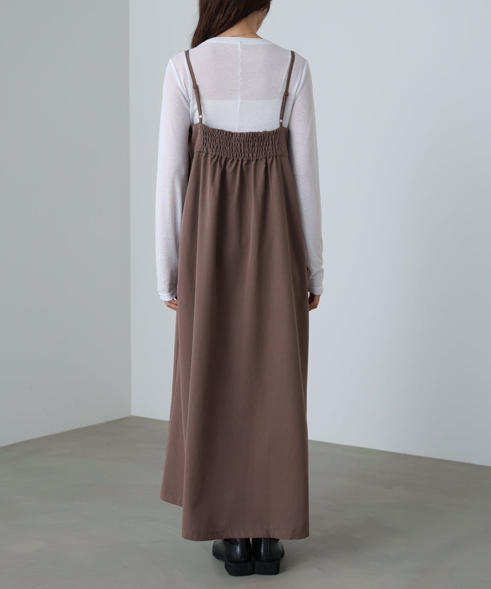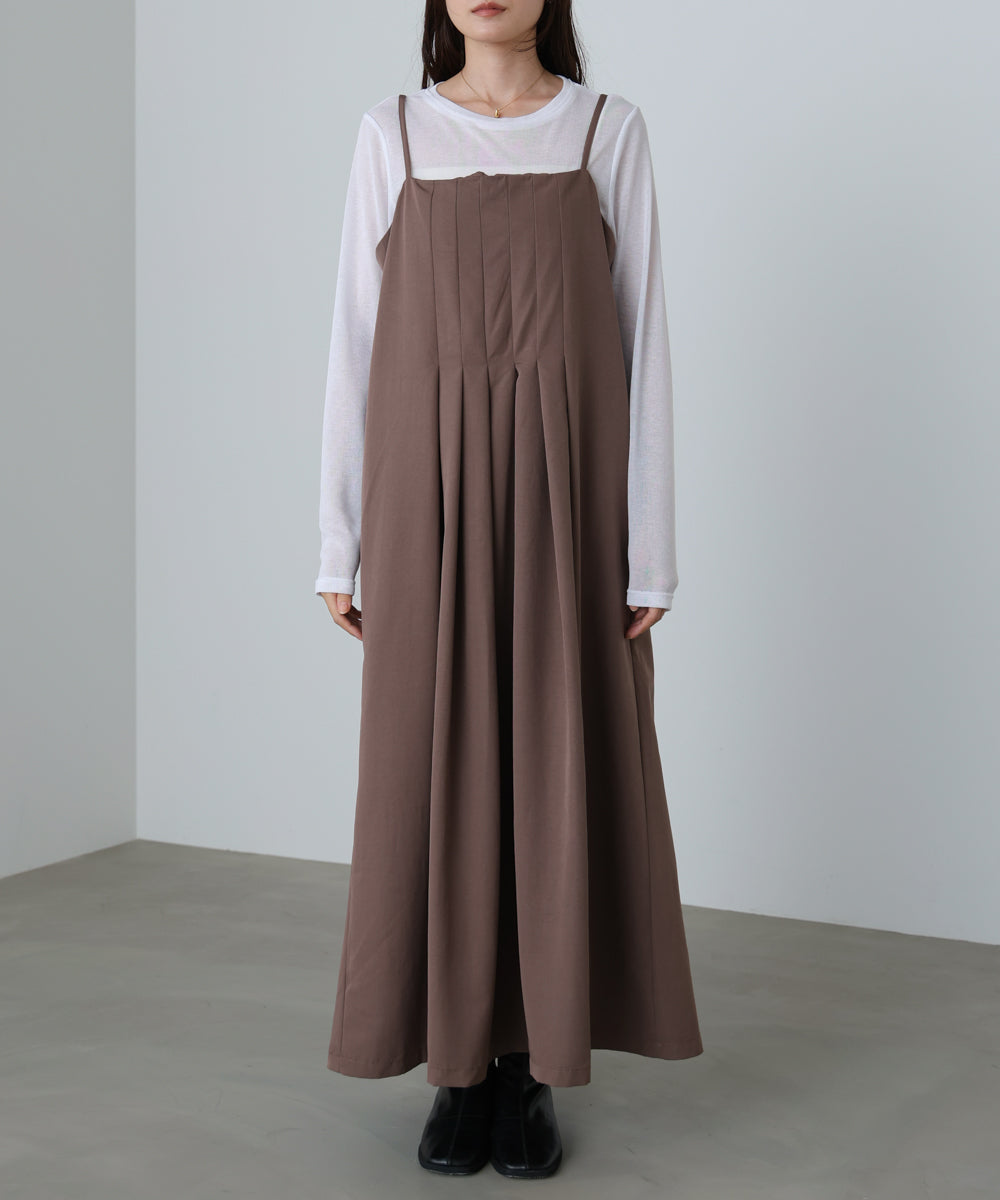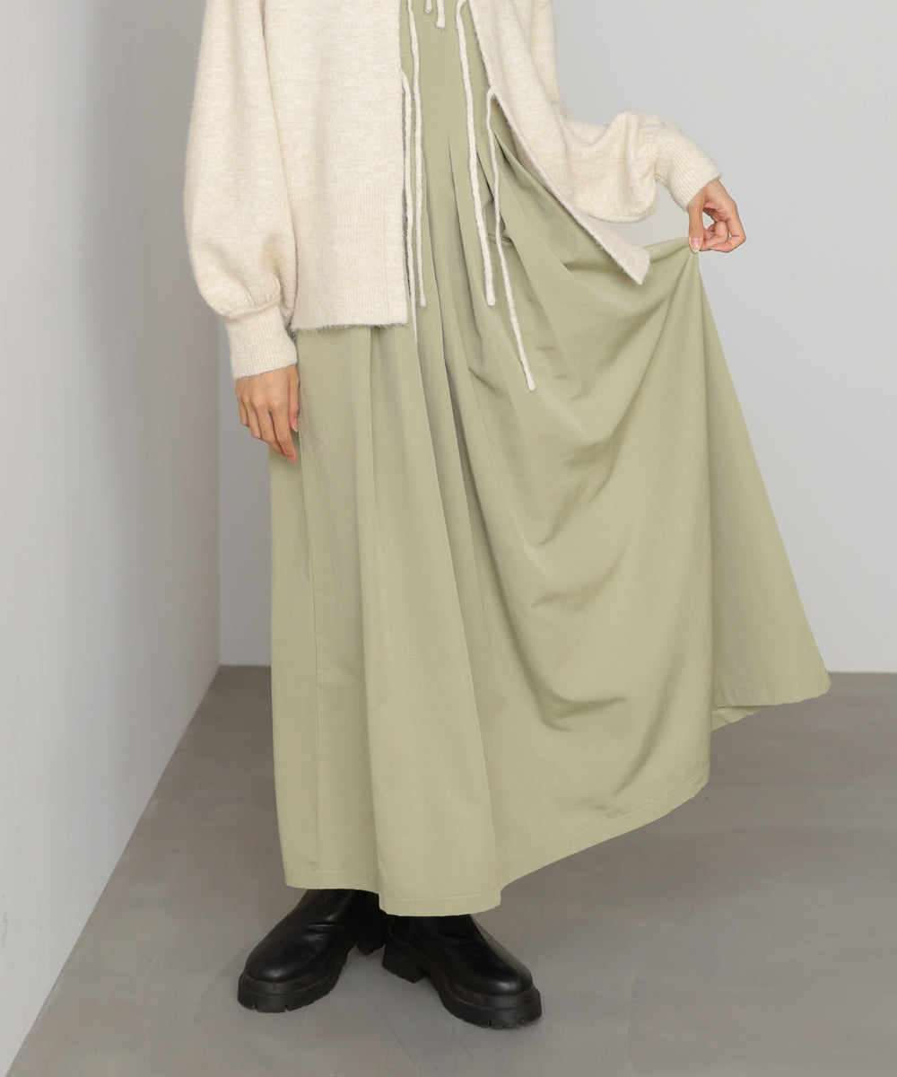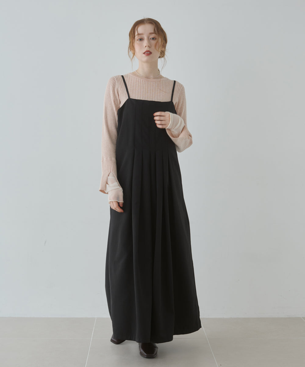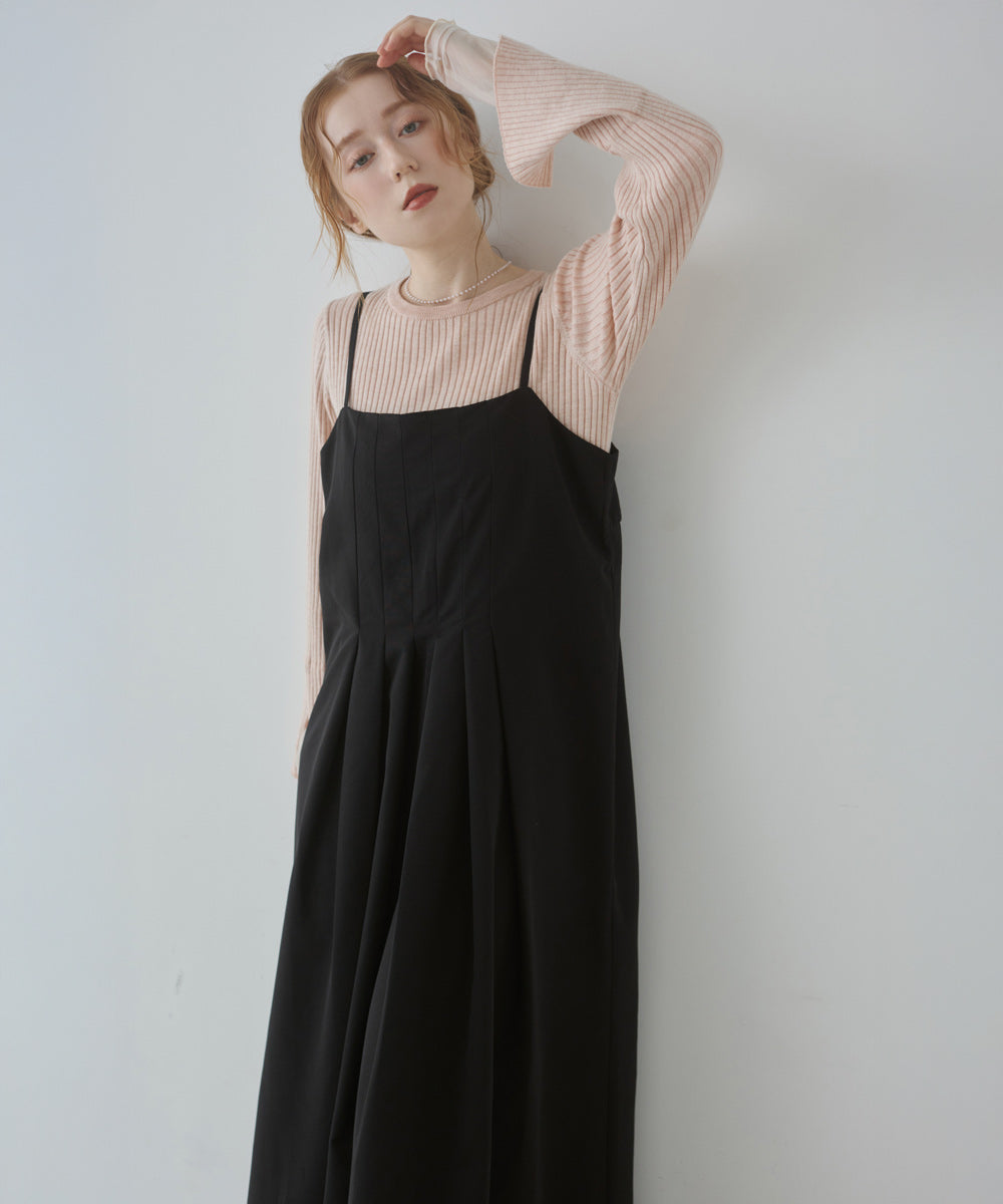【セットアイテム/選べるサイズ展開】前後2WAYニットトップス+タックキャミワンピース