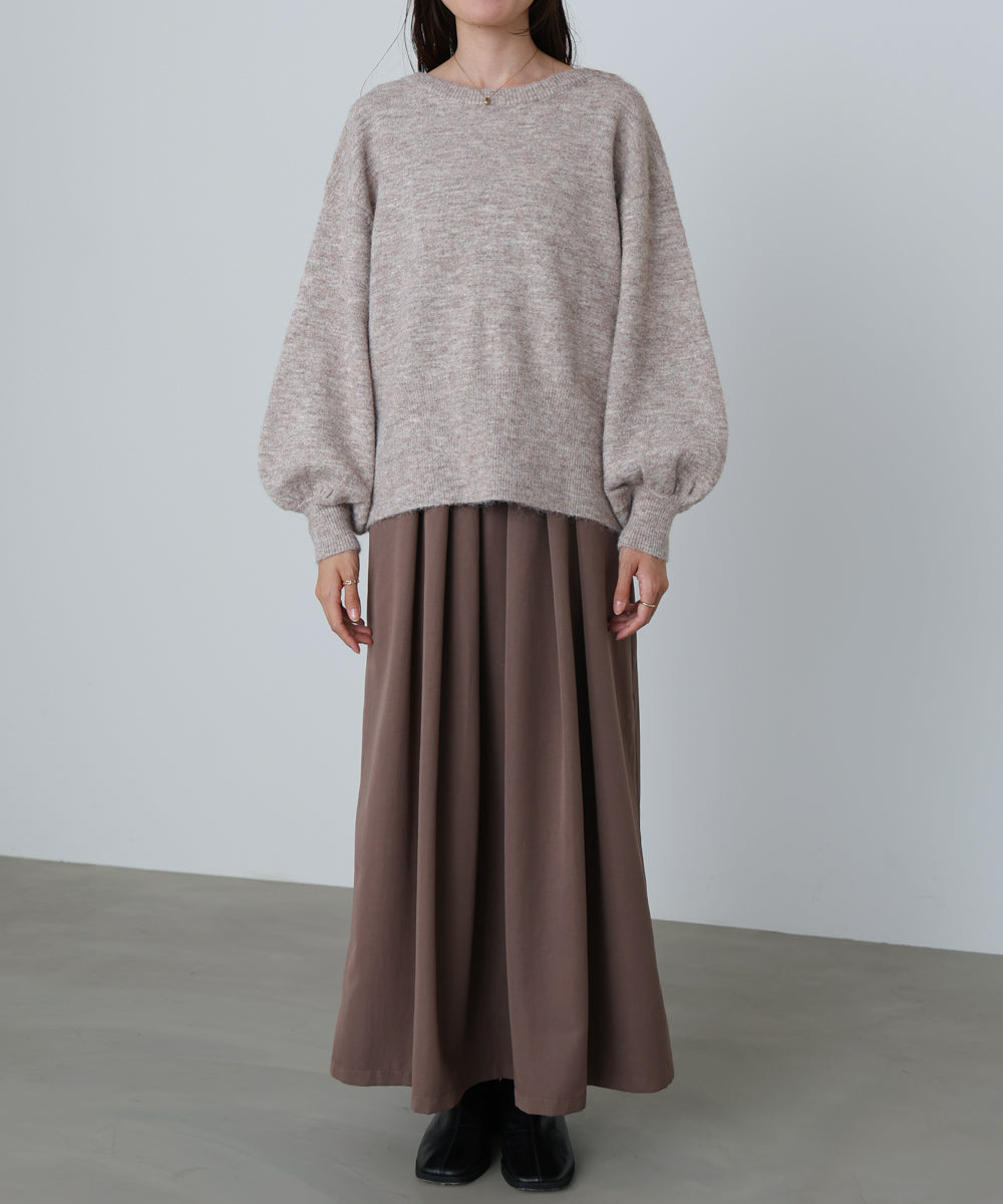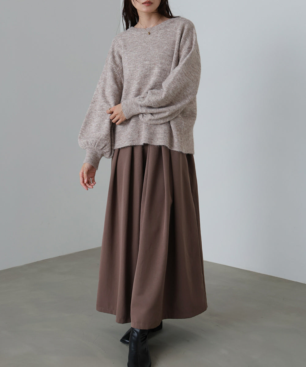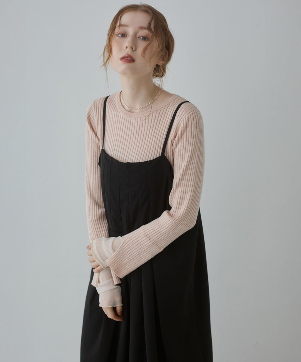 保温性に優れたニットトップスです。キャミワンピースはしわになりにくく型崩れしにくい素材を使用しています。