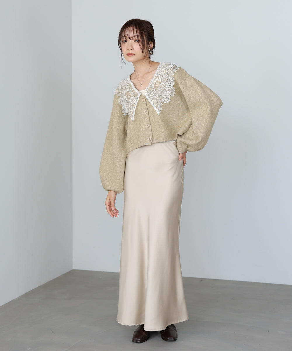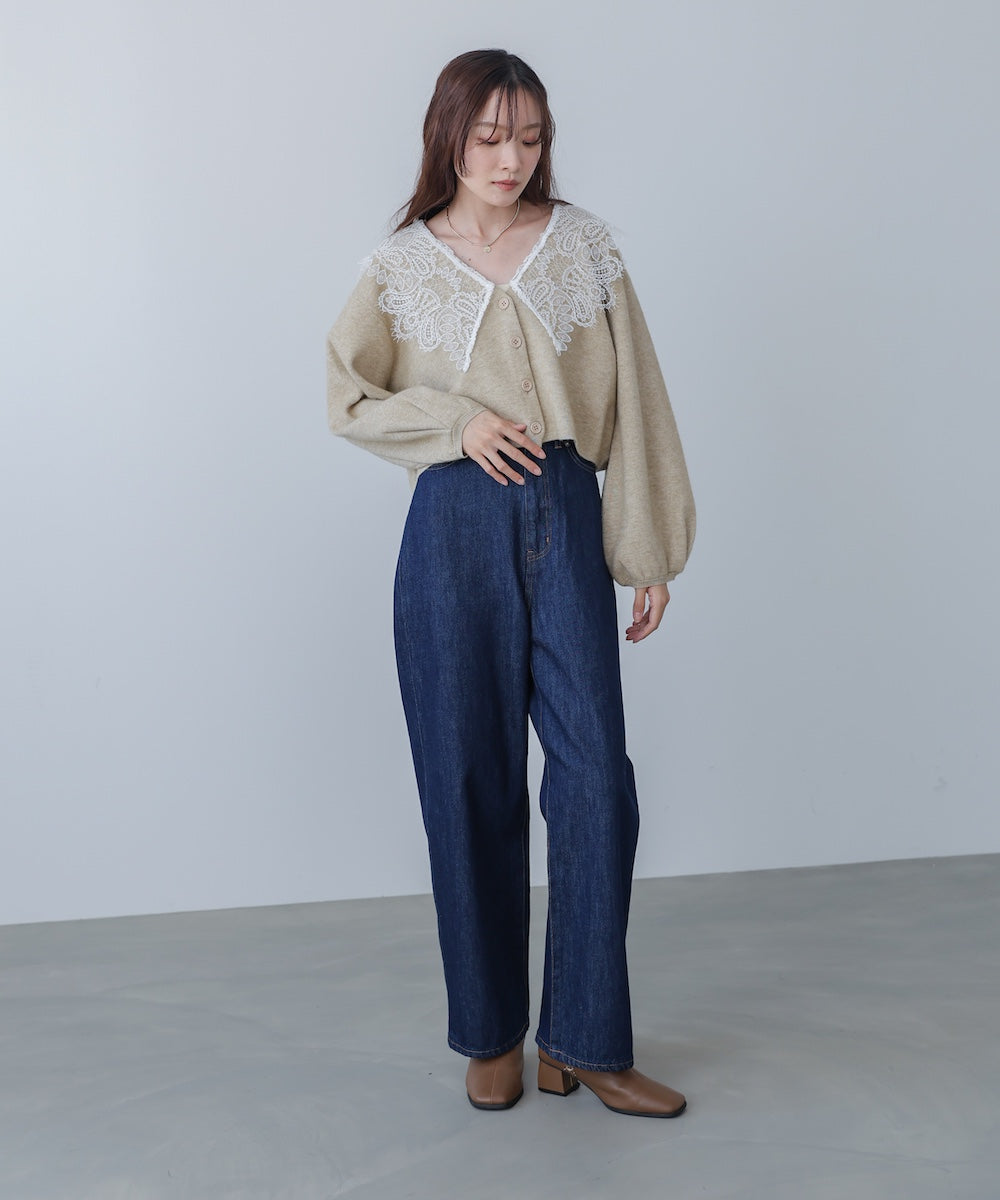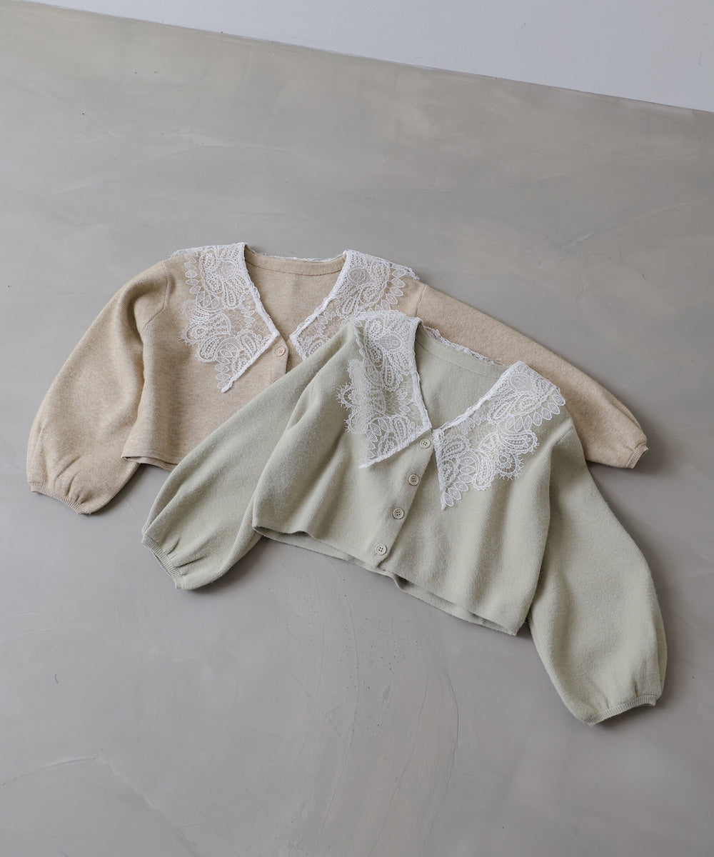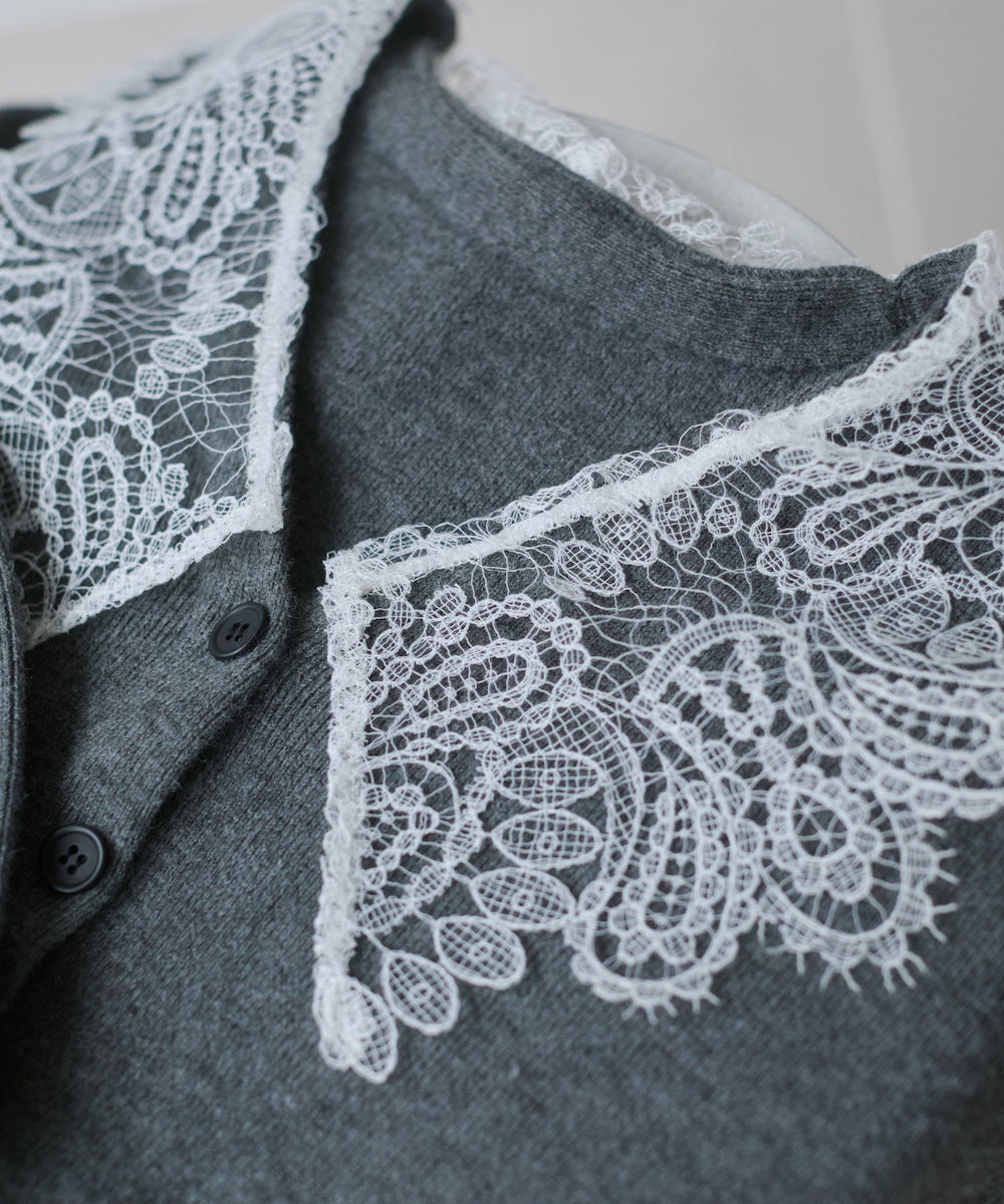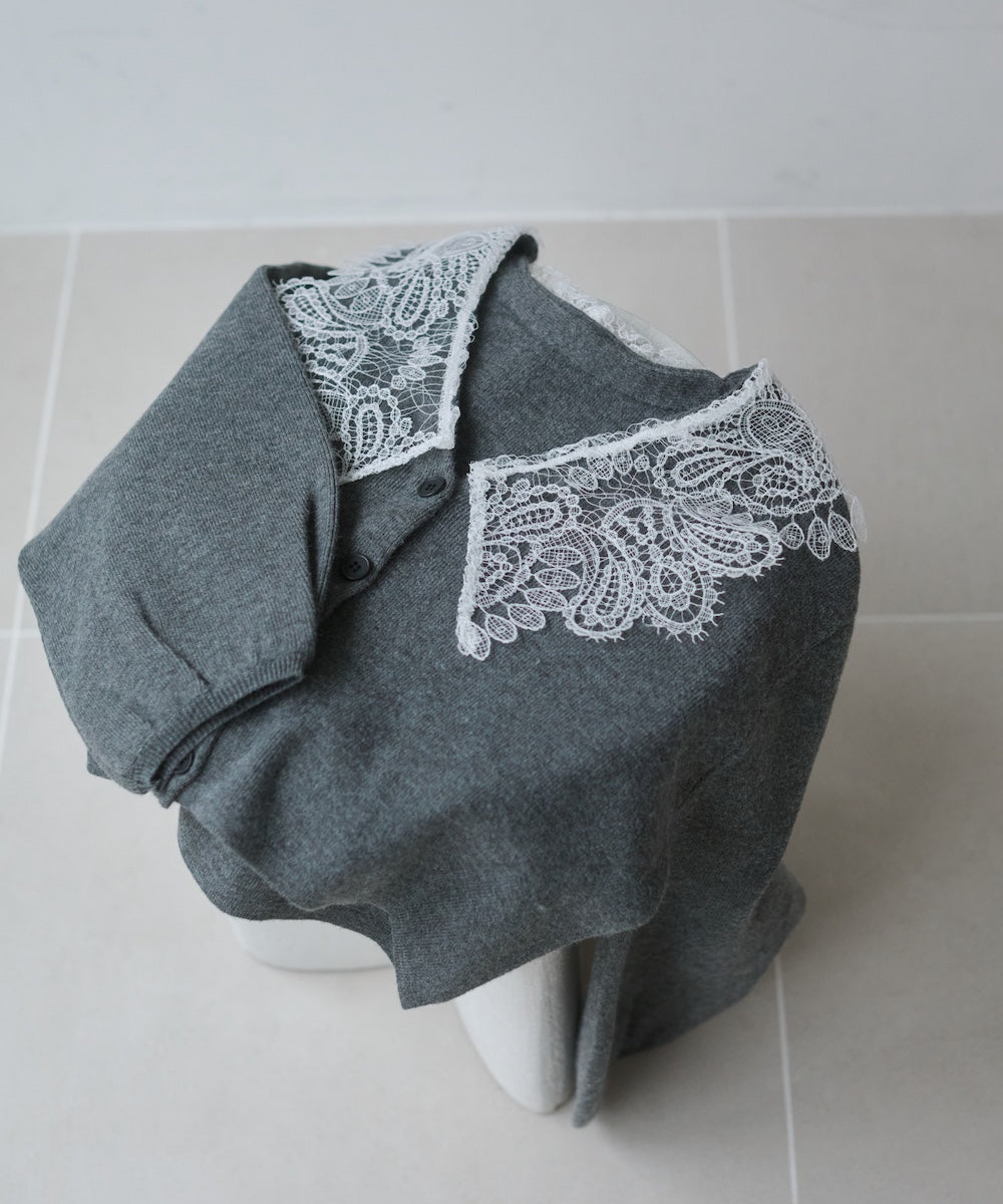 ハイウエストスカートやワンピースに羽織って、クラシカルなガーリースタイルに。デニムと合わせてカジュアルダウンしても、衿のレースが程よい甘さをプラスしてくれます。使いやすい優しい色合いなのでお仕事にもお使いただけます。