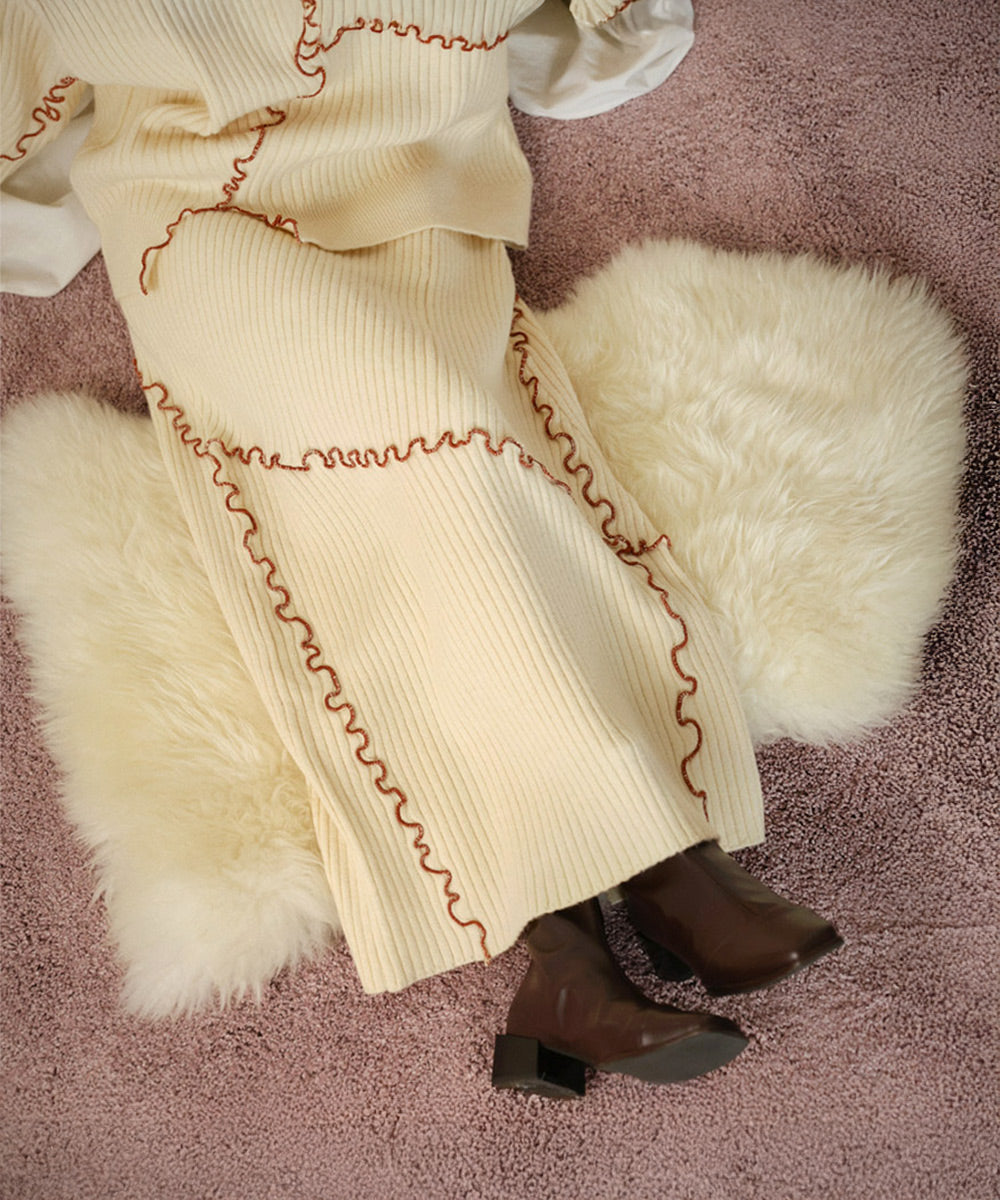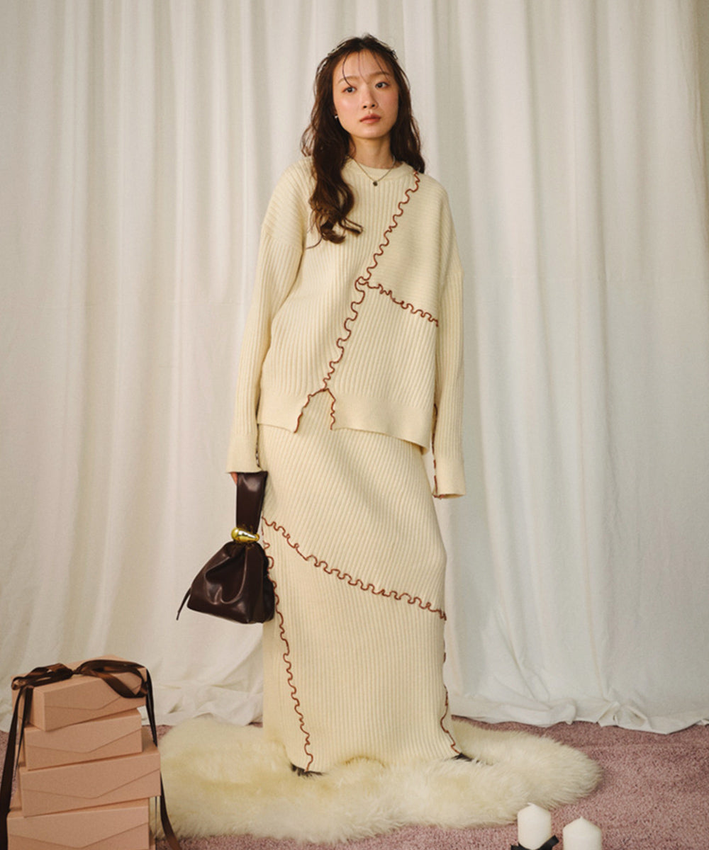 やわらかな印象のメロウデザインが目を惹くランダムメロウニットトップス。ボディラインを拾いすぎない絶妙なシルエットで、女性らしい華奢見えを叶えます。襟元や袖口など全体的に施された配色メロウがコーデのポイントになり、一枚で着映えするアイテム。スカートとのセットアップで着こなせば、まとまりのある上品フェミニンスタイルが完成します。アイボリー×ブラウンやブラウン×ベージュなど、どのカラーも柔らかく大人っぽい印象に。