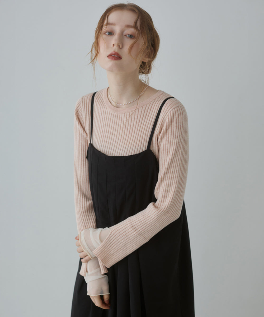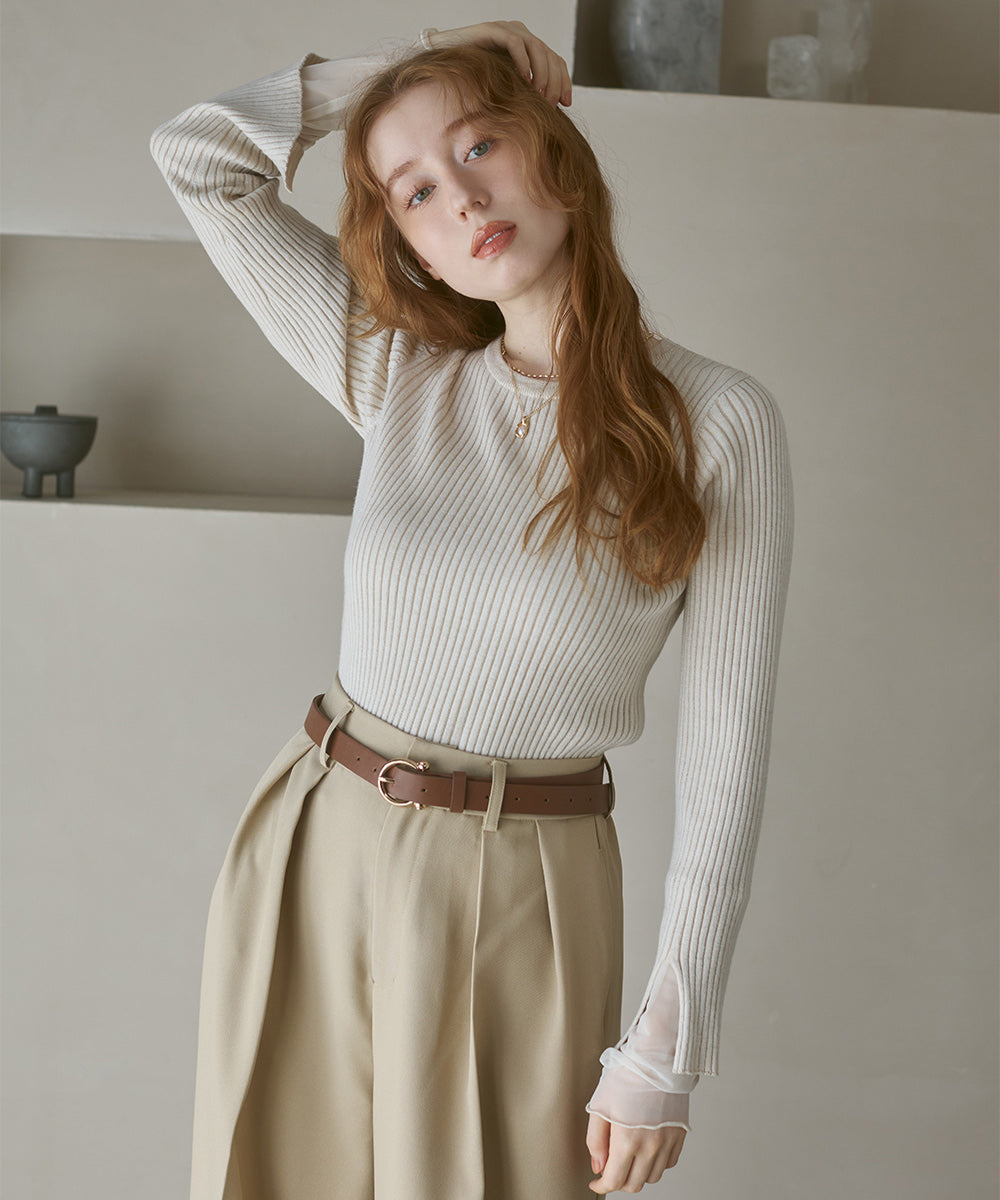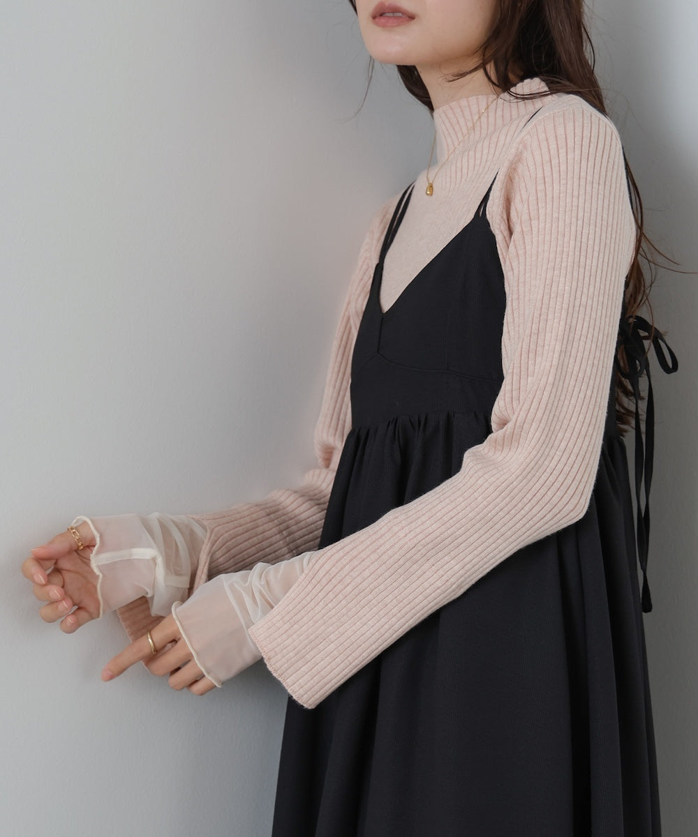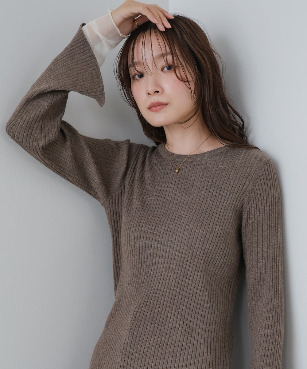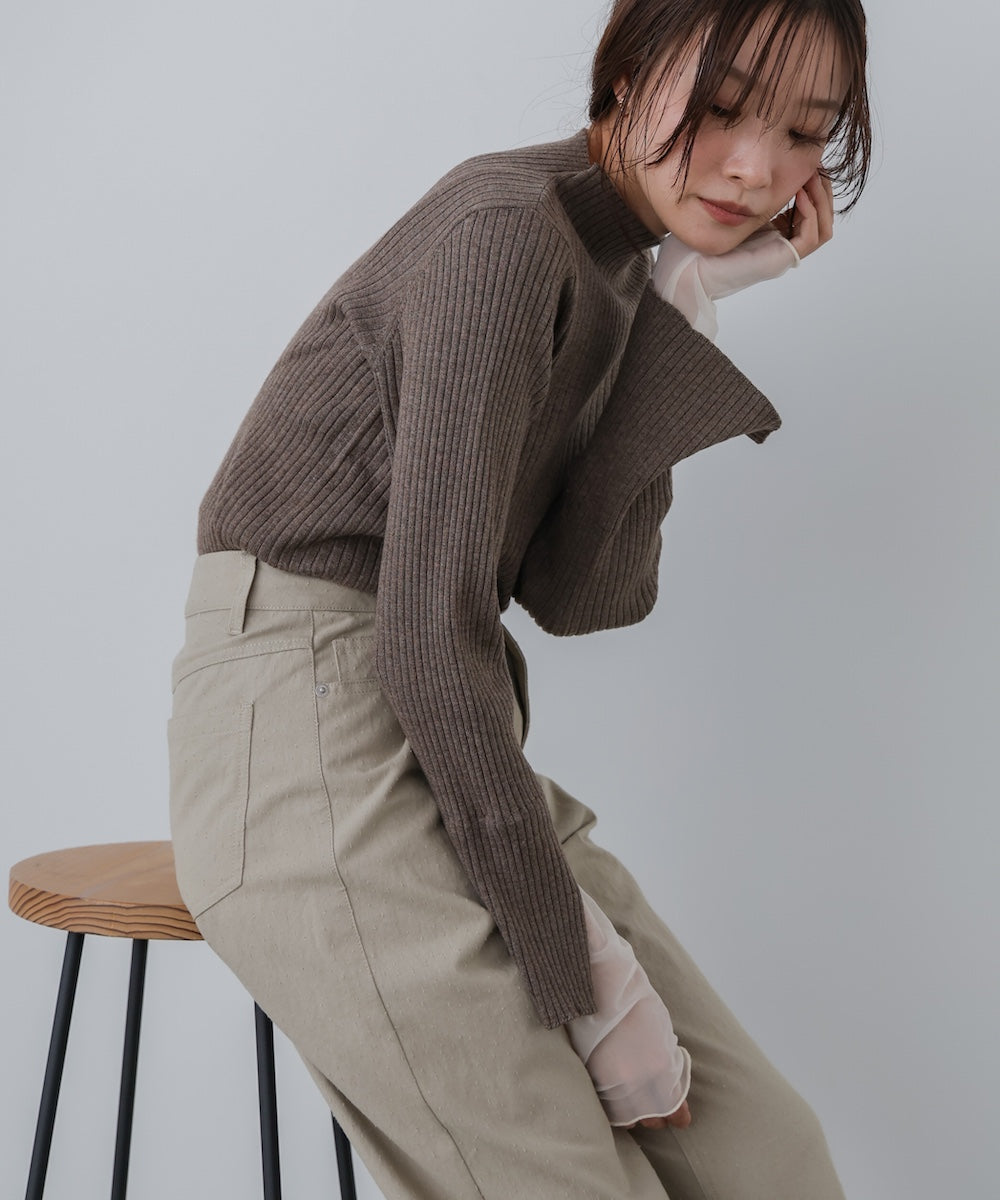 繊細なチュールを重ねた袖デザインが印象的なチュールレイヤードリブニット。リブ編みのすっきりとしたシルエットに、ふんわりと重なるチュールが女性らしい抜け感をプラス。首元はボートネックとハイネックの2種類から選べるので、シーンやスタイルに合わせて印象を変えられるのも魅力です。程よい厚みのあるニット素材にチュールを組み合わせ、華やかさと着心地の良さを両立。デイリーから特別なお出かけまで、幅広く活躍してくれる大人フェミニンな一枚です。