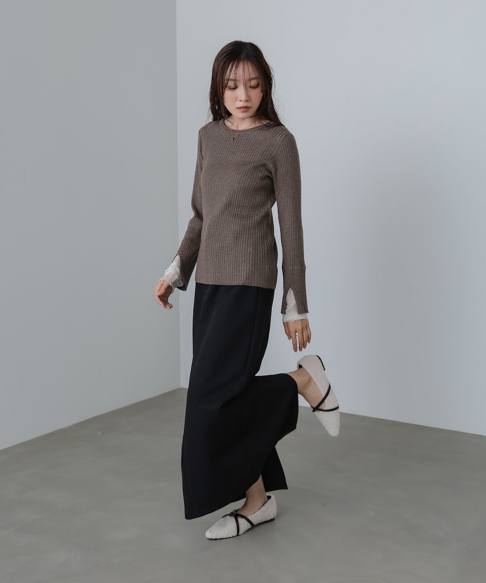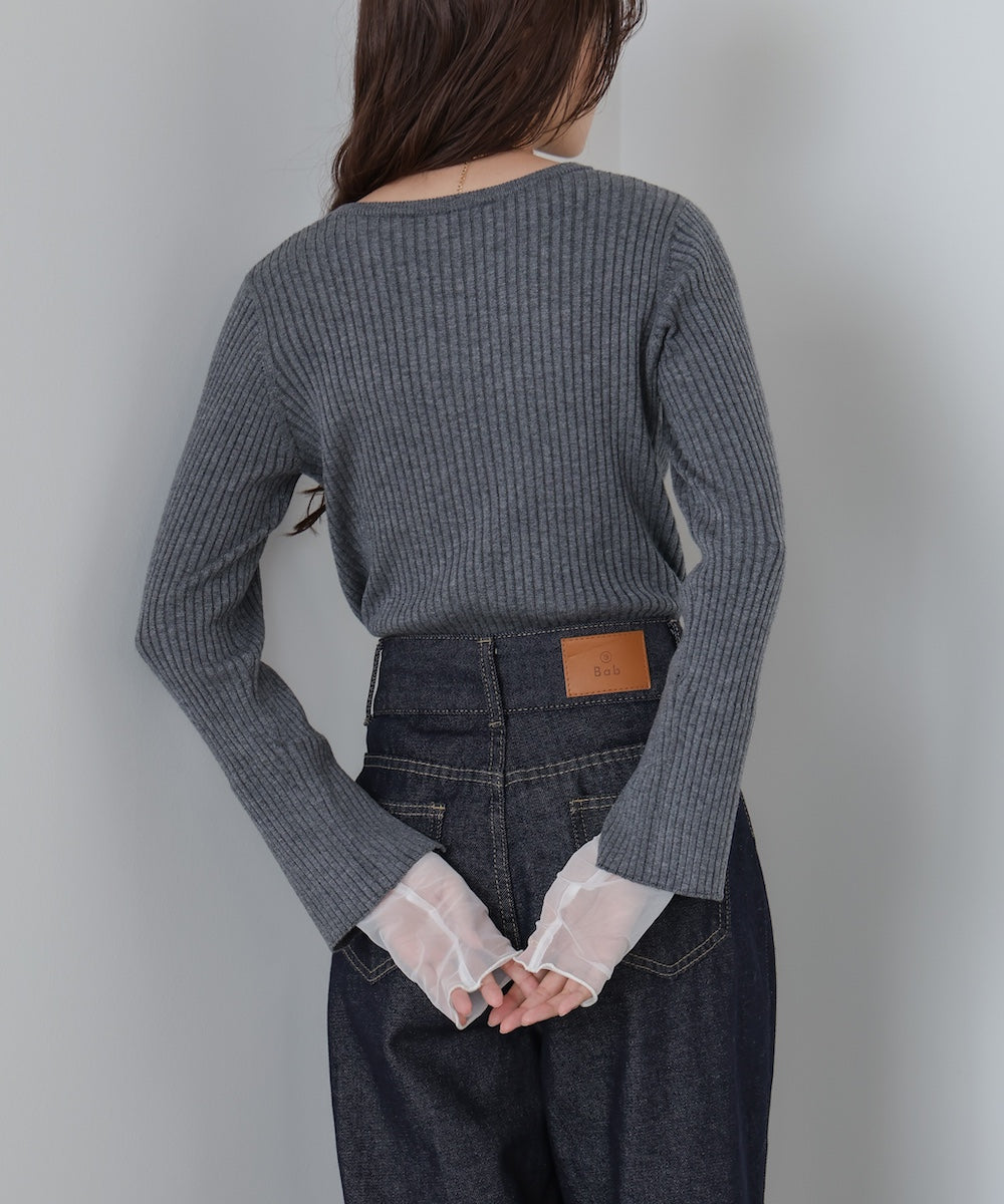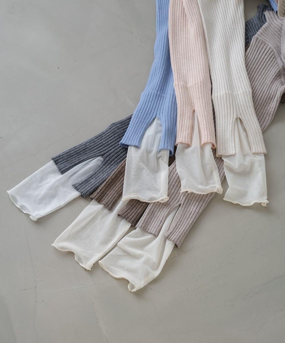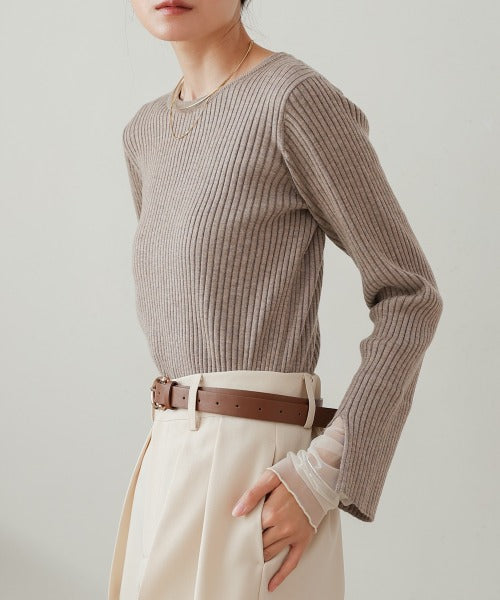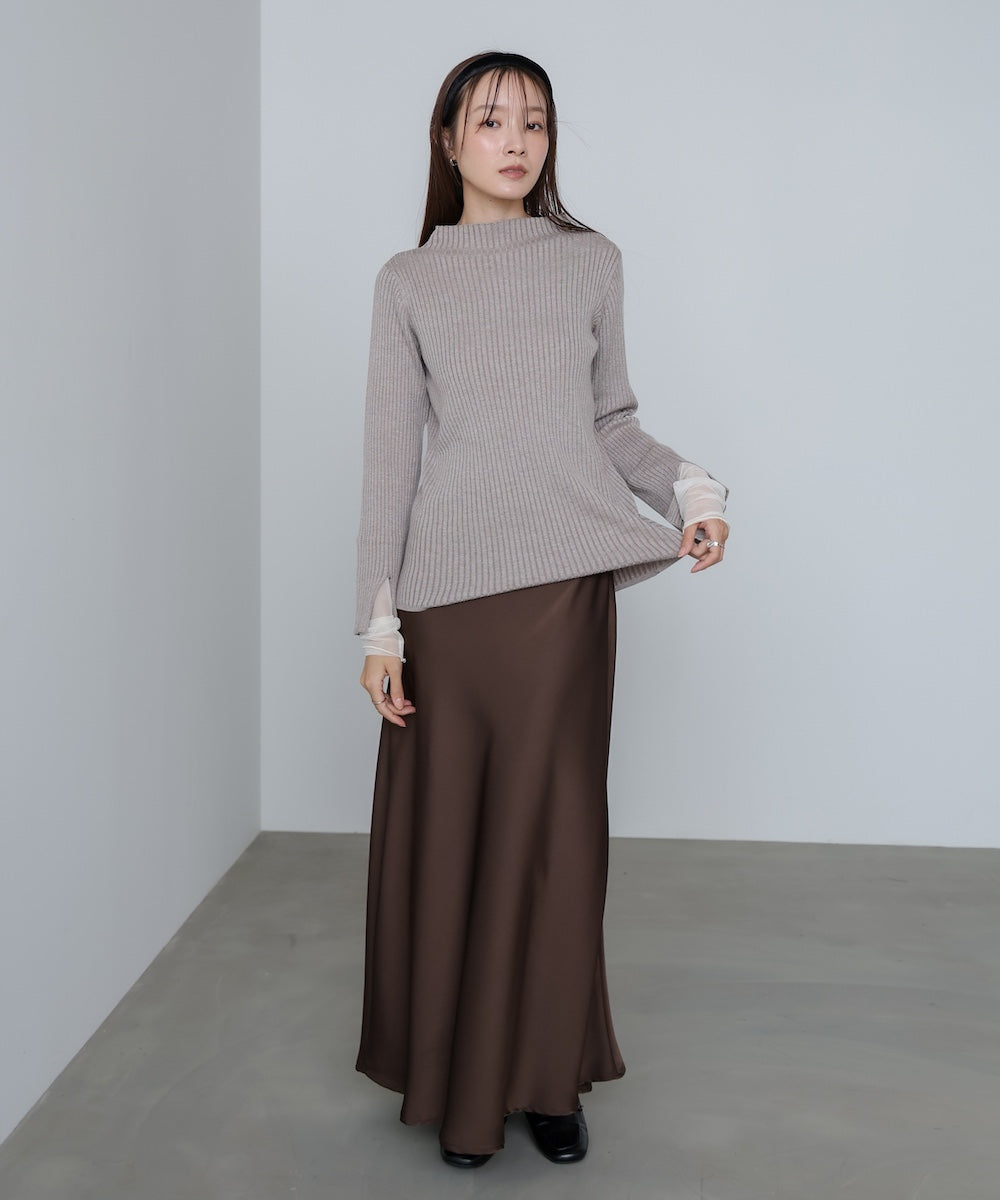 繊細なチュールを重ねた袖デザインが印象的なチュールレイヤードリブニット。リブ編みのすっきりとしたシルエットに、ふんわりと重なるチュールが女性らしい抜け感をプラス。首元はボートネックとハイネックの2種類から選べるので、シーンやスタイルに合わせて印象を変えられるのも魅力です。程よい厚みのあるニット素材にチュールを組み合わせ、華やかさと着心地の良さを両立。デイリーから特別なお出かけまで、幅広く活躍してくれる大人フェミニンな一枚です。