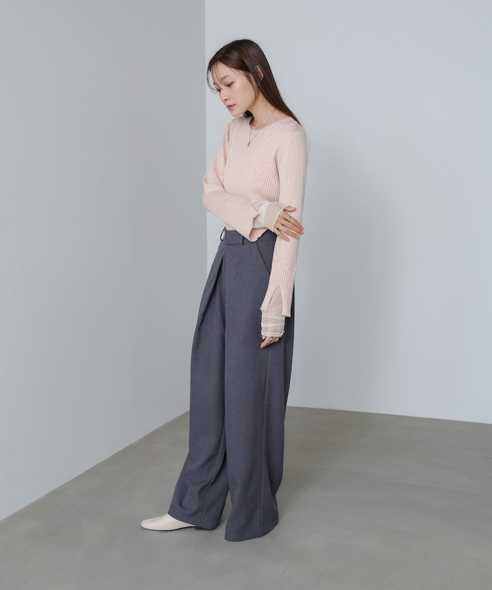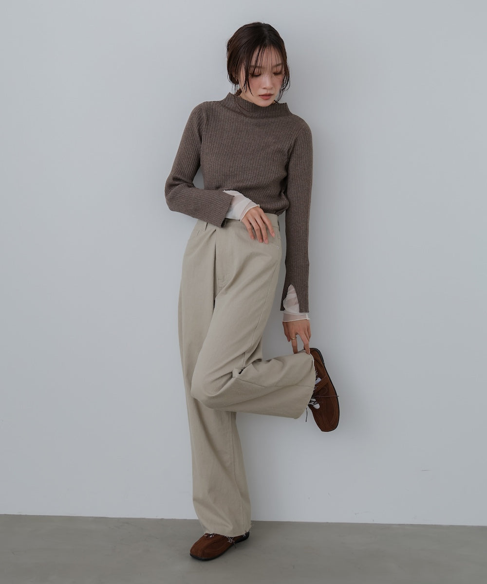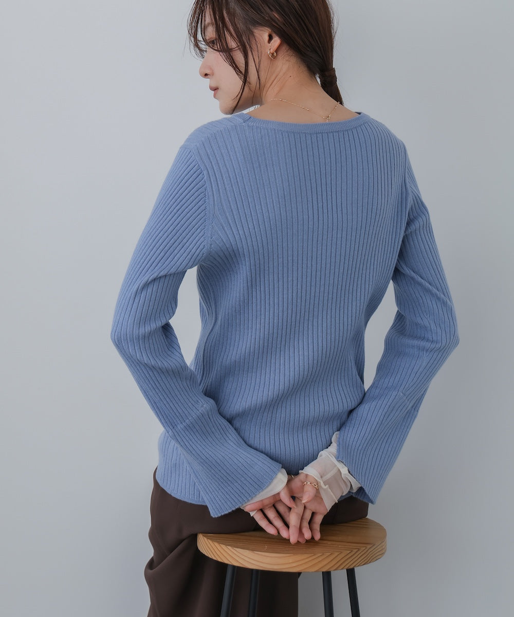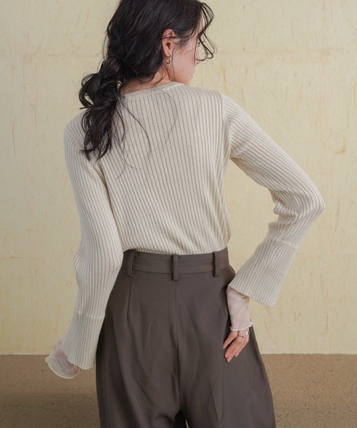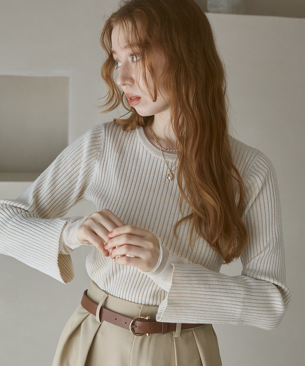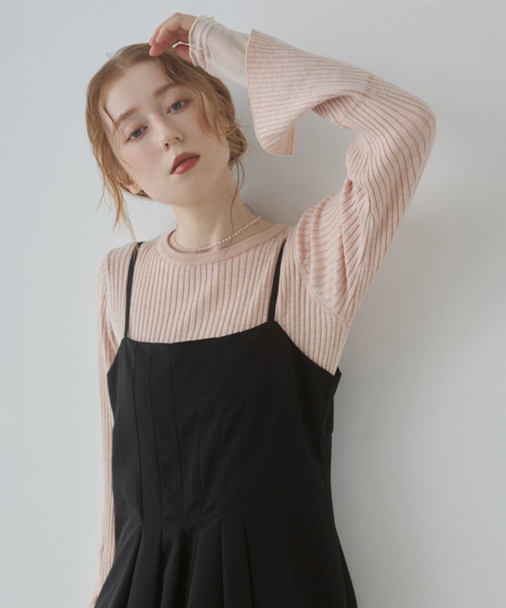 繊細なチュールを重ねた袖デザインが印象的なチュールレイヤードリブニット。リブ編みのすっきりとしたシルエットに、ふんわりと重なるチュールが女性らしい抜け感をプラス。首元はボートネックとハイネックの2種類から選べるので、シーンやスタイルに合わせて印象を変えられるのも魅力です。程よい厚みのあるニット素材にチュールを組み合わせ、華やかさと着心地の良さを両立。デイリーから特別なお出かけまで、幅広く活躍してくれる大人フェミニンな一枚です。