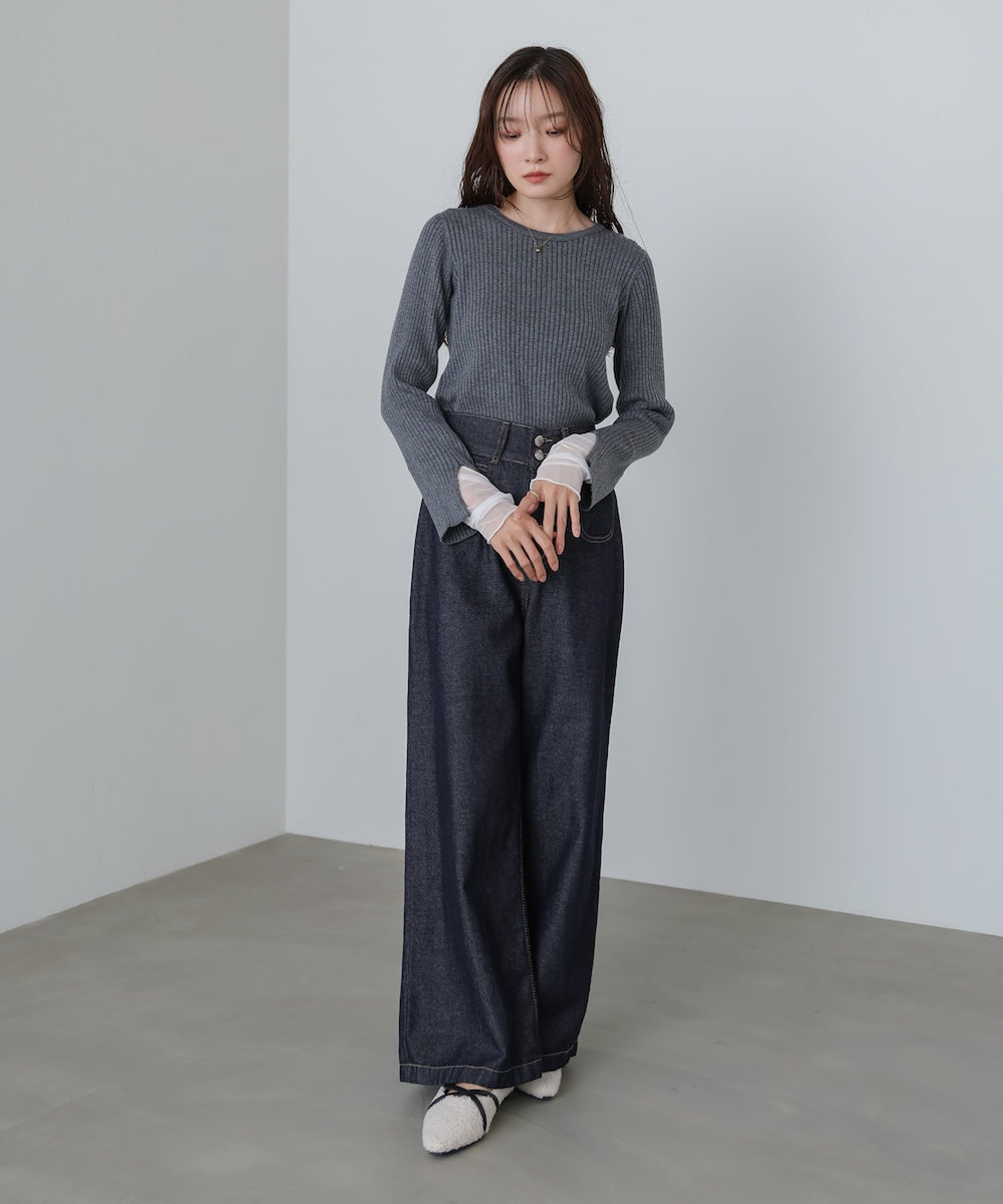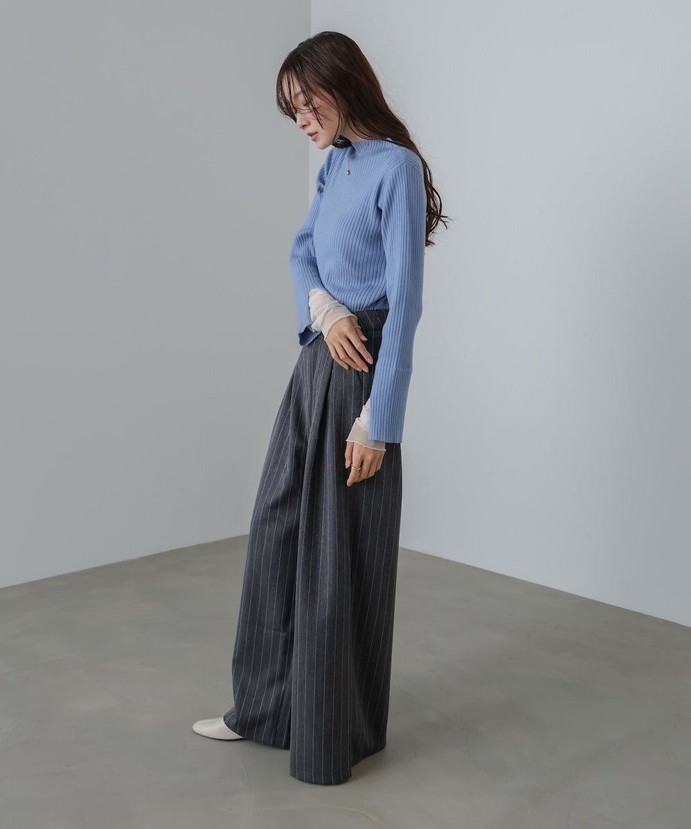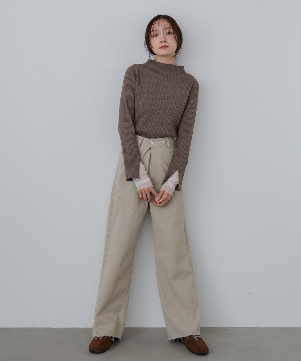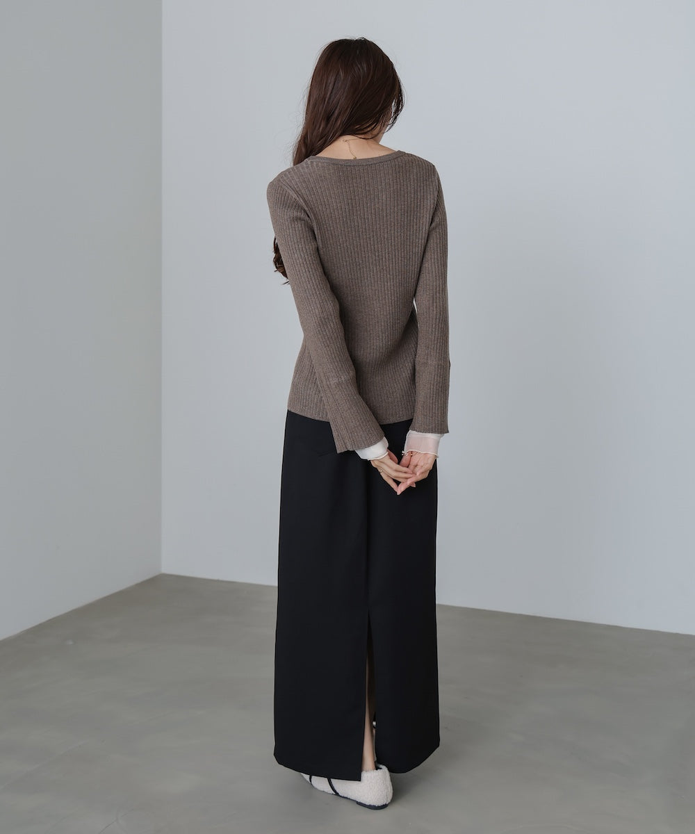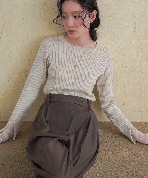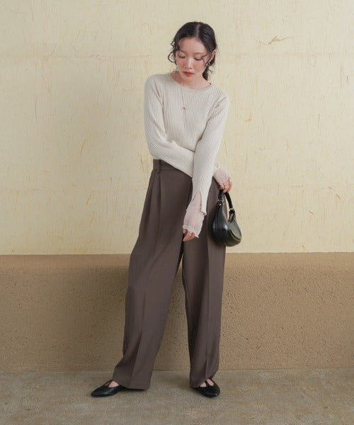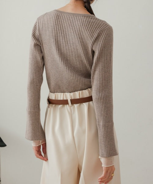 繊細なチュールを重ねた袖デザインが印象的なチュールレイヤードリブニット。リブ編みのすっきりとしたシルエットに、ふんわりと重なるチュールが女性らしい抜け感をプラス。首元はボートネックとハイネックの2種類から選べるので、シーンやスタイルに合わせて印象を変えられるのも魅力です。程よい厚みのあるニット素材にチュールを組み合わせ、華やかさと着心地の良さを両立。デイリーから特別なお出かけまで、幅広く活躍してくれる大人フェミニンな一枚です。