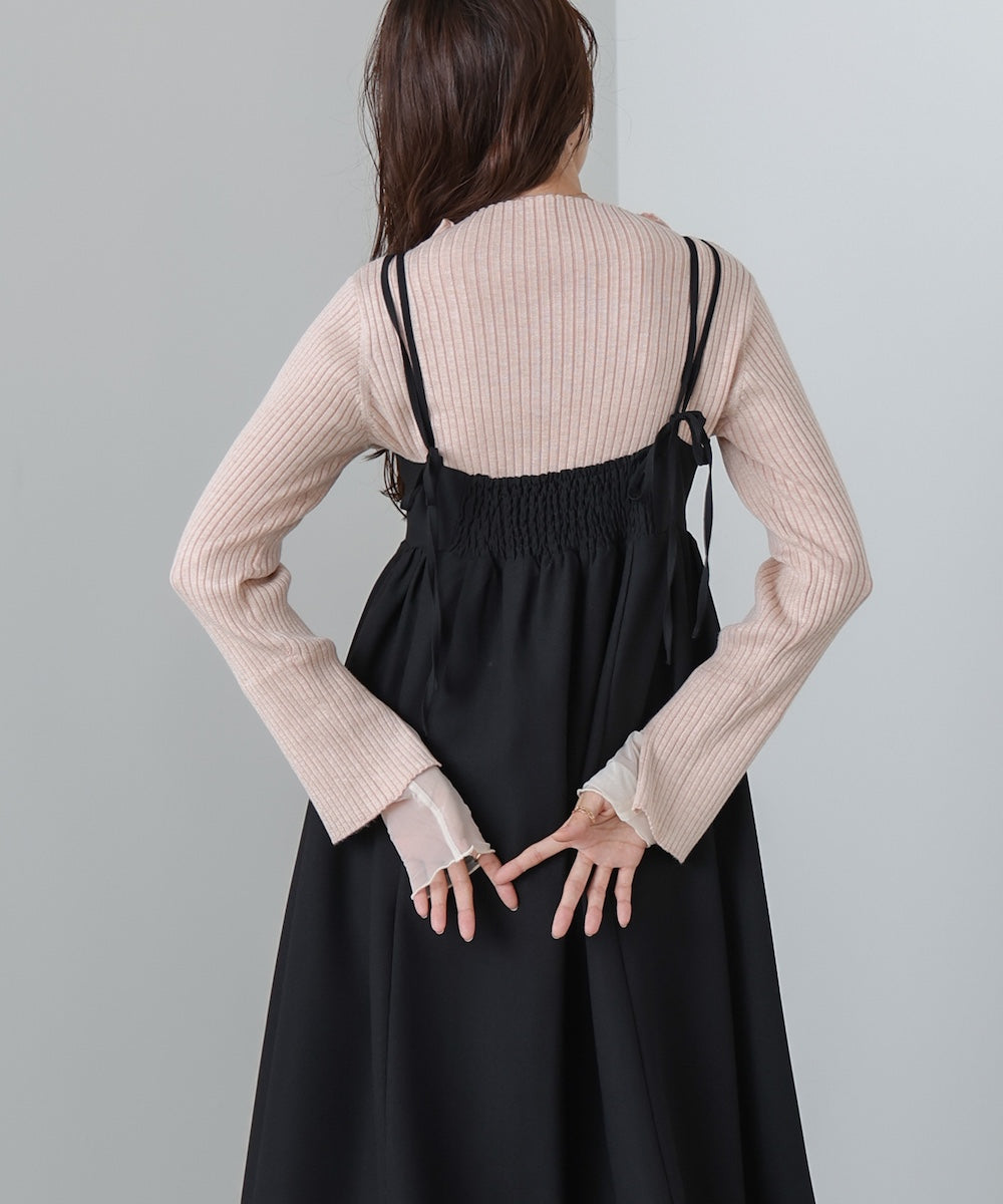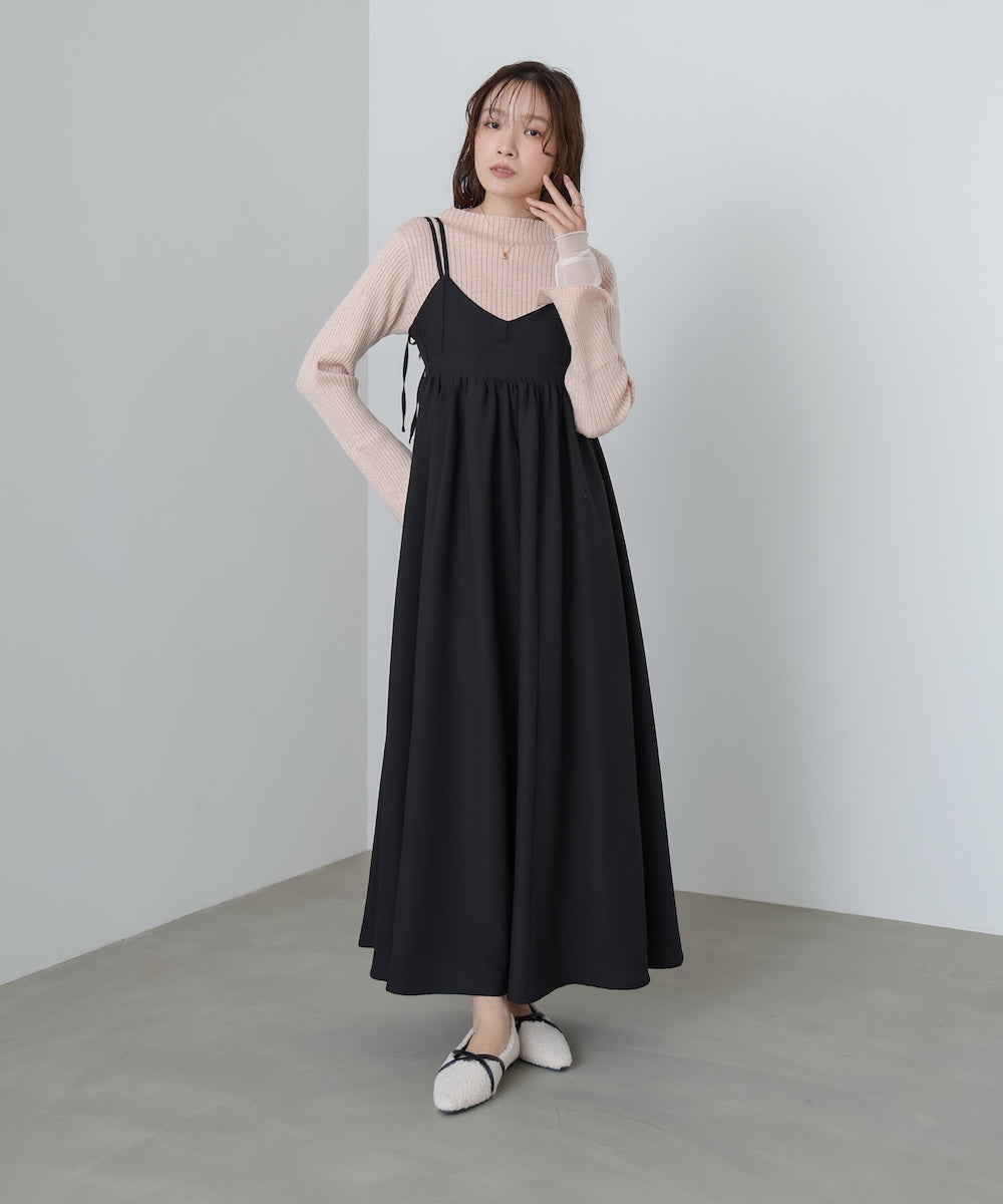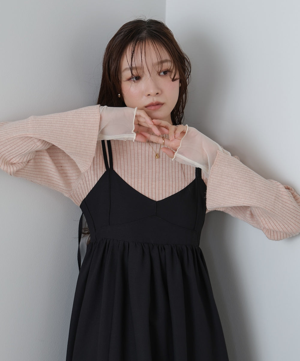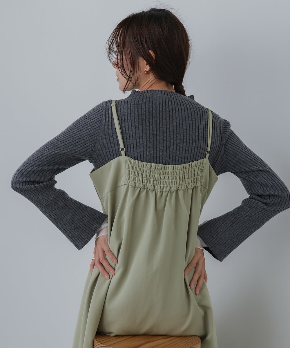 【S・Mサイズ展開】前後2WAYニットカーディガン+ニットキャミワンピース