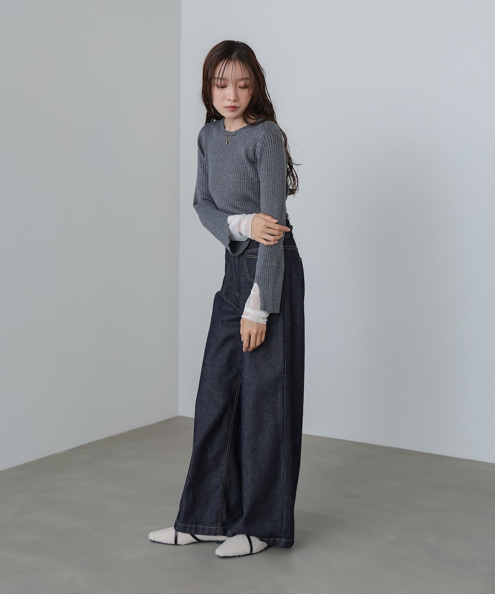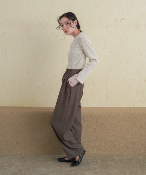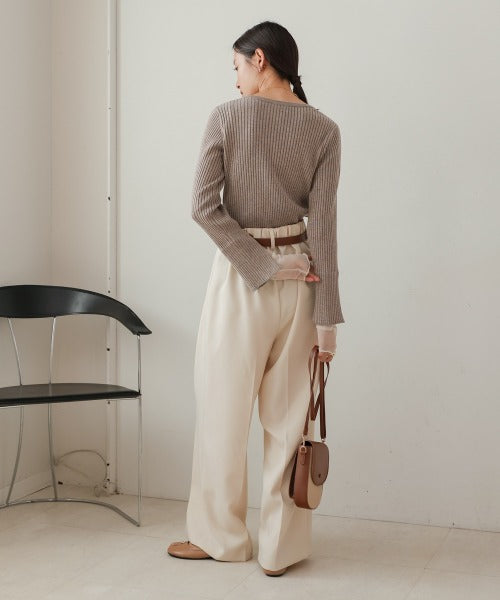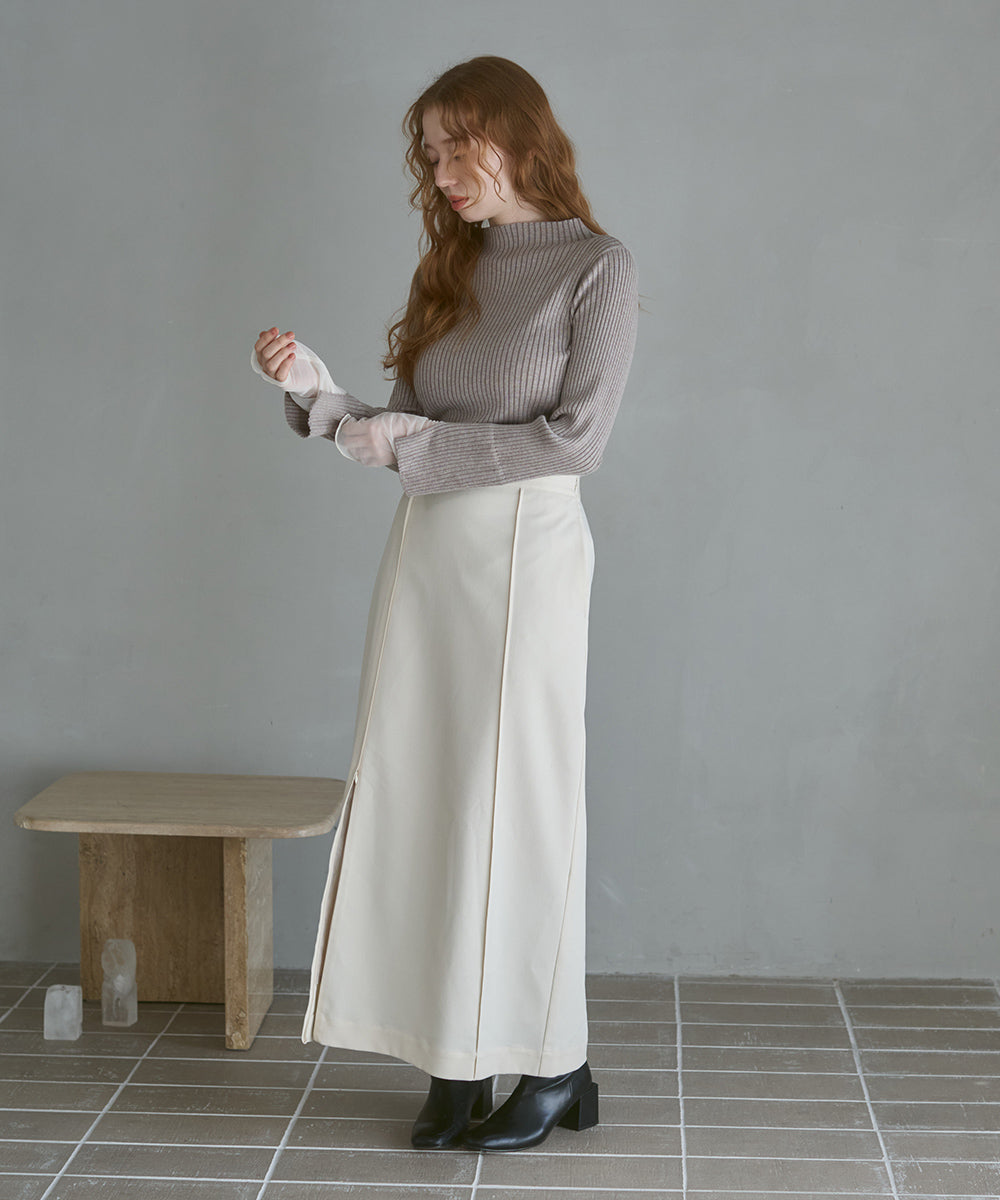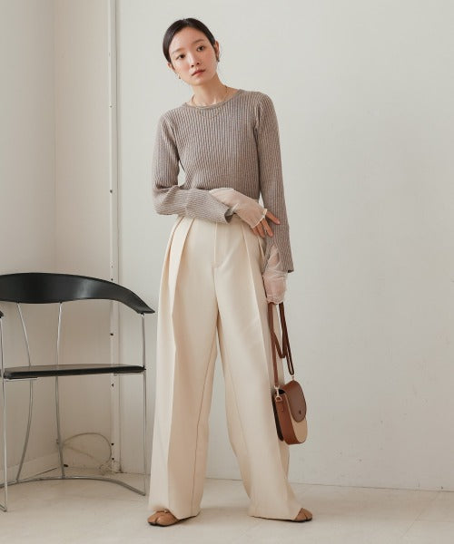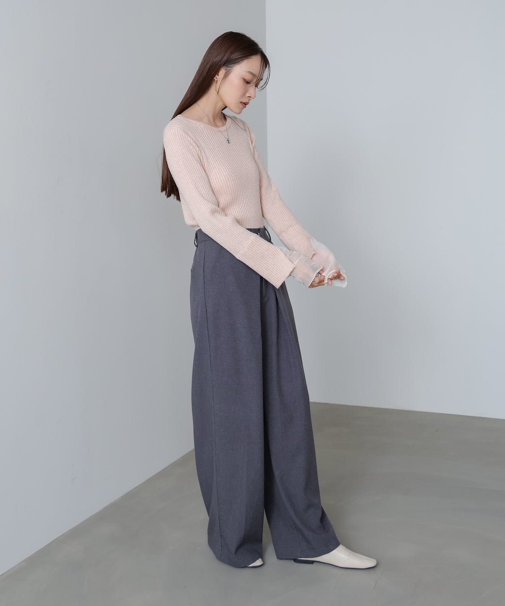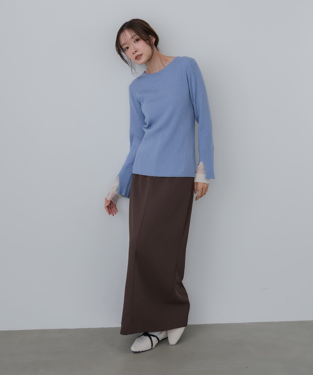 マーメイドスカートやチュールスカートを合わせると甘さのあるフェミニンな上品コーデになります。テーパードパンツやセンタープレスパンツと合わせて、華やぎをプラスしたオフィスカジュアルにも◎ワンピースのインナーとして仕込んで、袖のチュールをアクセントにした華やかレイヤードスタイルもおすすめです。