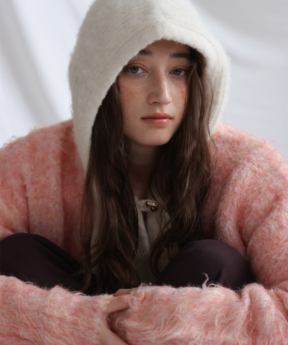 ブラッシュドニットカーディガンを上から羽織れば、ふわふわ×ふわふわの異素材MIXで愛らしい雰囲気に。淡いトーンでまとめると一気に上品見えします。フレアスカートやプリーツスカートに合わせると、ボリューム感のあるシルエットをお楽しみいただけます。首元のゴールド金具がアクセいらずの華やかさをプラスしてくれます。デニムやワイドパンツで抜け感をプラスし、足元はローファーやスニーカーで大人っぽくまとめるとカジュアルになります。