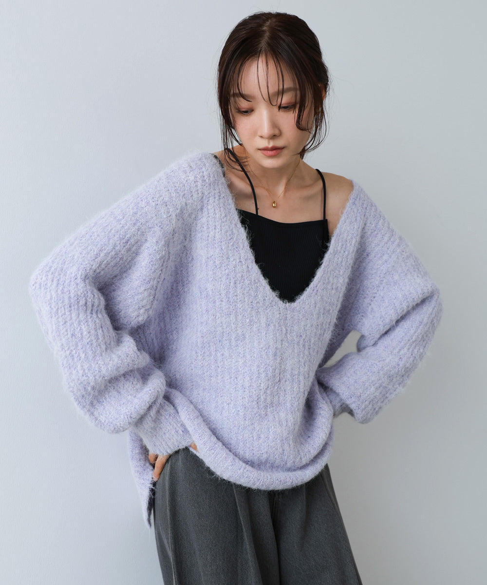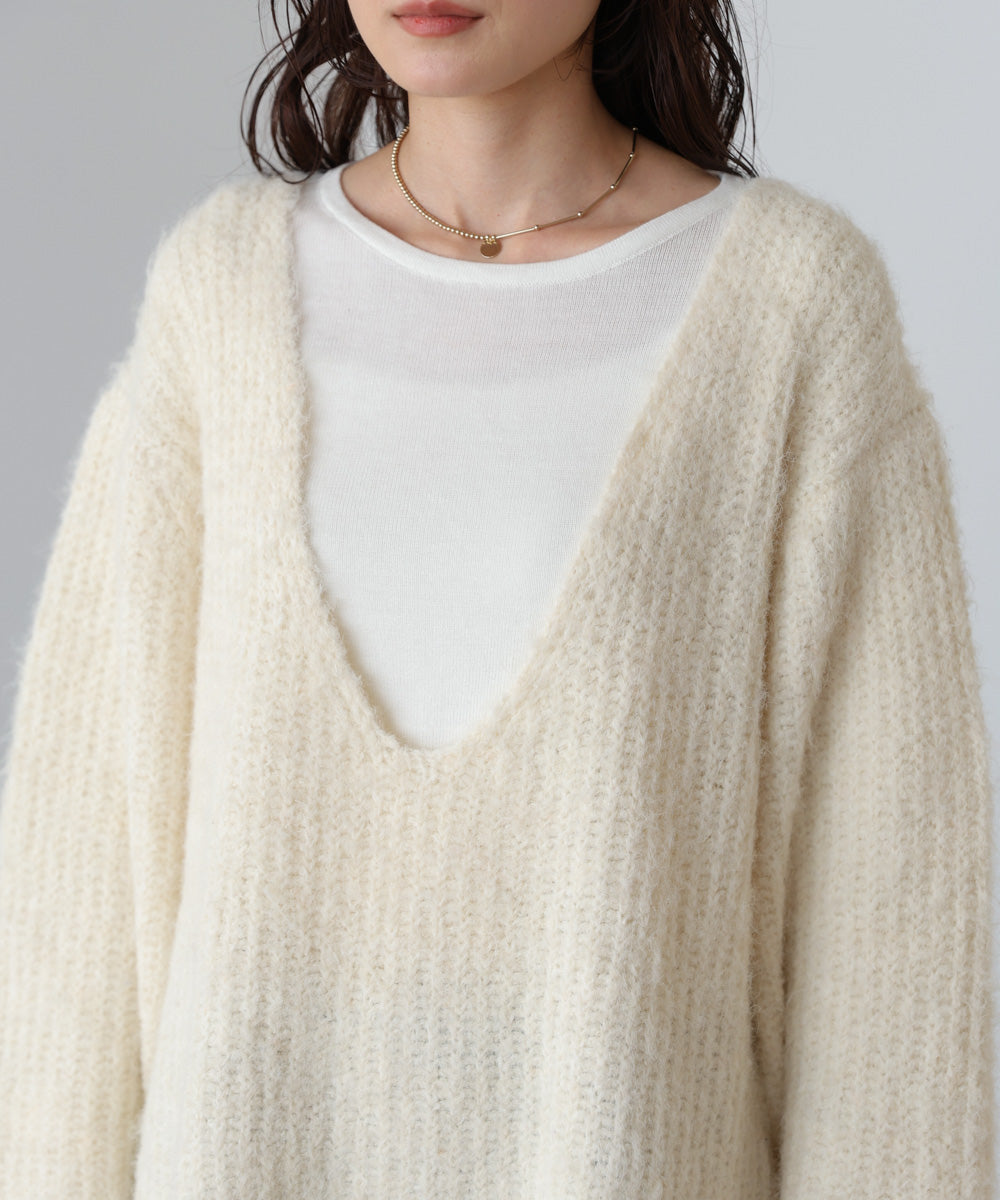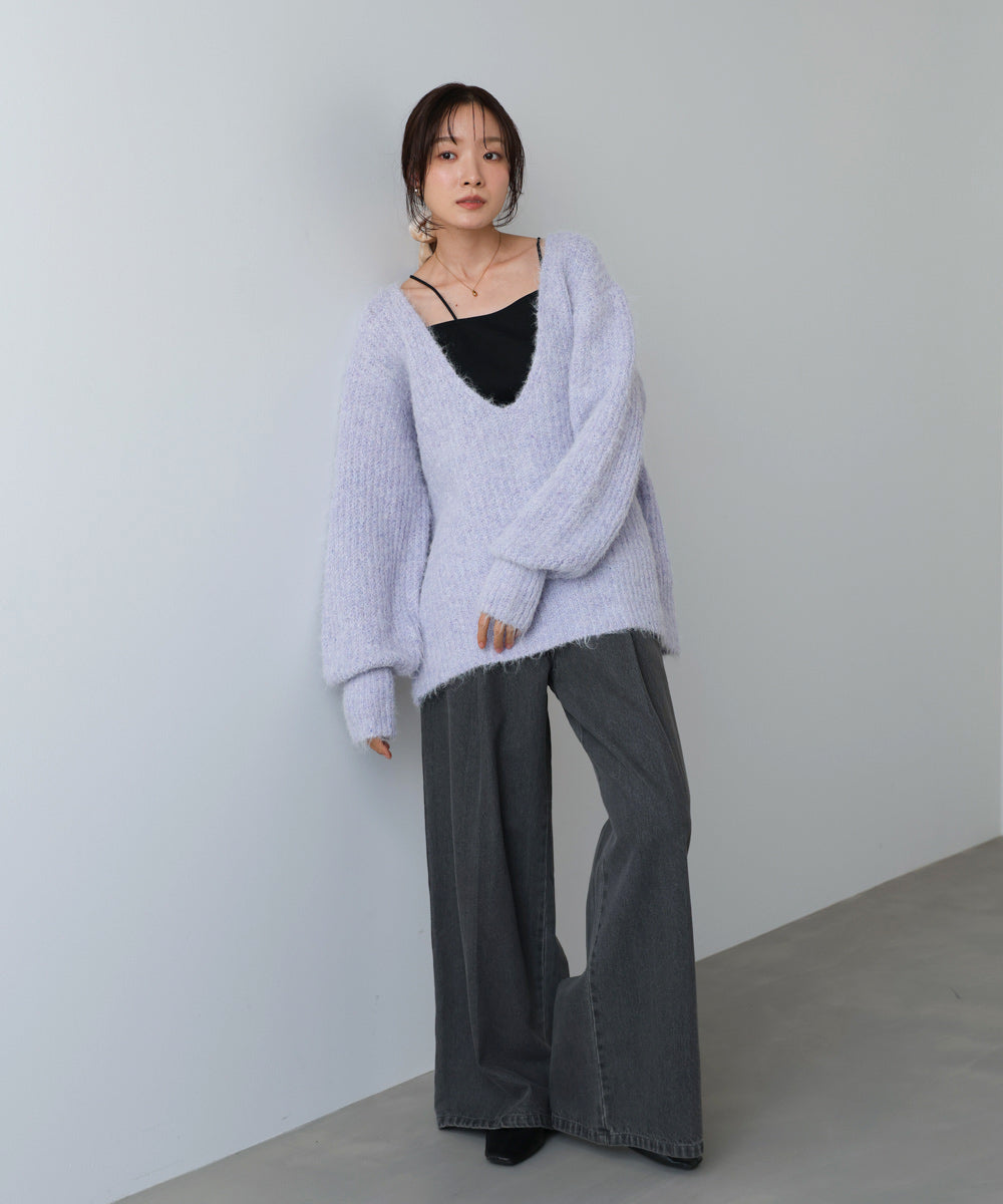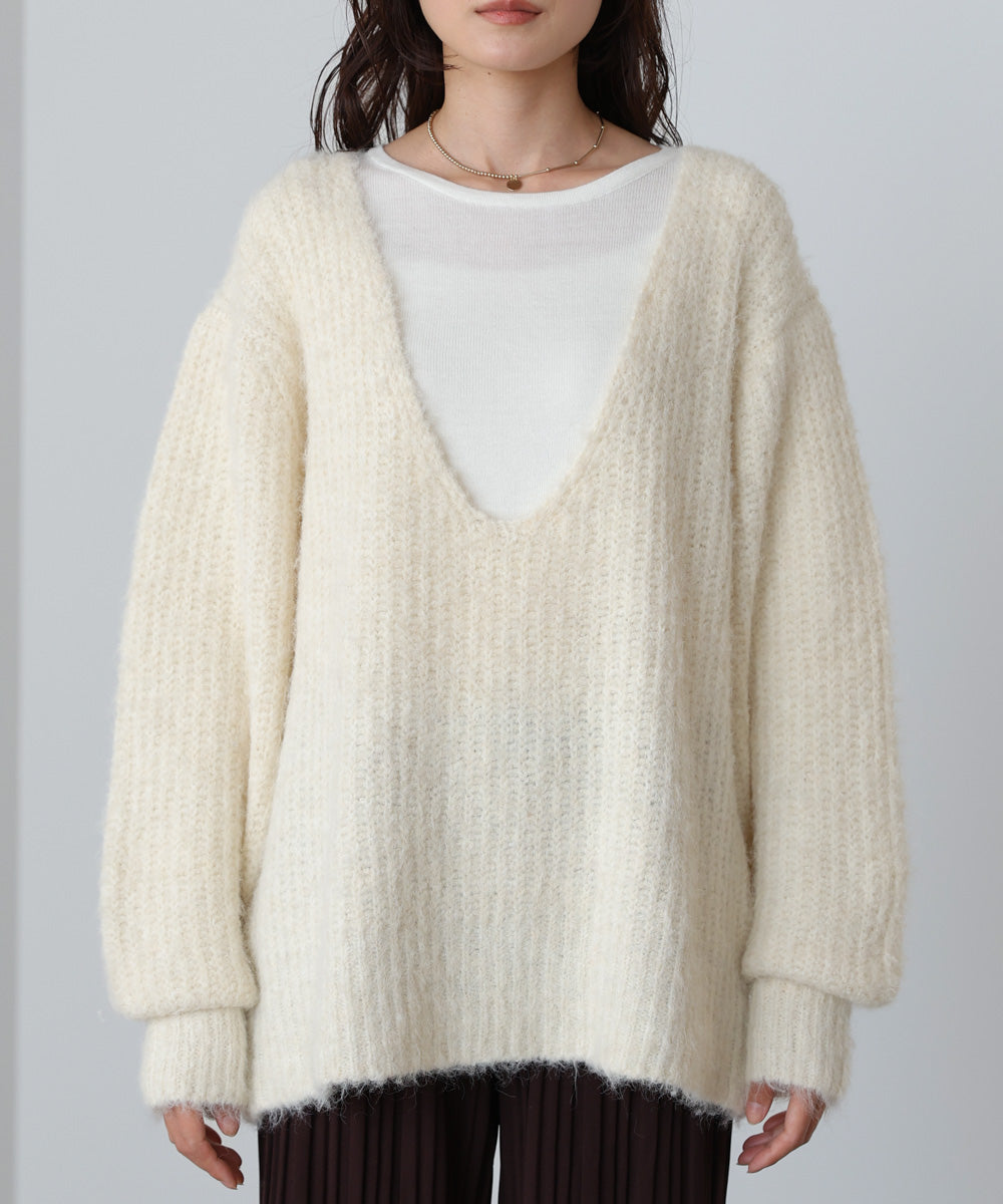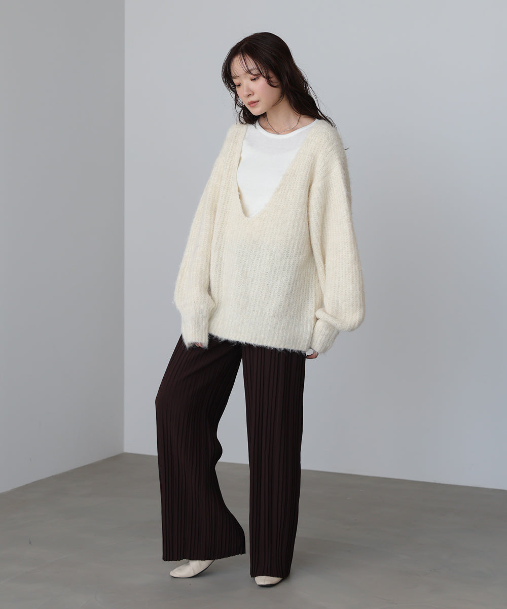 ワイドVネックルーズニットプルオーバー