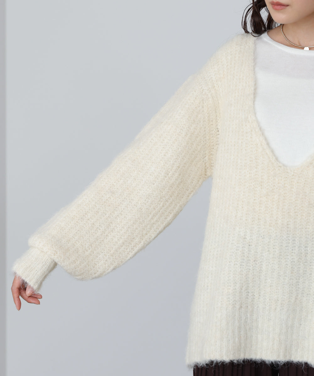 インナーセットキーネックケガキニットトップス