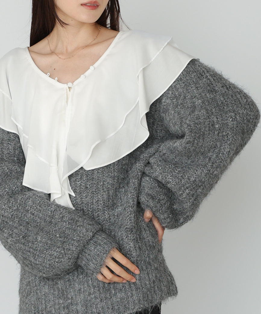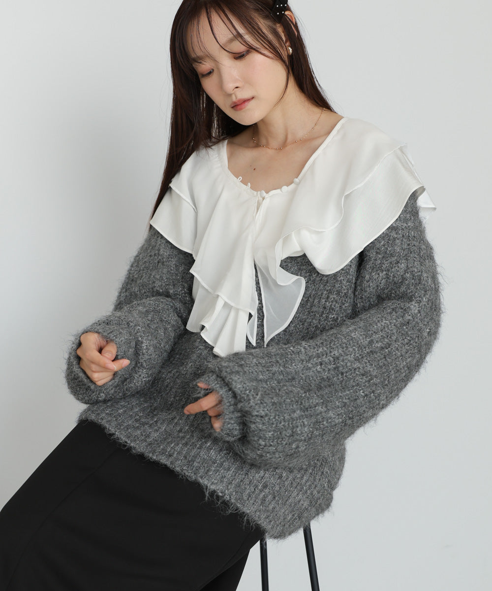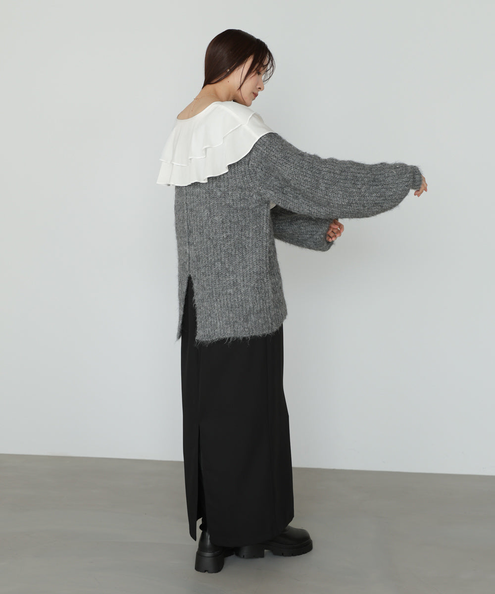 チュールラッフルカラーニットトップス