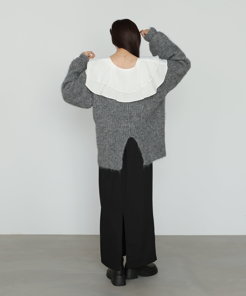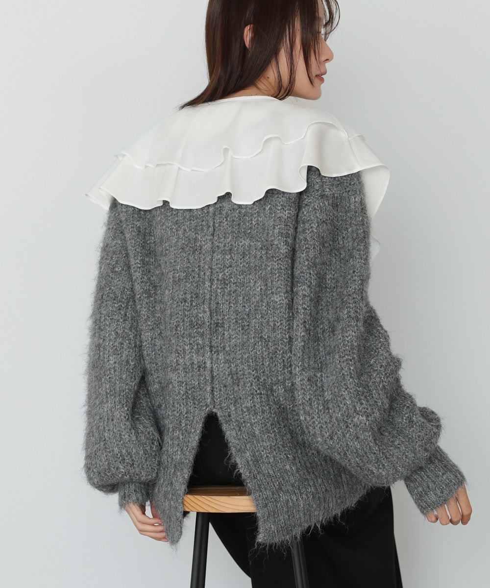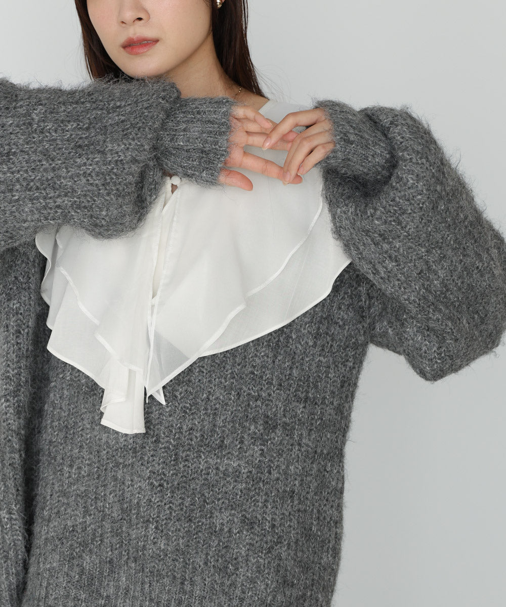 チュールラッフルカラーニットトップス