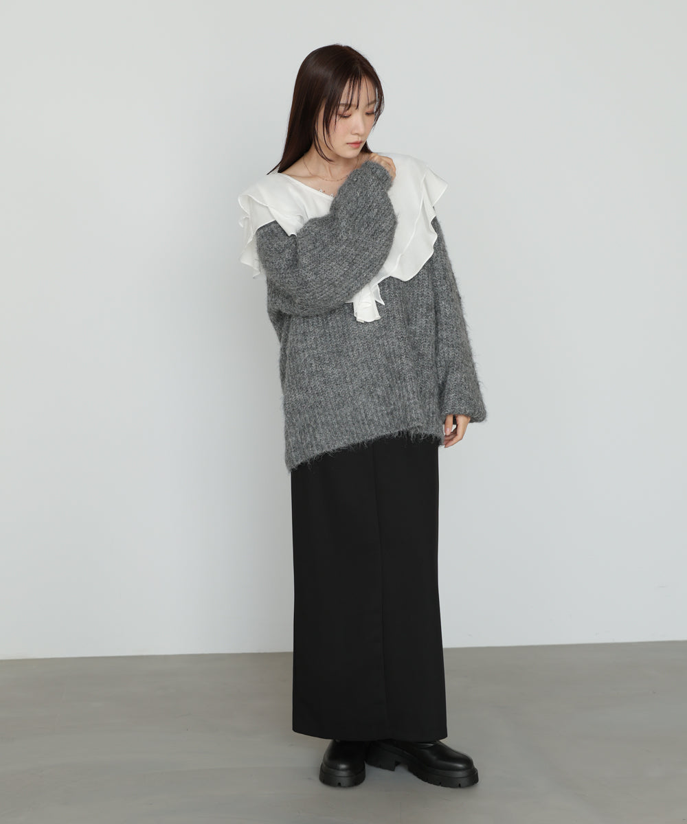 【選べるネック】チュールレイヤードリブニット