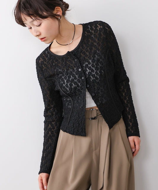 カットジャガードフラワーカーディガン