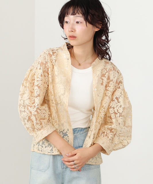 レース袖ボリュームブラウス