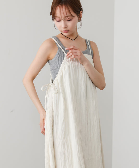サイドギャザーキャミワンピース