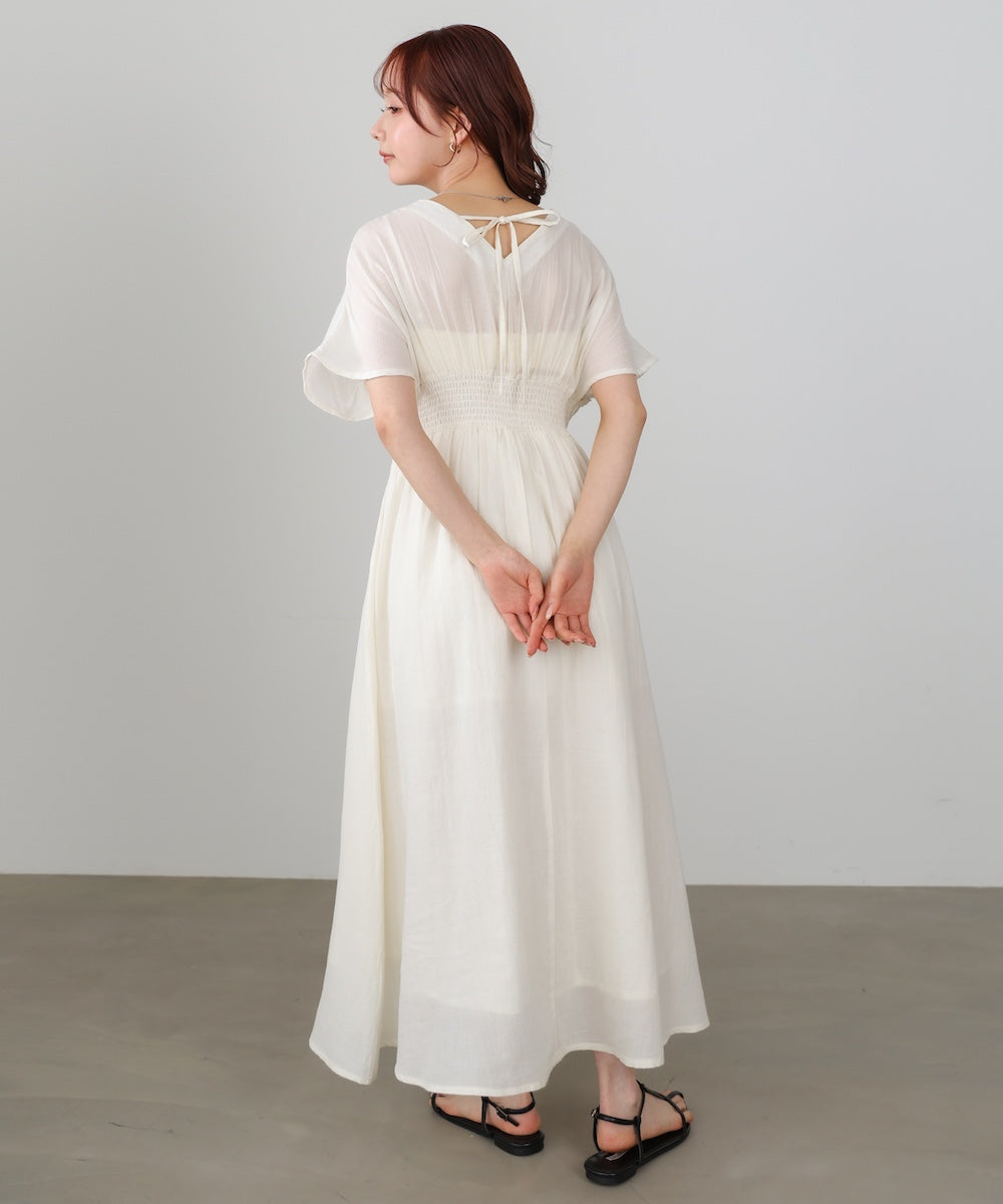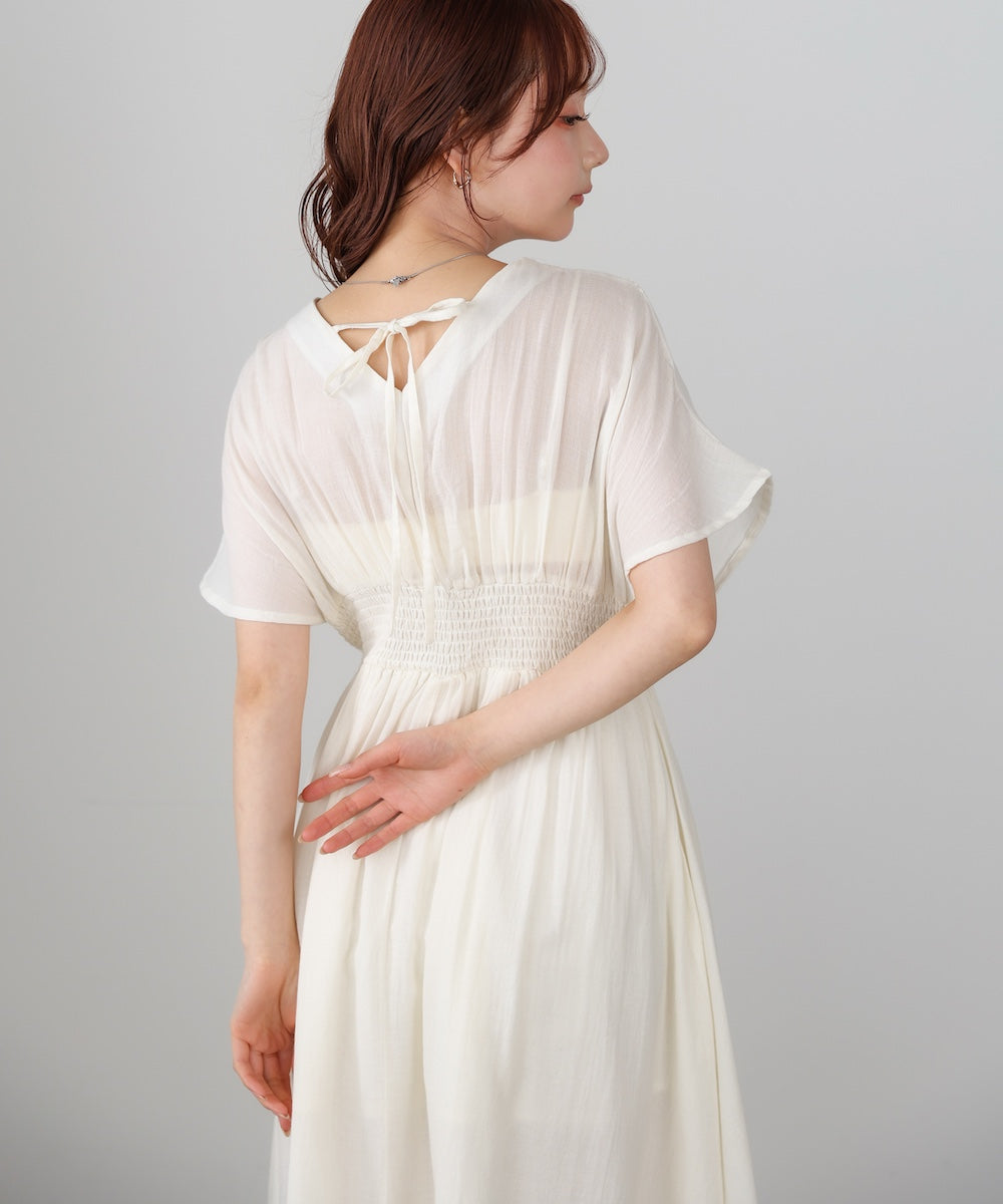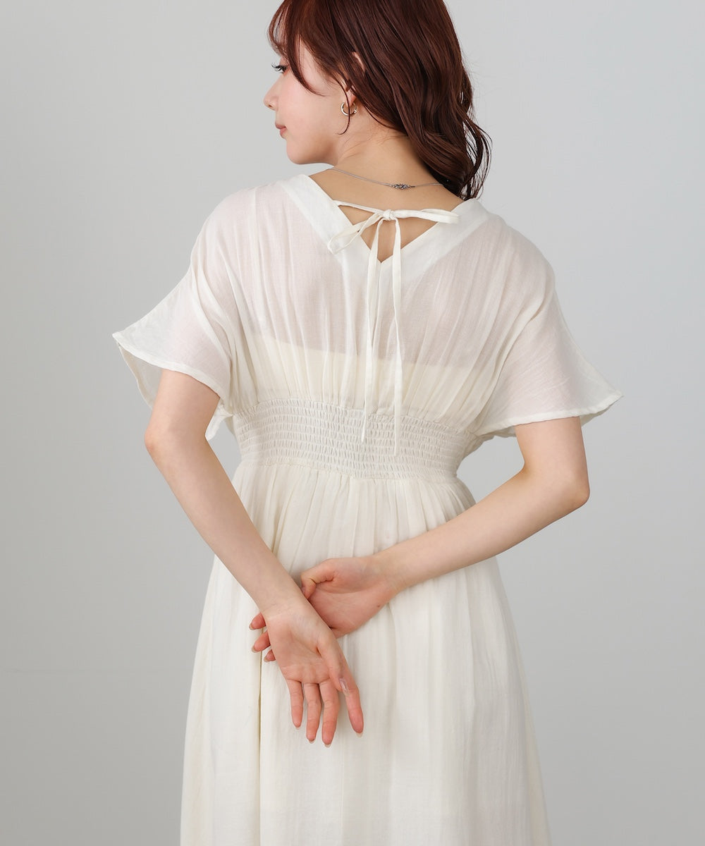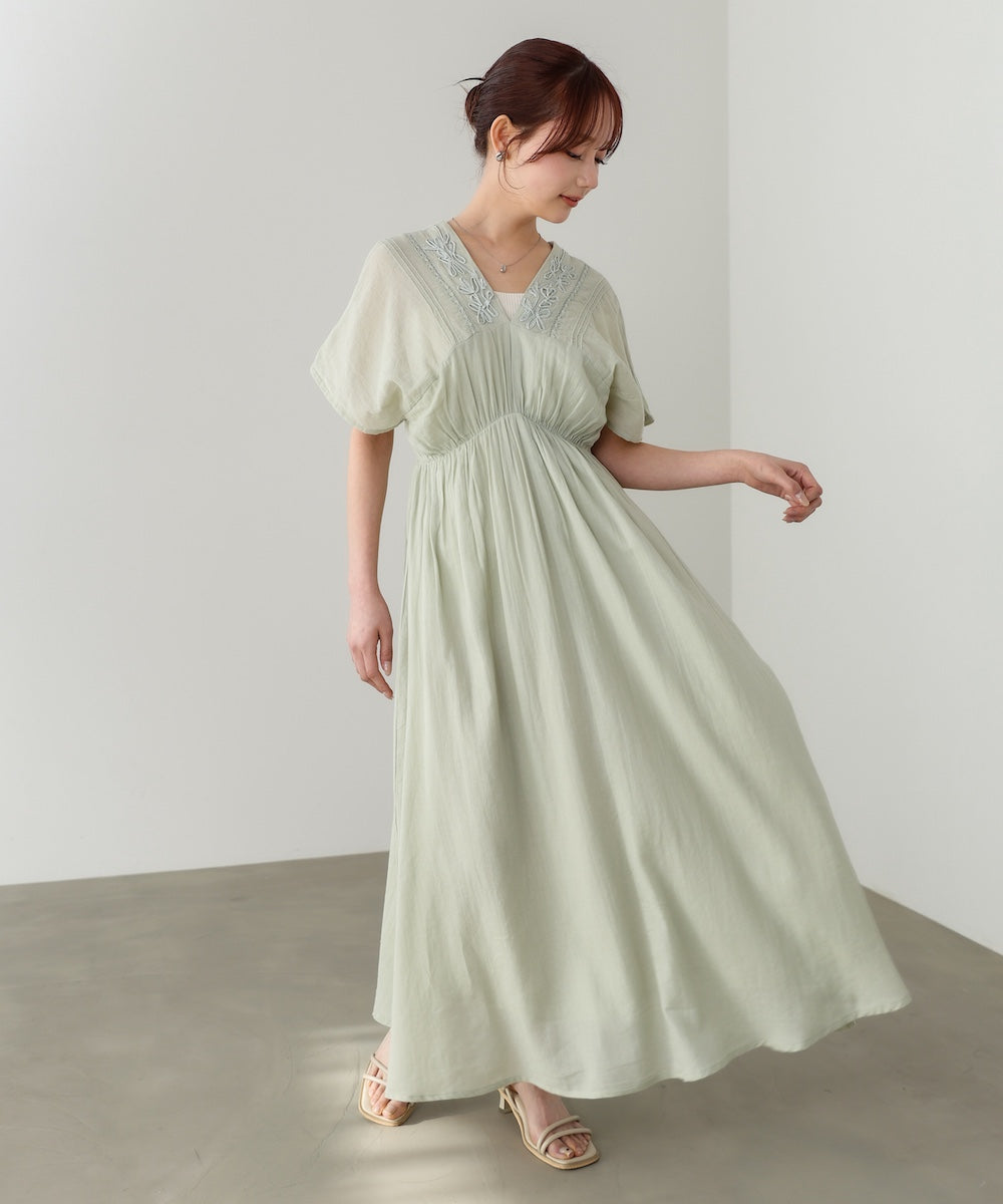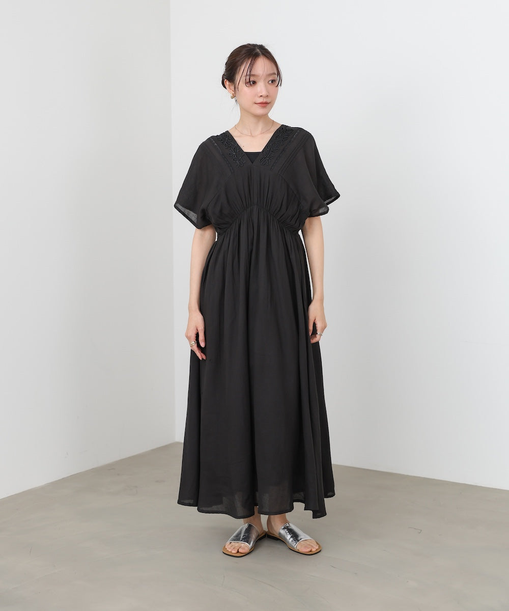 ナチュラルな中にほんのりクラフト感を感じる、テープ刺繍ワンピース。ふんわりとしたシルエットにピンタックを施すことで、甘さを抑えた上品なバランスに仕上げました。顔まわりを華やかに見せてくれる刺繍デザインが、シンプルながら印象的な一枚です。