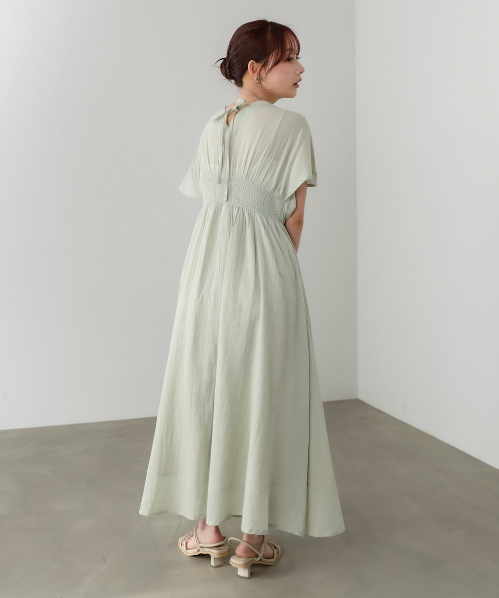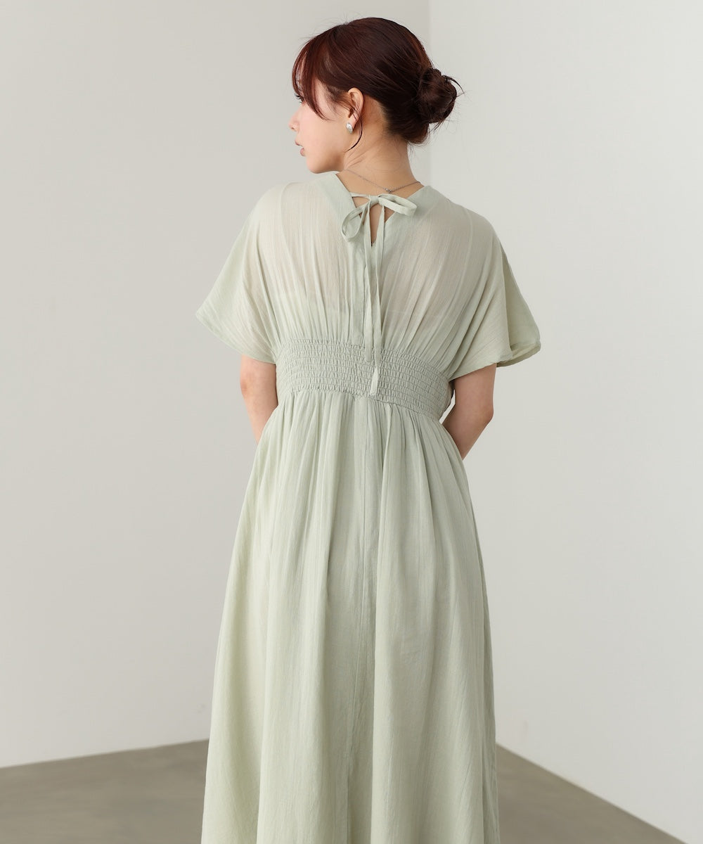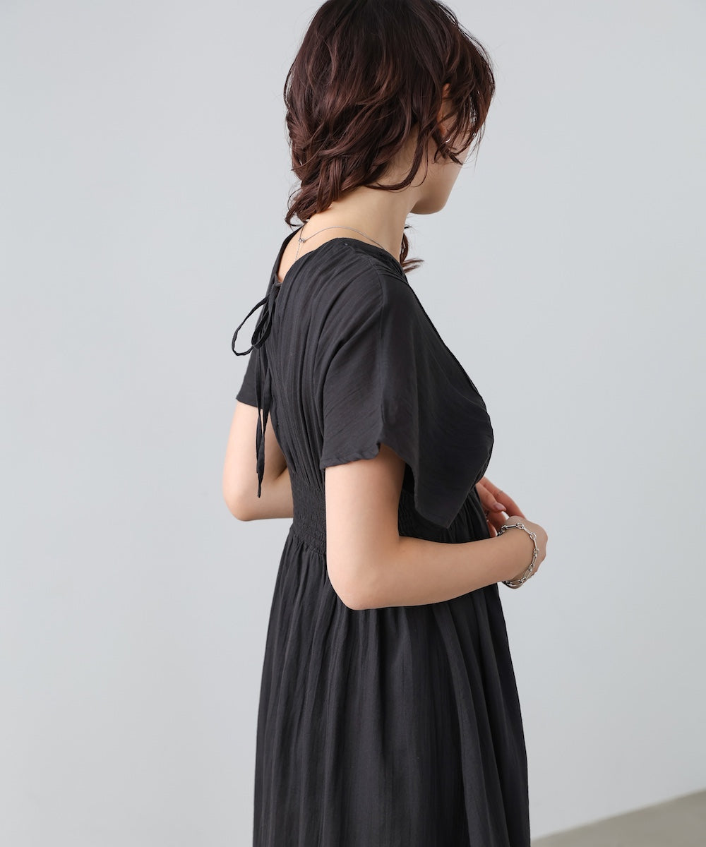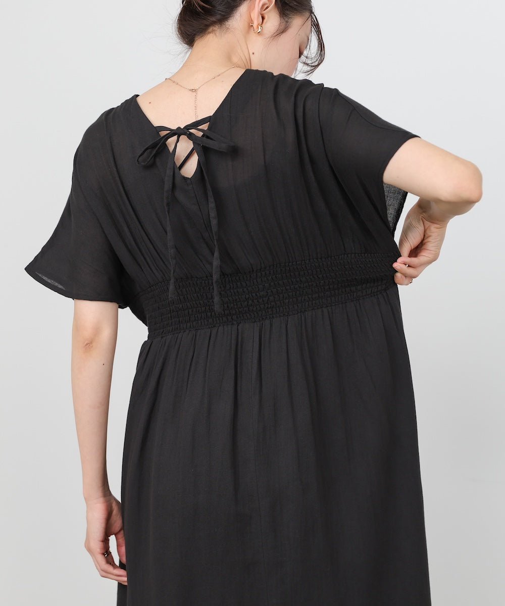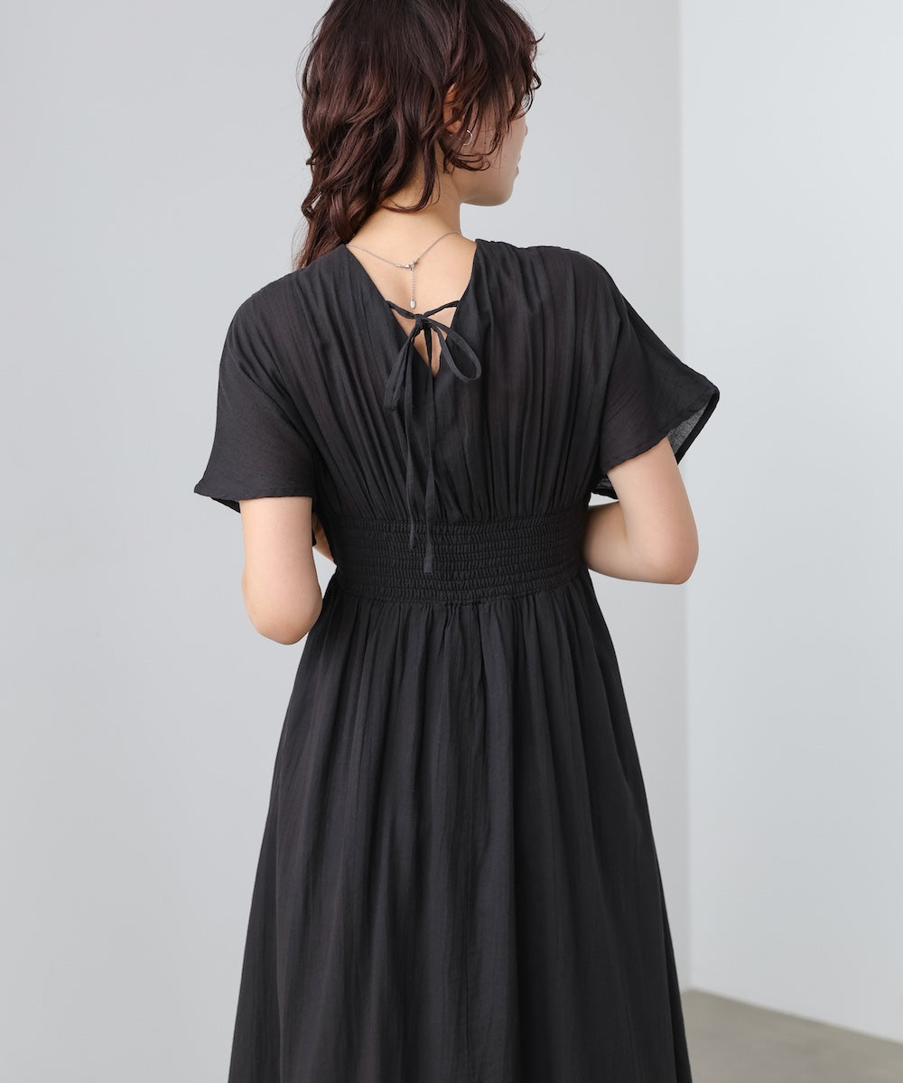 【選べるサイズ/イージーケア】ショルダーギャザーワンピース【イージージョーゼットシリーズ】