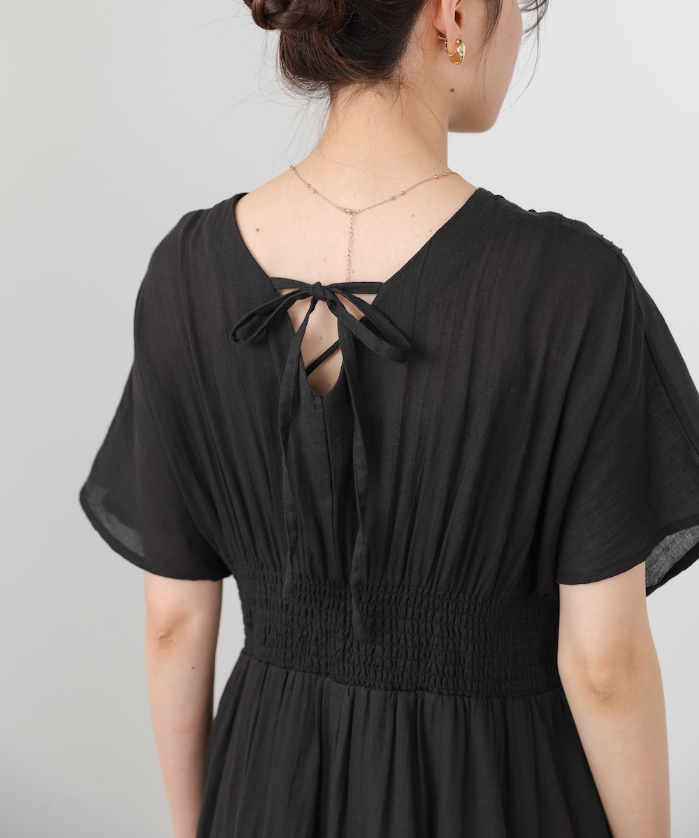 【選べるサイズ展開】テープ刺繍ピンタックレースワンピース