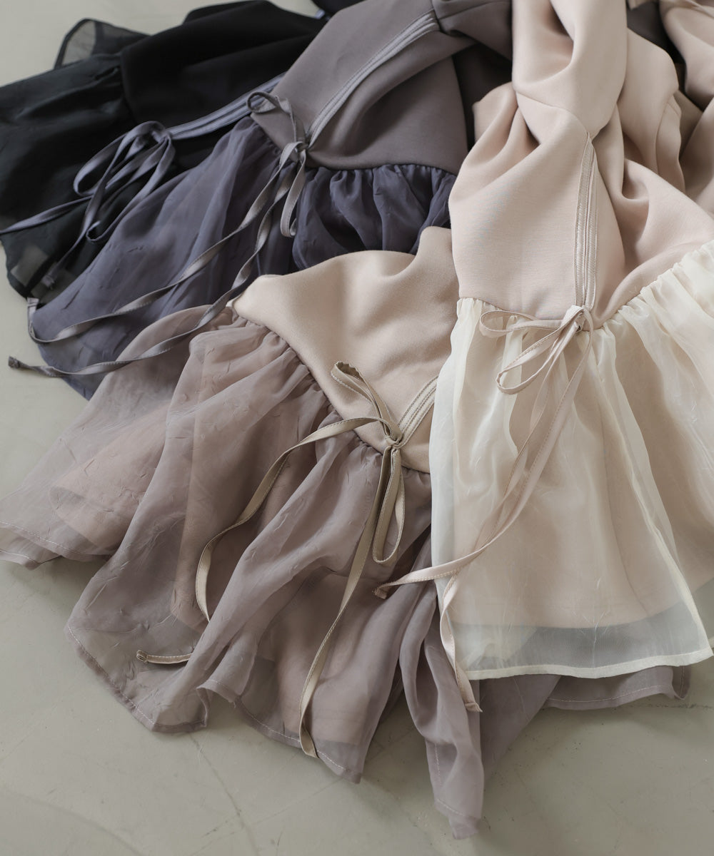袖オーガンジーポンチワンピース