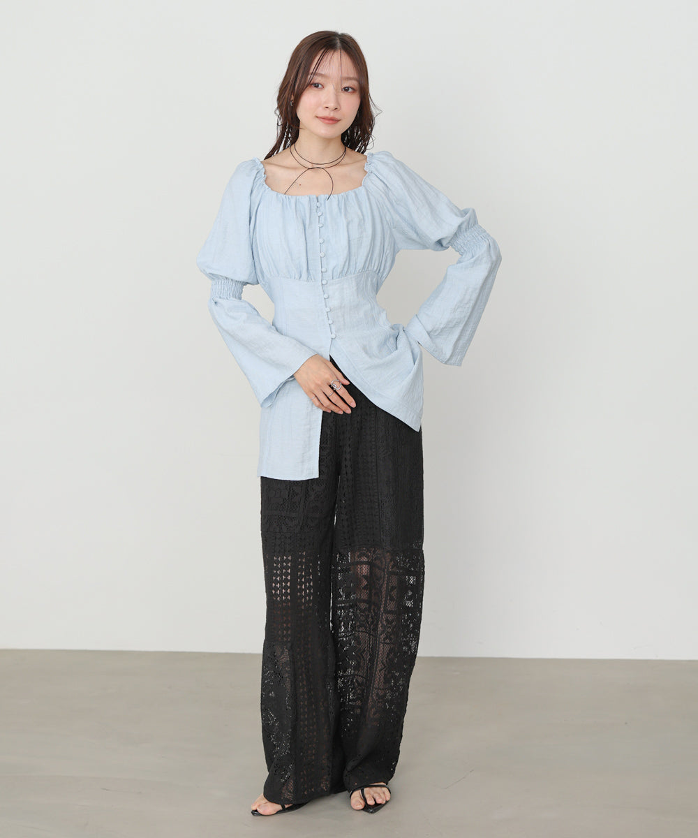 レース袖ボリュームブラウス