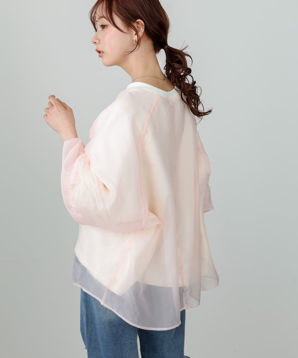 スタンド襟シアーブルゾン